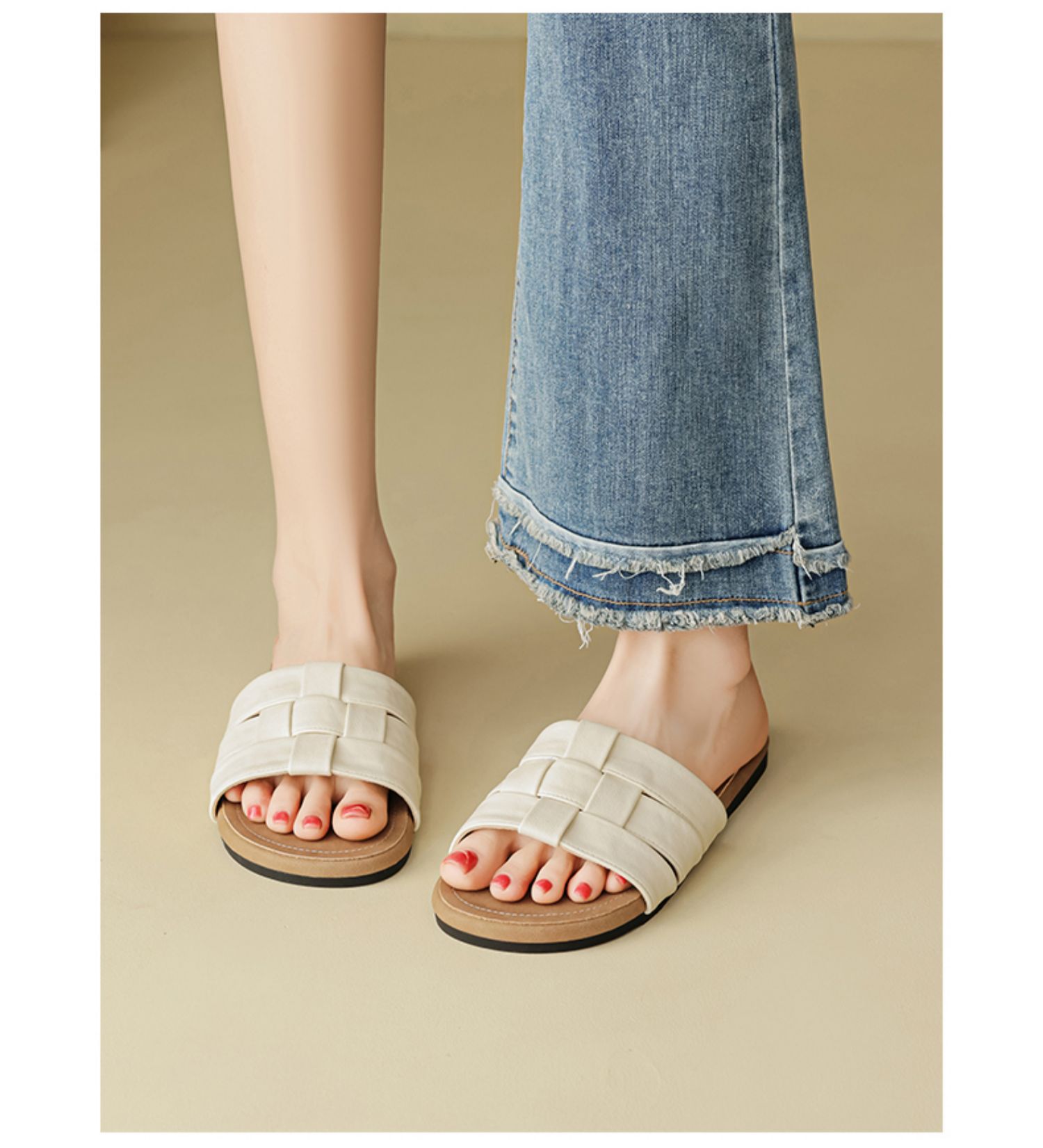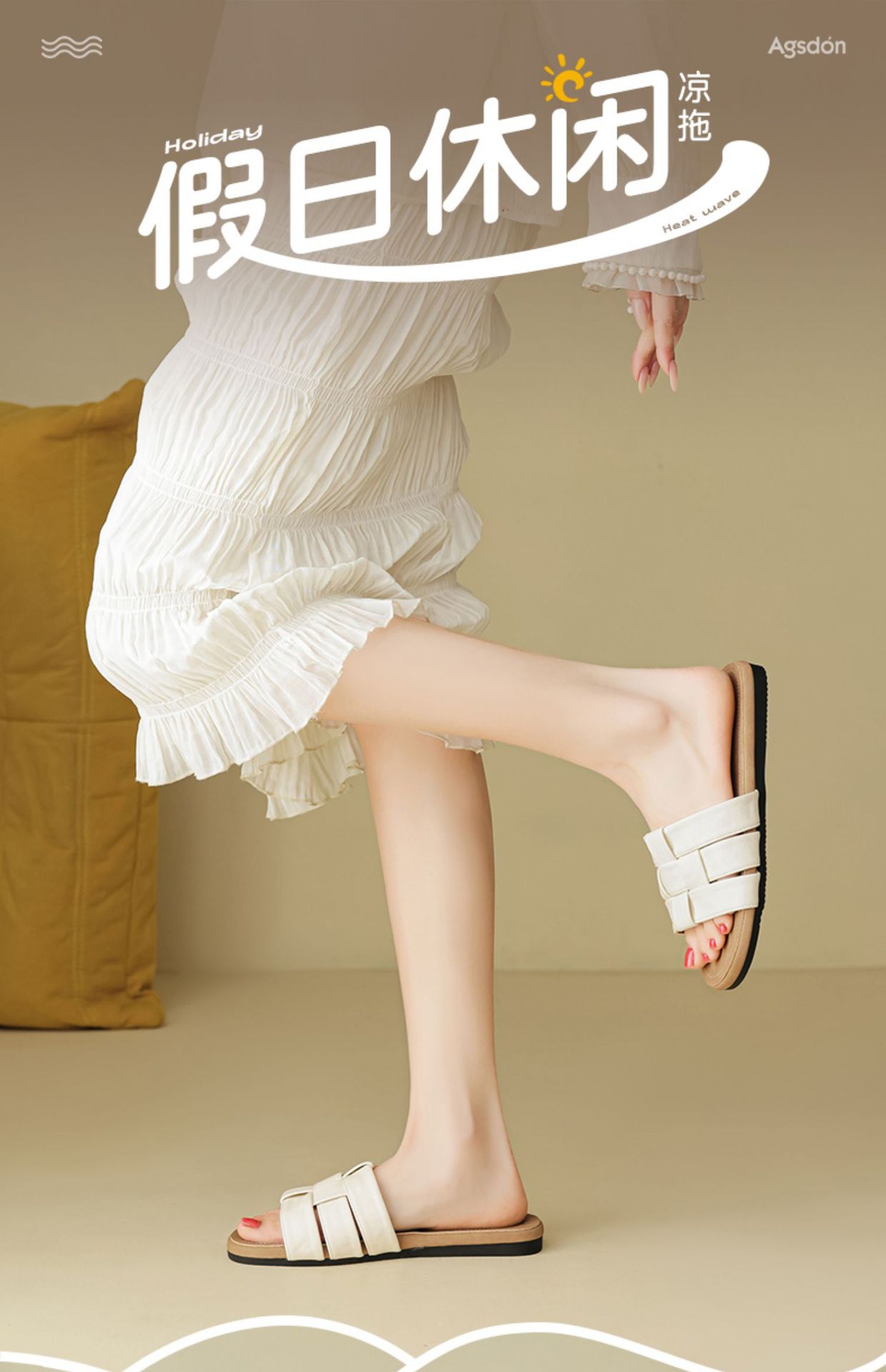 Zapatillas Augustion para mujer, 2025, nueva suela gruesa de verano con falda, sandalias y zapatillas de playa, pedal plano