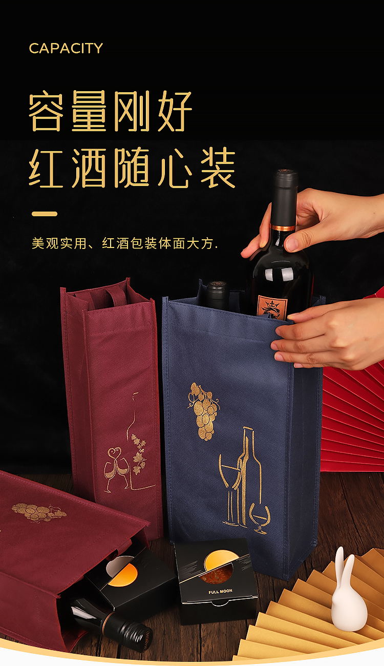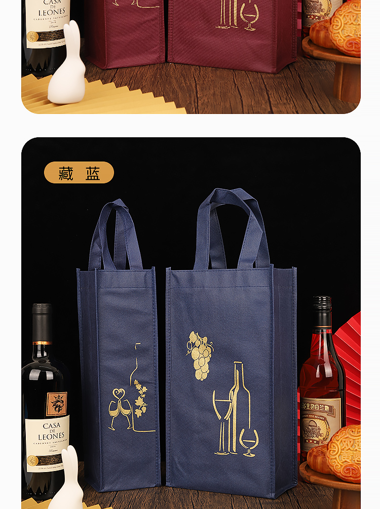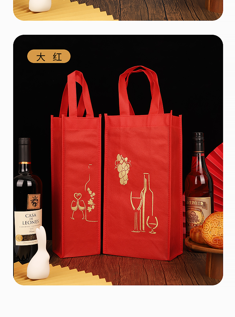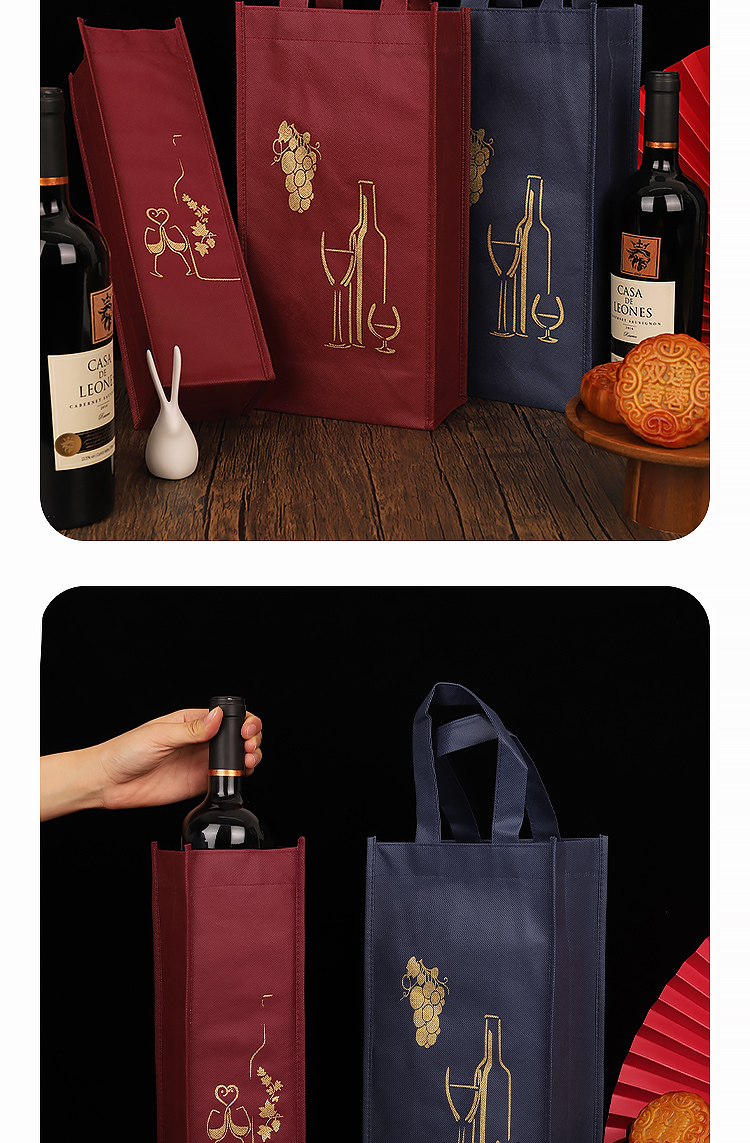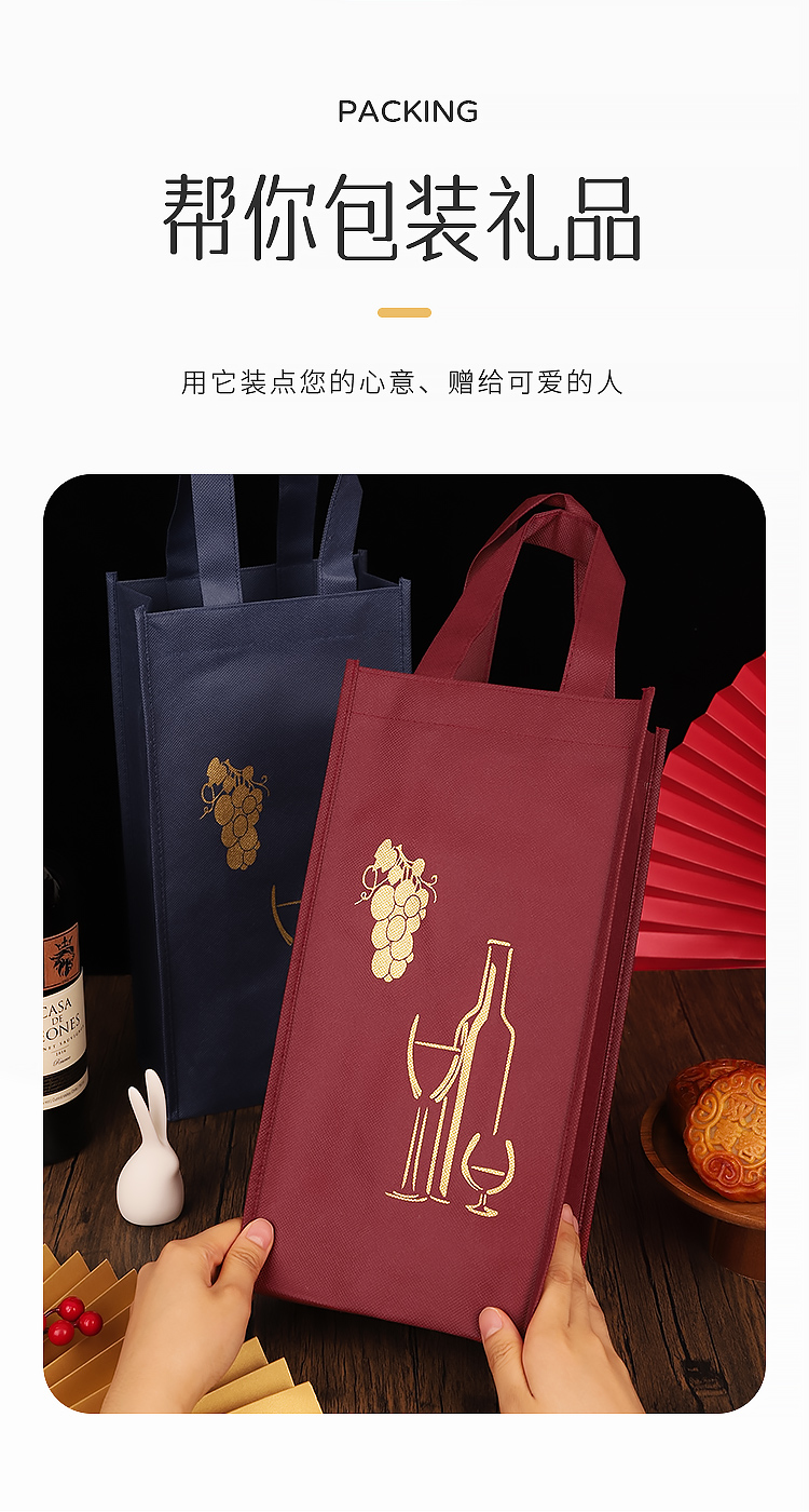 Festival de Primavera bolsa de vino no tejida bolsa de regalo doble paquete de regalo grueso se puede personalizar