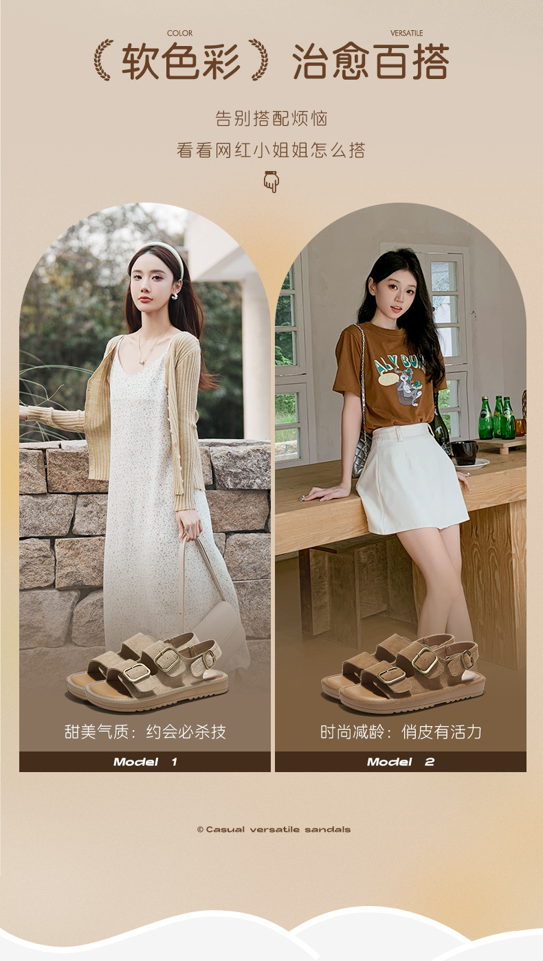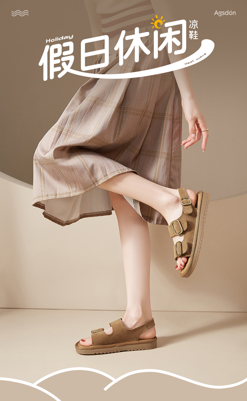 Augustion Backen sandalias mujer 2025 verano nueva moda retro con falda con sandalias y zapatillas planas