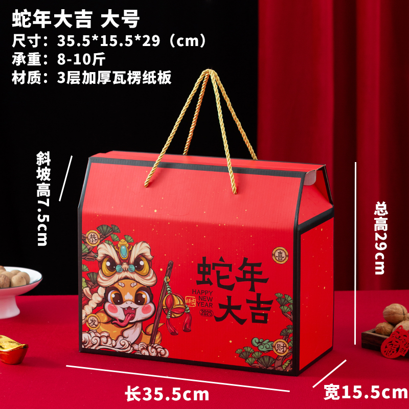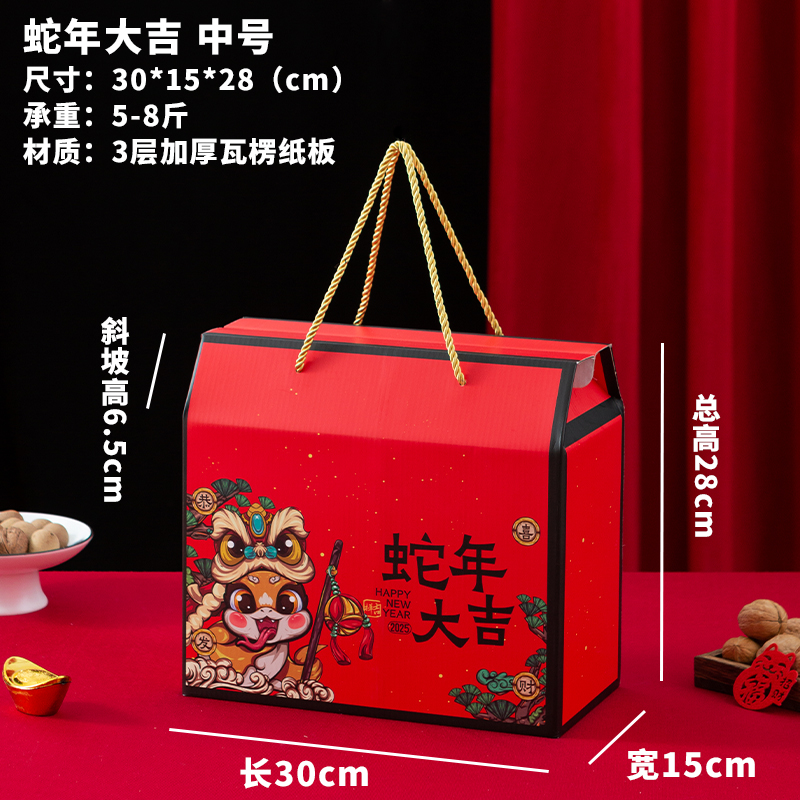 2025 Año de la Serpiente Festival de Primavera Caja de regalo Caja de embalaje Caja vacía Caja de regalo portátil Personalizada LOGO impreso universal