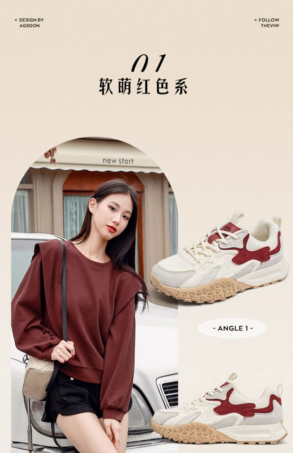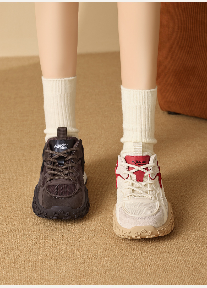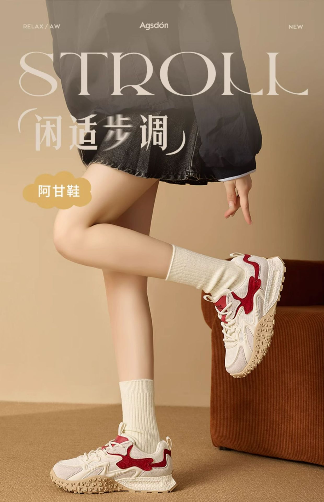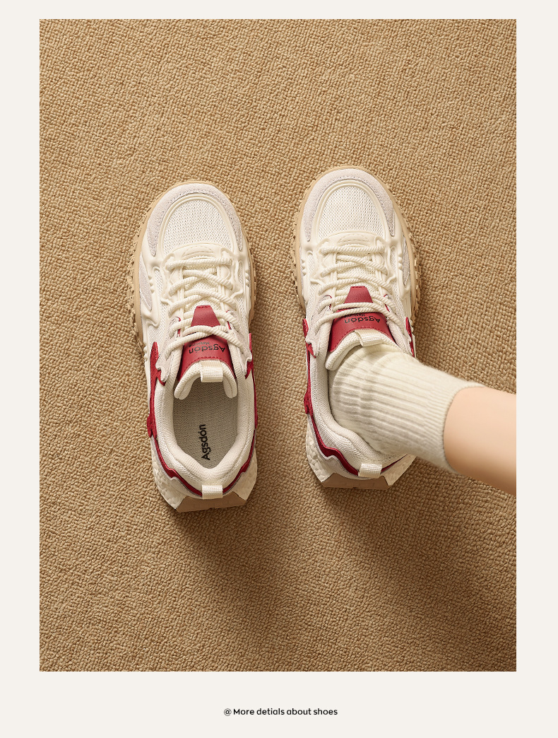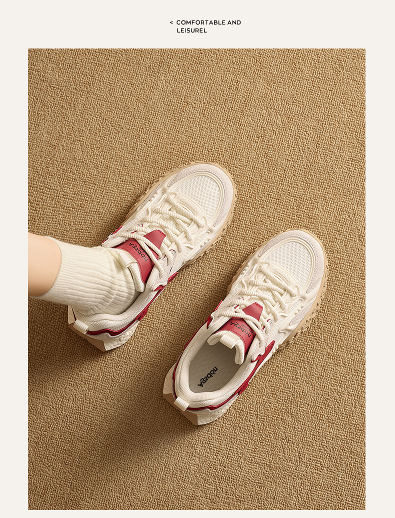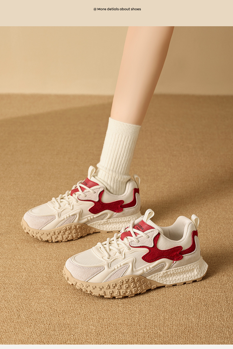 Zapatos de entrenamiento de la mujer 2025 nuevos zapatos de deporte casuales de suela gruesa de primavera retro rojo blanco pequeño Gump zapatos