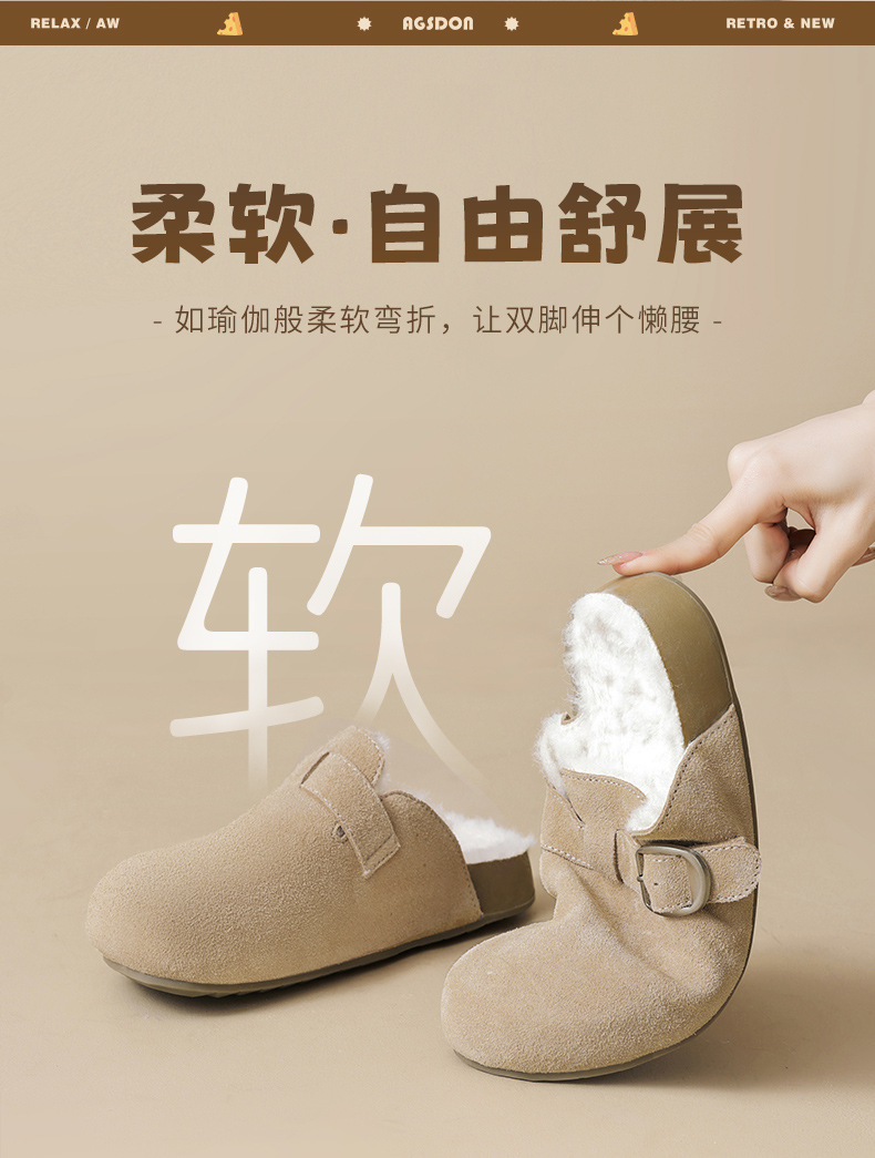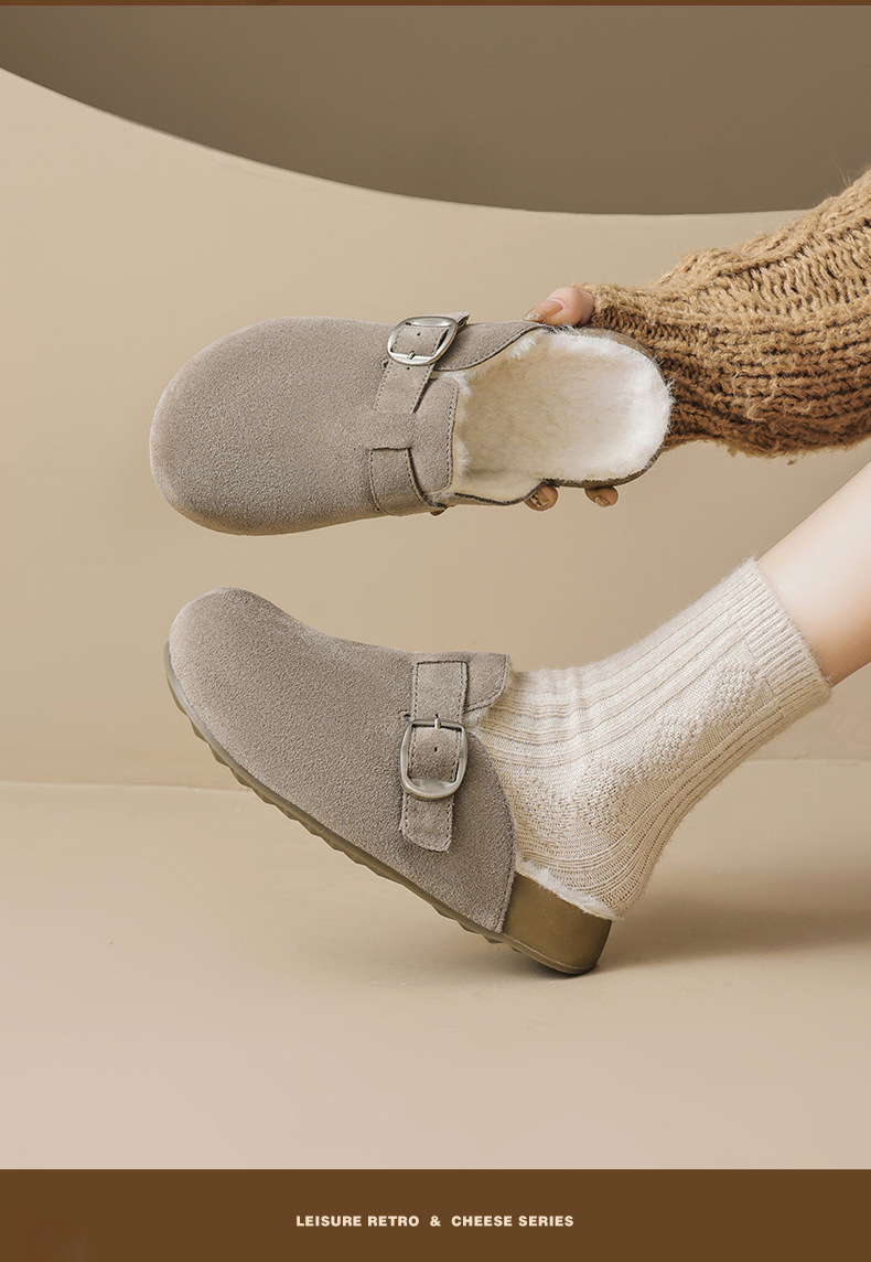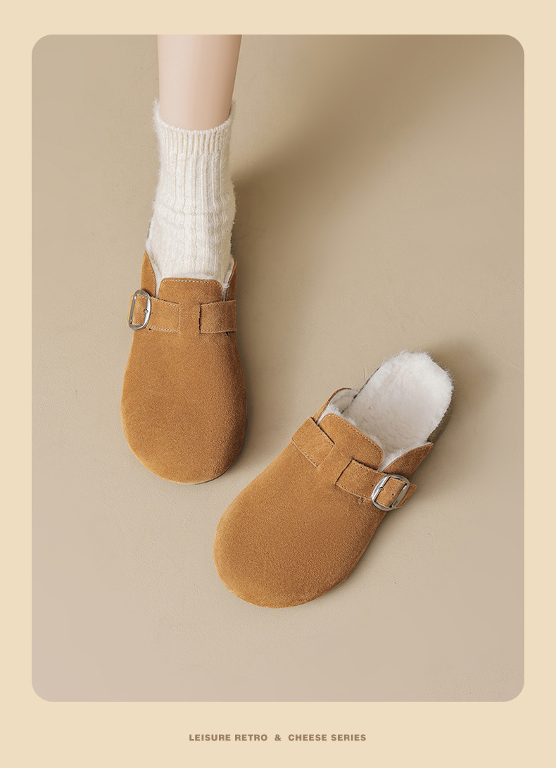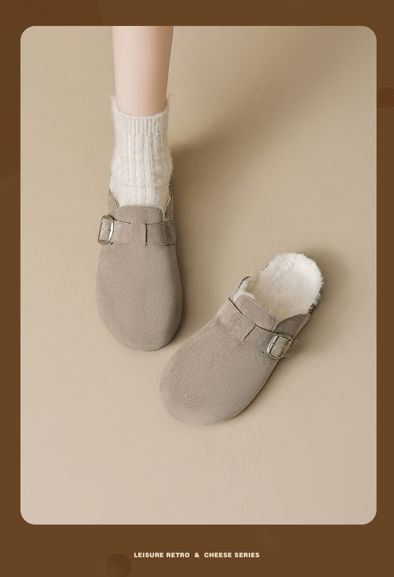 Augu Lion Tengga zapatillas de algodón de peluche mujeres 2026 nuevo bolso de peluche de primavera usar un pedazo de zapatillas