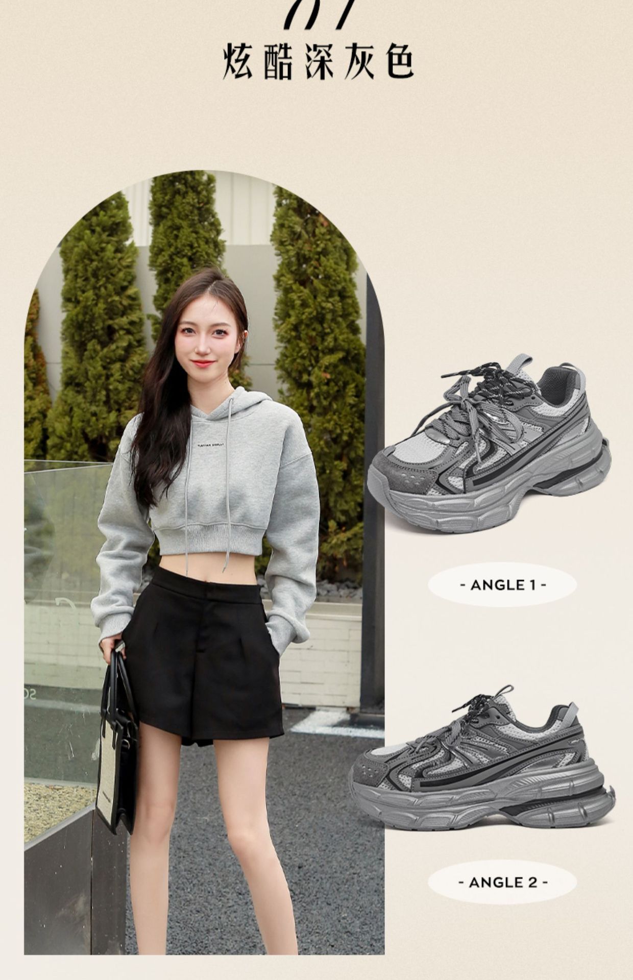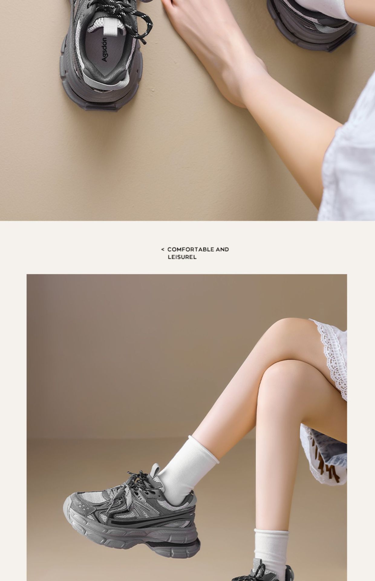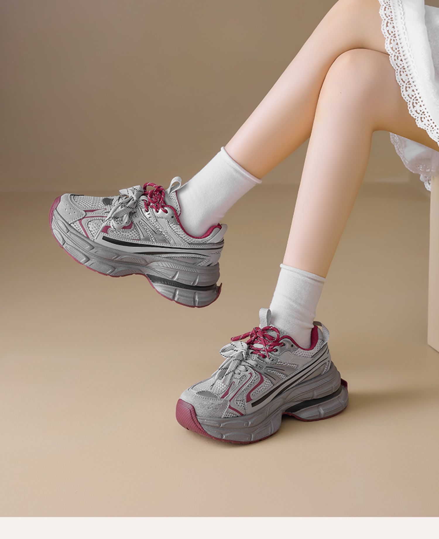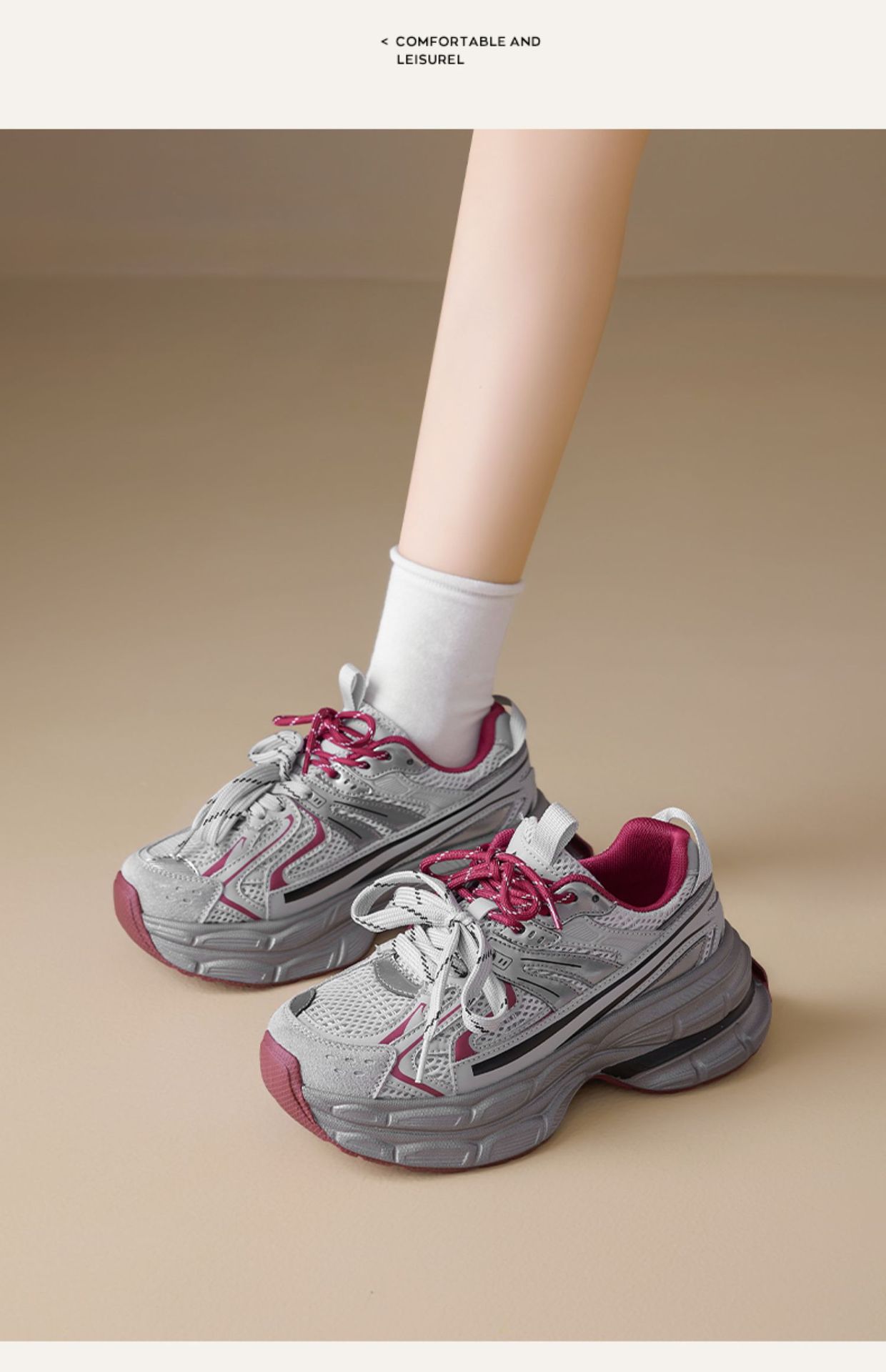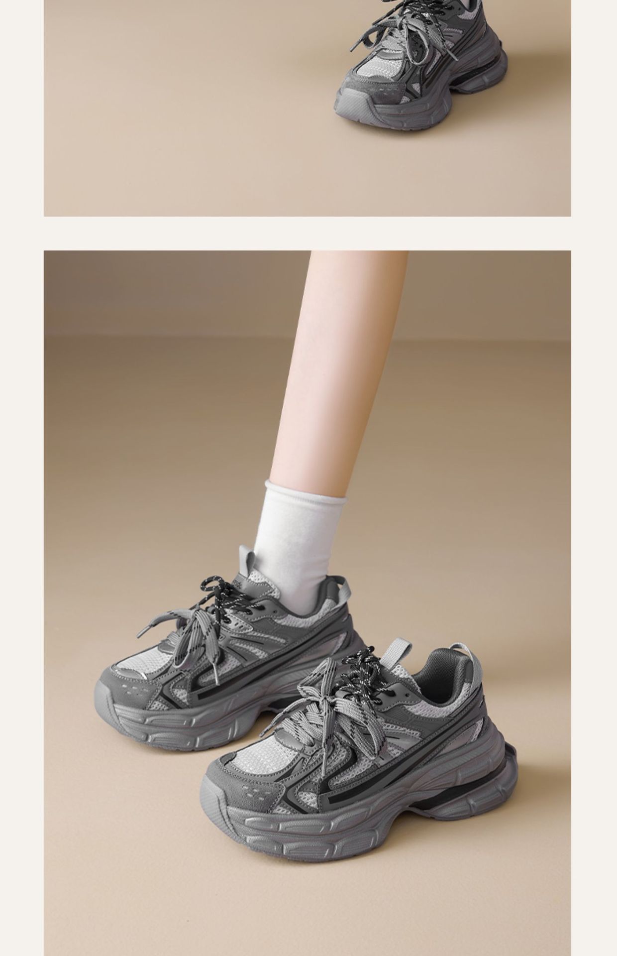 Zapatos grises para mujeres de verano de 2025, nuevas zapatillas deportivas de suela gruesa para mostrar los pies pequeños zapatos de carrera casuales