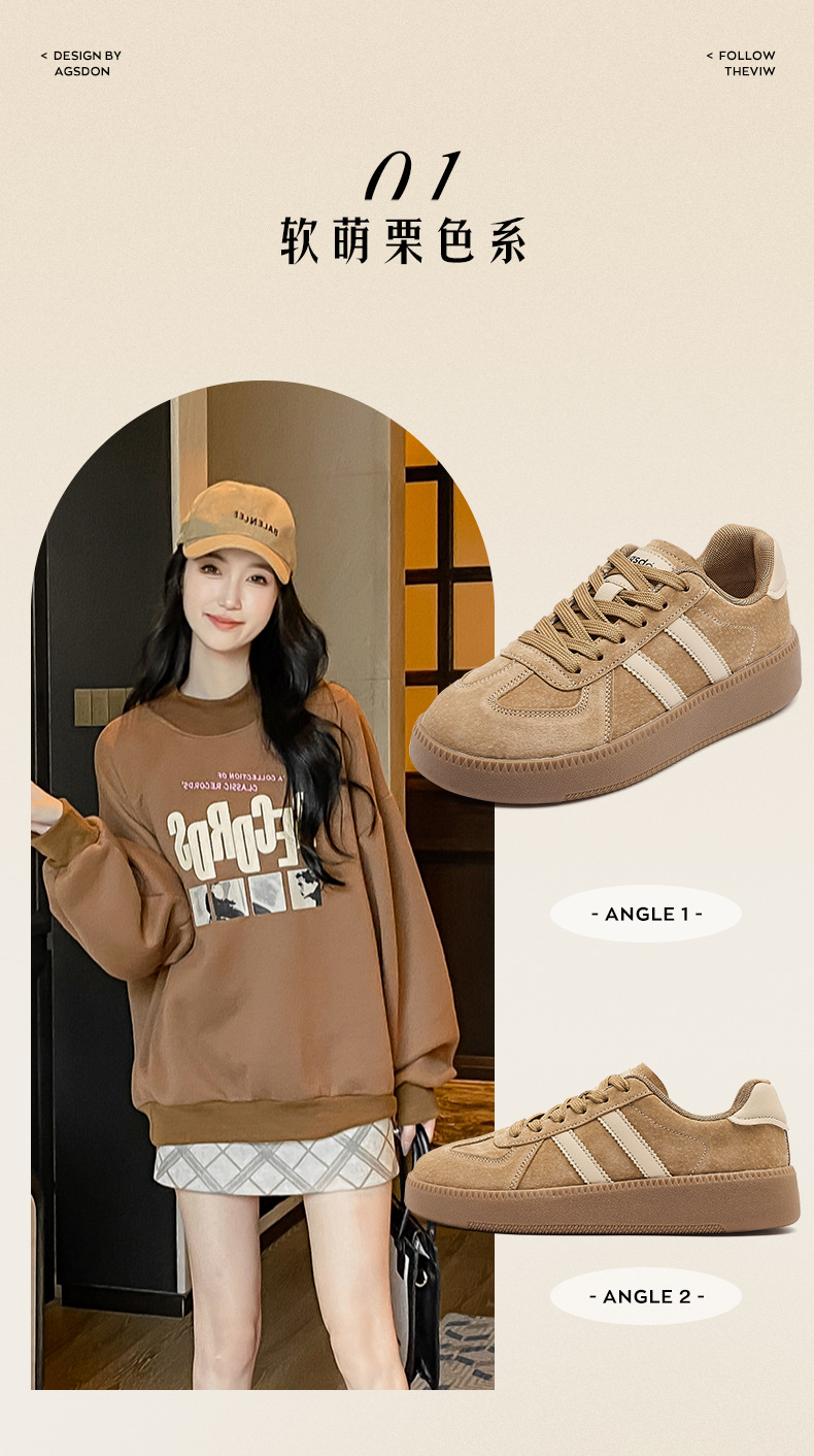 Augu Lion Dengde zapatos de entrenamiento para mujeres otoño y invierno 2025 nuevo estilo de zapatos de skate marrón con suela gruesa, zapatos casuales retro planos