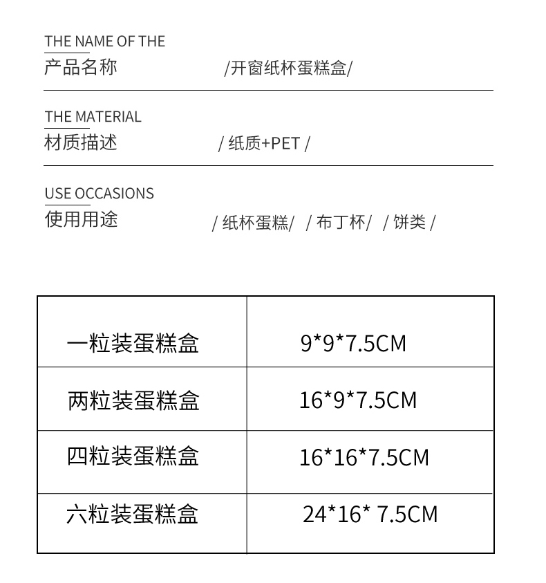 | Especificaciones y modelos | 白色1粒装蛋糕盒-10个盒子,白色1粒装蛋糕盒-50个盒子,白色2粒装蛋糕盒-10个盒子,白色2粒装蛋糕盒-50个盒子,2粒蛋糕卷(白色)蛋糕盒-10个盒子,2粒蛋糕卷(白色)蛋糕盒-50个盒子,白色4粒装蛋糕盒-10个盒子,白色4粒装蛋糕盒-50个盒子,白色4粒装加高款-10个盒子,白色4粒装加高款-50个盒子,白色6粒装蛋糕盒-10个盒子,白色6粒装蛋糕盒-50个盒子,白色6粒加高-10个盒子,白色6粒加高-50个盒子,白色12粒装蛋糕盒-10个盒子,白色12粒装蛋糕盒-50个盒子,牛皮1粒装蛋糕盒-10个盒子,牛皮1粒装蛋糕盒-50个盒子,牛皮纸2粒装蛋糕盒-10个盒子,牛皮纸2粒装蛋糕盒-50个盒子,牛皮纸4粒装蛋糕盒-10个盒子,牛皮纸4粒装蛋糕盒-50个盒子,牛皮纸6粒装蛋糕盒-10个盒子,牛皮纸6粒装蛋糕盒-50个盒子,牛皮纸12粒装蛋糕盒-10个盒子,牛皮纸12粒装蛋糕盒-50个盒子,1粒大理石-10个盒子,1粒大理石-50个盒子,2粒大理石蛋糕盒-10个盒子,2粒大理石蛋糕盒-50个盒子,4粒大理石蛋糕盒-10个盒子,4粒大理石蛋糕盒-50个盒子,6粒大理石蛋糕盒-10个盒子,6粒大理石蛋糕盒-50个盒子,12粒大理石蛋糕盒-10个盒子,12粒大理石蛋糕盒-50个盒子,1粒黄色-10个盒子,1粒黄色-50个盒子,2粒黄色-10个盒子,2粒黄色-50个盒子,4粒黄色-10个盒子,4粒黄色-50个盒子,6粒黄色-10个盒子,6粒黄色-50个盒子,12粒黄色-10个盒子,12粒黄色-50个盒子,1粒马戏团-10个盒子,1粒马戏团-50个盒子,2粒马戏团-10个盒子,2粒马戏团-50个盒子,4粒马戏团-10个盒子,4粒马戏团-50个盒子,6粒马戏团-10个盒子,6粒马戏团-50个盒子,12粒马戏团-10个盒子,12粒马戏团-50个盒子,1粒卡通手绘-10个盒子,1粒卡通手绘-50个盒子,2粒卡通手绘-10个盒子,2粒卡通手绘-50个盒子,4粒卡通手绘-10个盒子,4粒卡通手绘-50个盒子,6粒卡通手绘-10个盒子,6粒卡通手绘-50个盒子,12粒卡通手绘-10个盒子,12粒卡通手绘-50个盒子,1号白牛皮手提袋-10个盒子,1号白牛皮手提袋-50个盒子,2号白牛皮手提袋-10个盒子,2号白牛皮手提袋-50个盒子,3号白牛皮手提袋-10个盒子,3号白牛皮手提袋-50个盒子,1号黄牛皮手提袋-10个盒子,1号黄牛皮手提袋-50个盒子,2号黄牛皮手提袋-10个盒子,2号黄牛皮手提袋-50个盒子,3号黄牛皮手提袋-10个盒子,3号黄牛皮手提袋-50个盒子,4号白牛手提袋-10个盒子,4号白牛手提袋-50个盒子,4号黄牛手提袋-10个盒子,4号黄牛手提袋-50个盒子,开窗8粒白色-10个盒子,开窗8粒白色-50个盒子,开窗9粒装-10个盒子,开窗9粒装-50个盒子,开窗4粒加高牛皮-10个盒子,开窗4粒加高牛皮-50个盒子 |