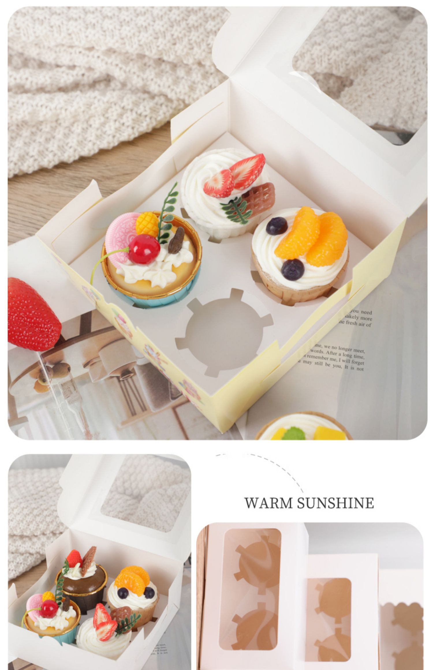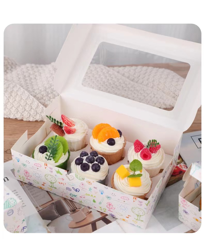 1 / 2 / 4 / 6 / 12 caja de embalaje de pastel de ventana abierta, caja de embalaje de pastel de nieve, caja de embalaje de pastel, caja de muffin