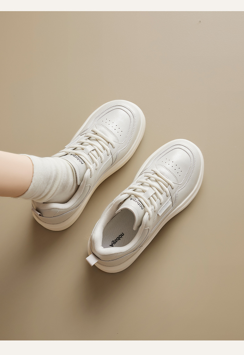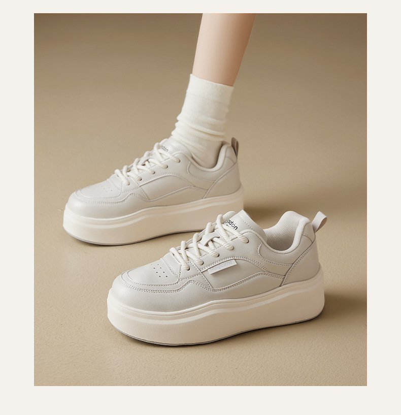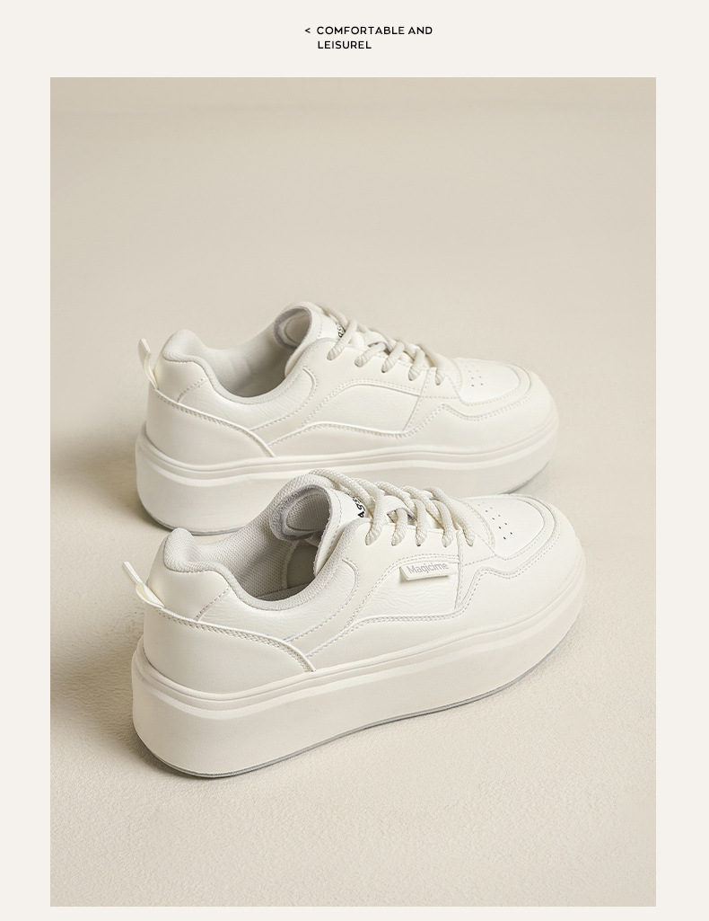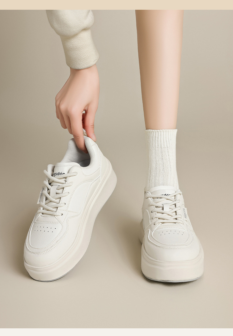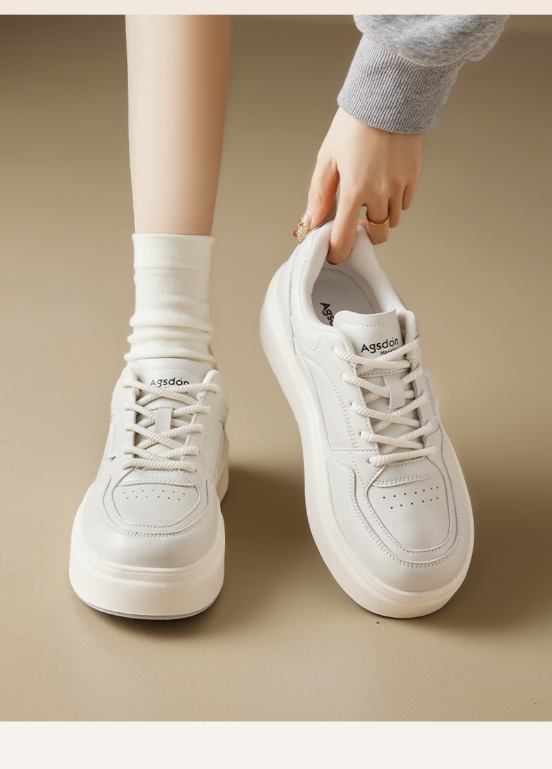 Augu Shi Deng zapatos blancos de suela gruesa para mujeres 2025 nuevos zapatos deportivos casuales planos de otoño para estudiantes de muffin skate