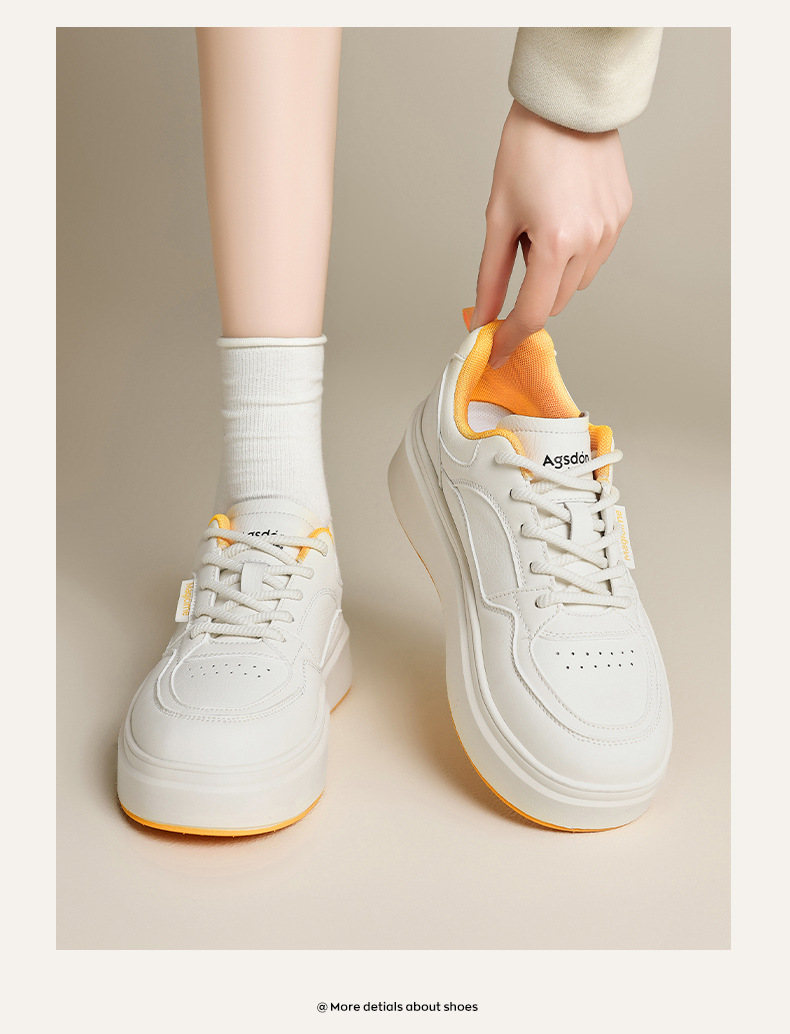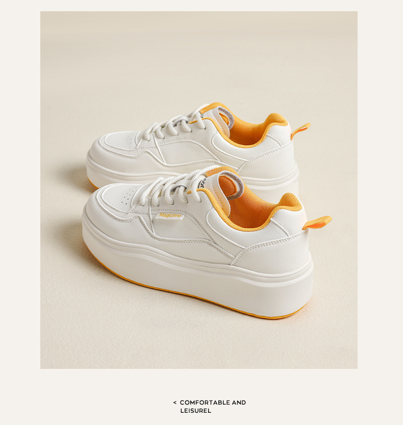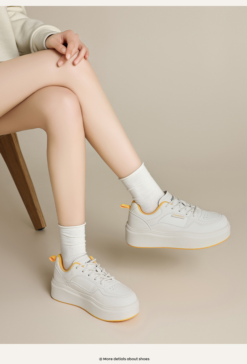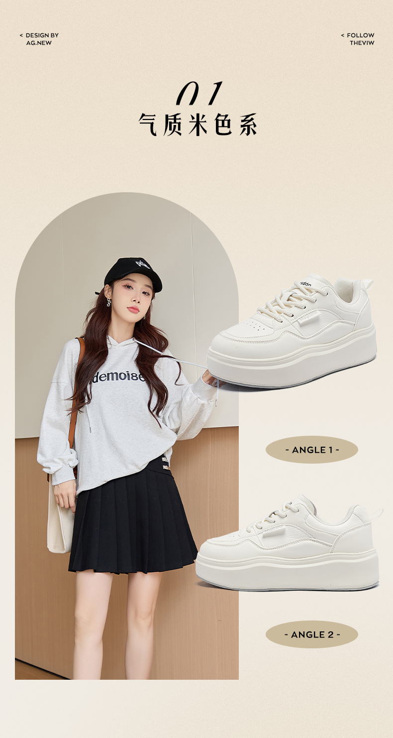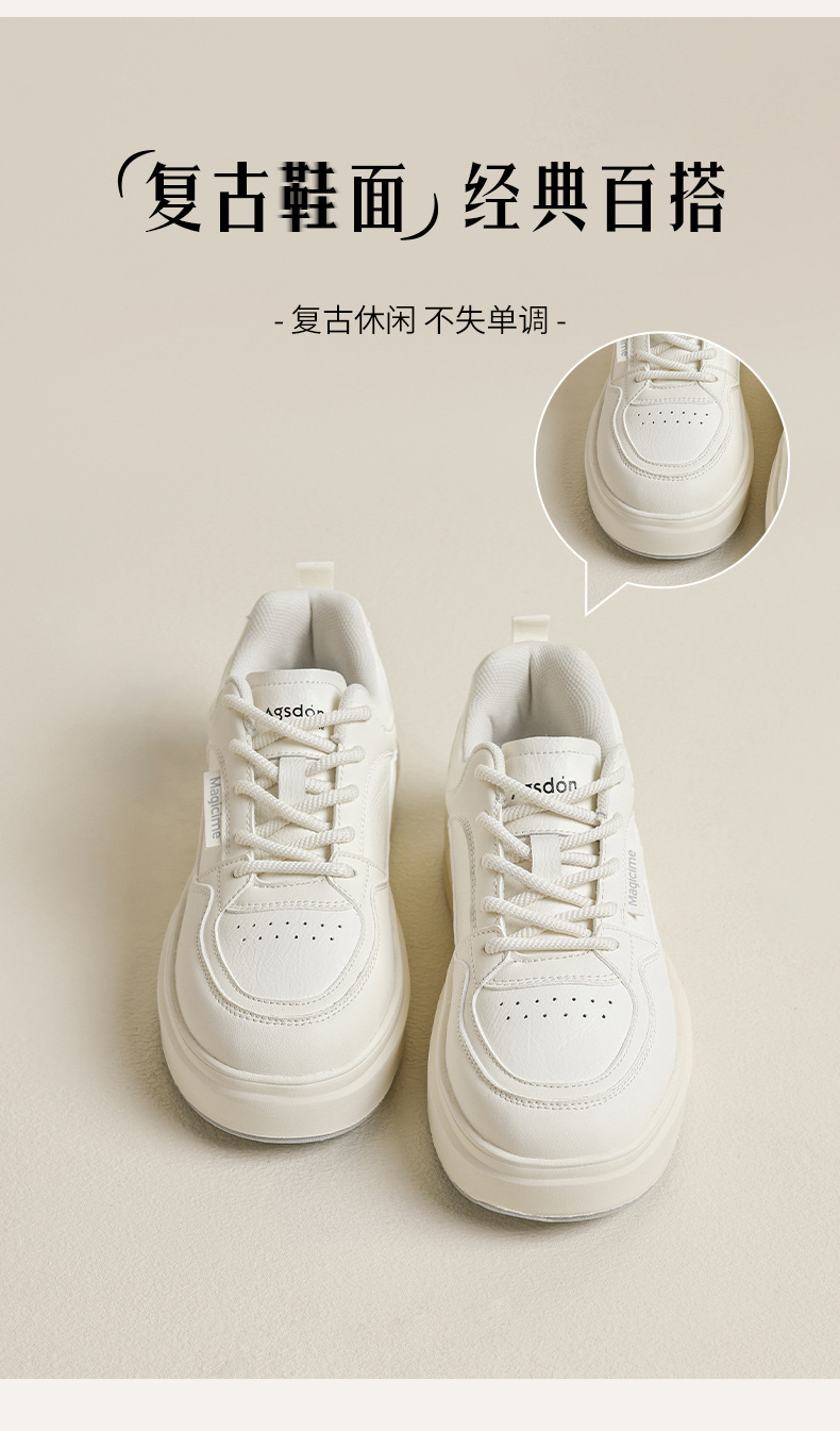 Augu Shi Deng zapatos blancos de suela gruesa para mujeres 2025 nuevos zapatos deportivos casuales planos de otoño para estudiantes de muffin skate