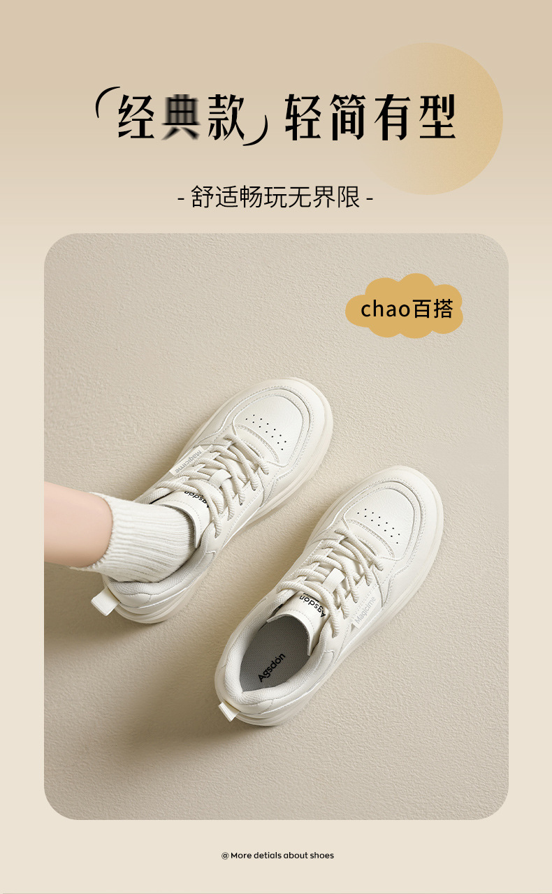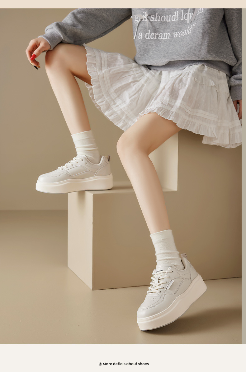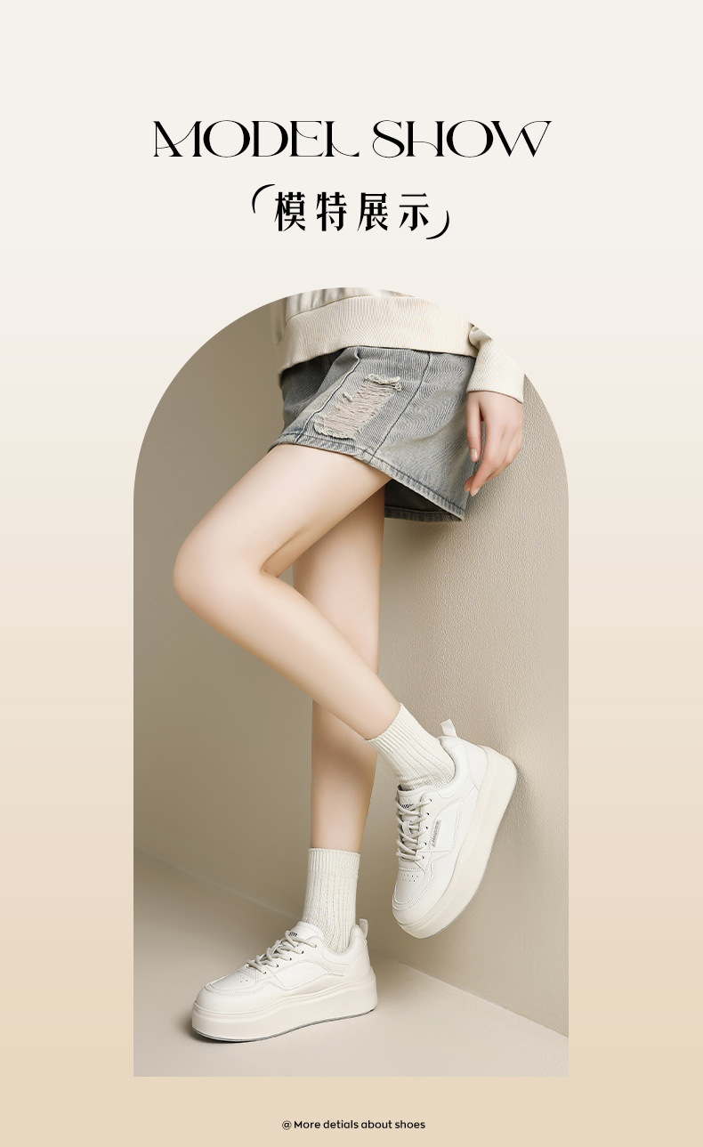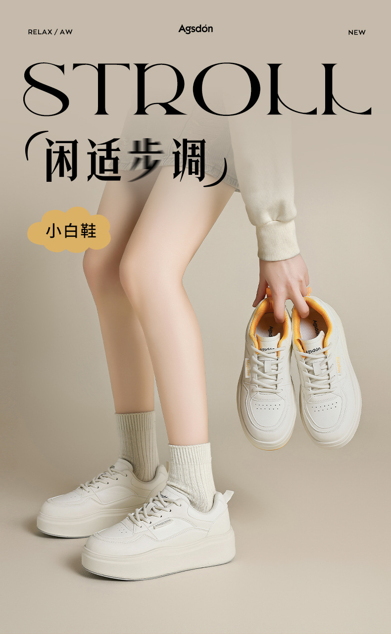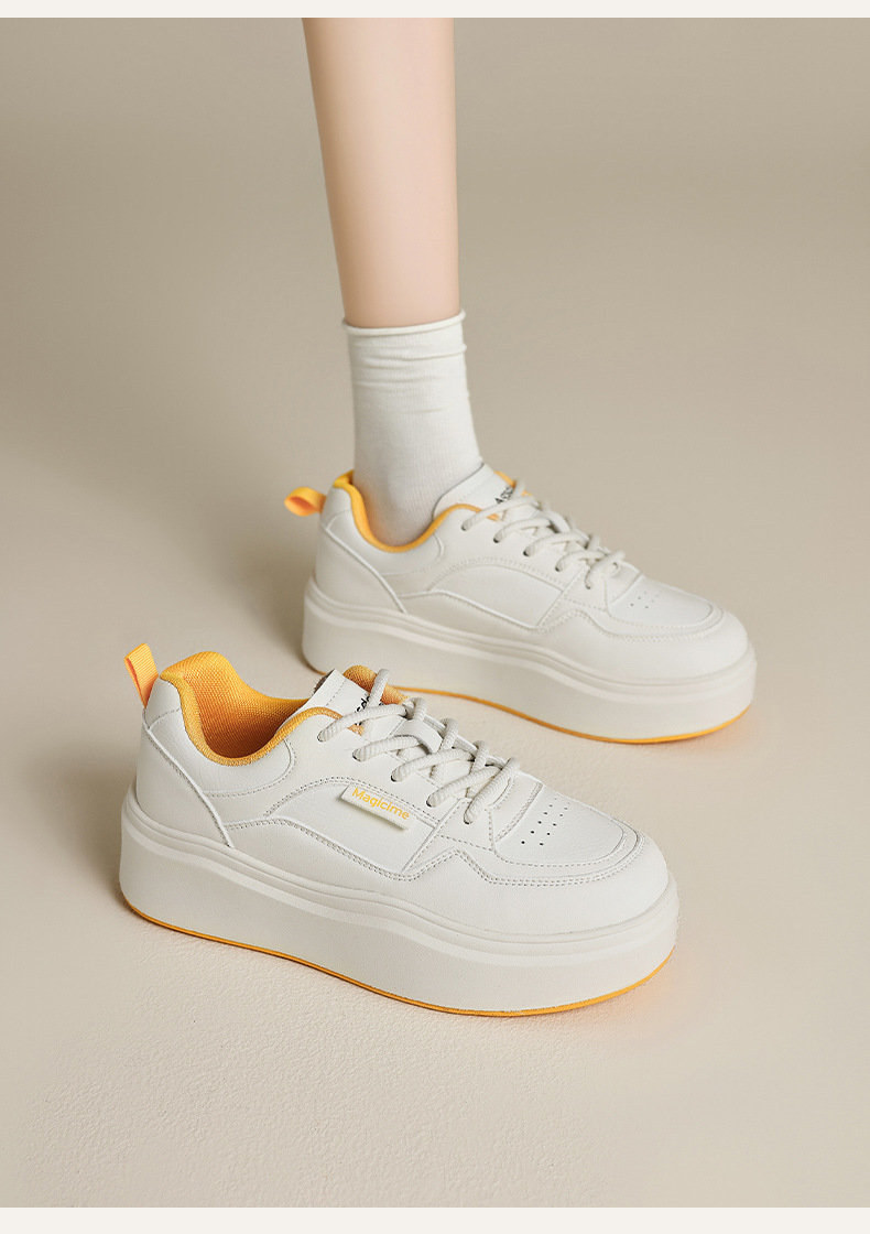 Augu Shi Deng zapatos blancos de suela gruesa para mujeres 2025 nuevos zapatos deportivos casuales planos de otoño para estudiantes de muffin skate