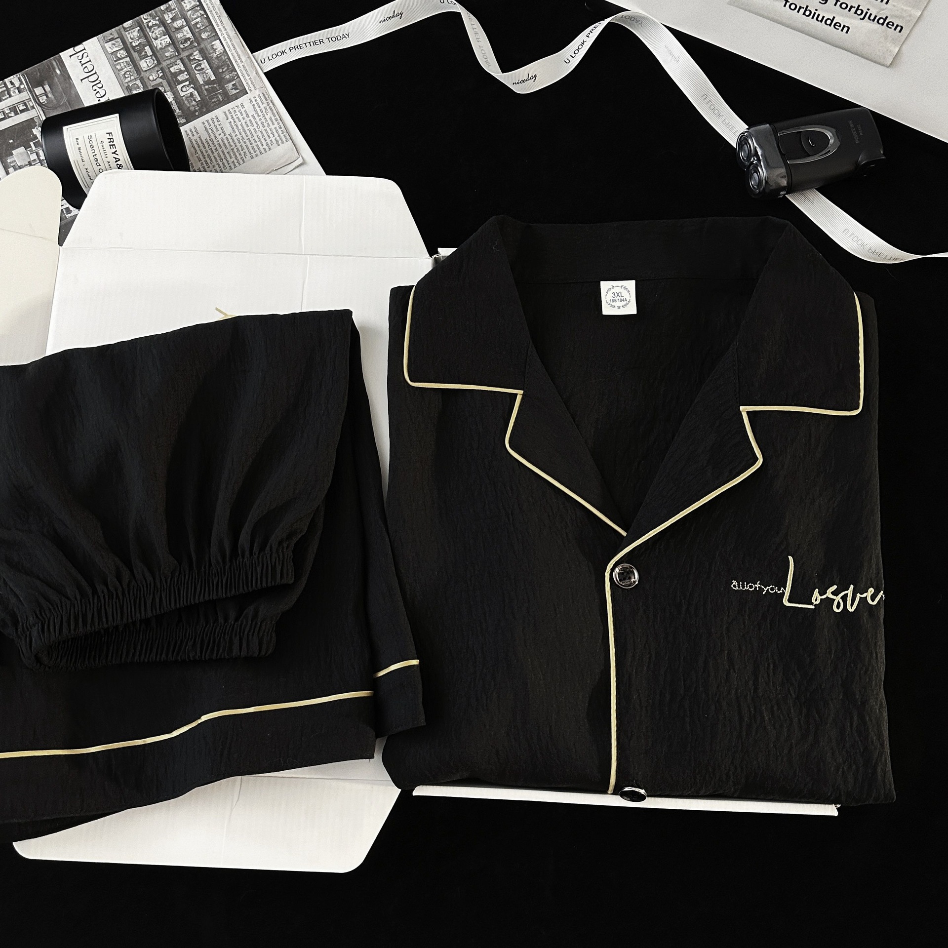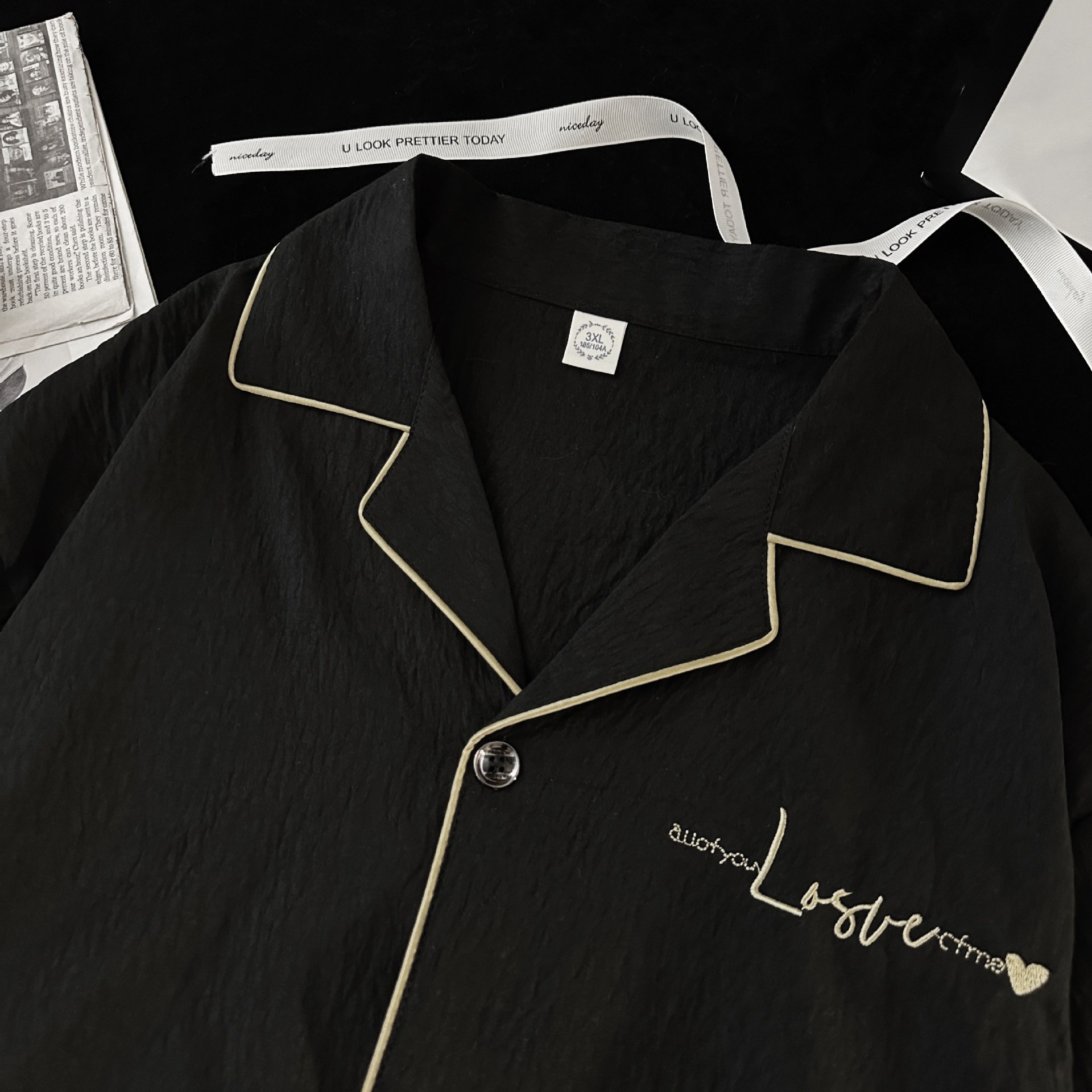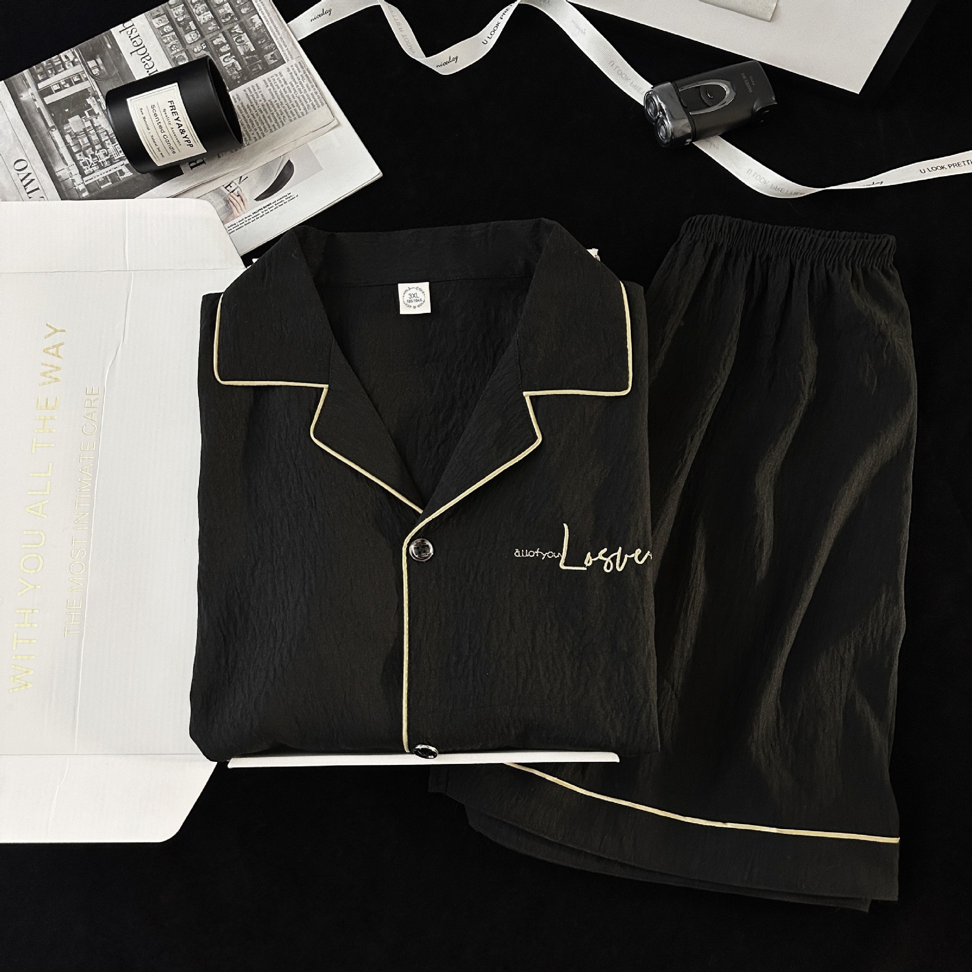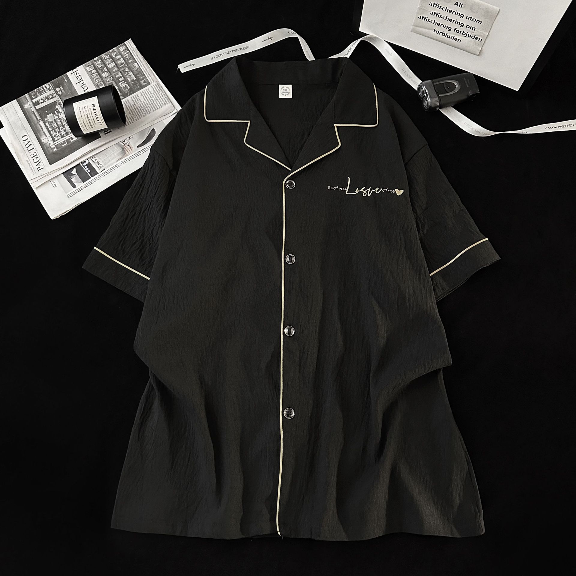 Pijamas de hombre de hilo de algodón de nube negra simple pantalones cortos de verano de manga corta ropa de hogar de gran tamaño casual traje de verano