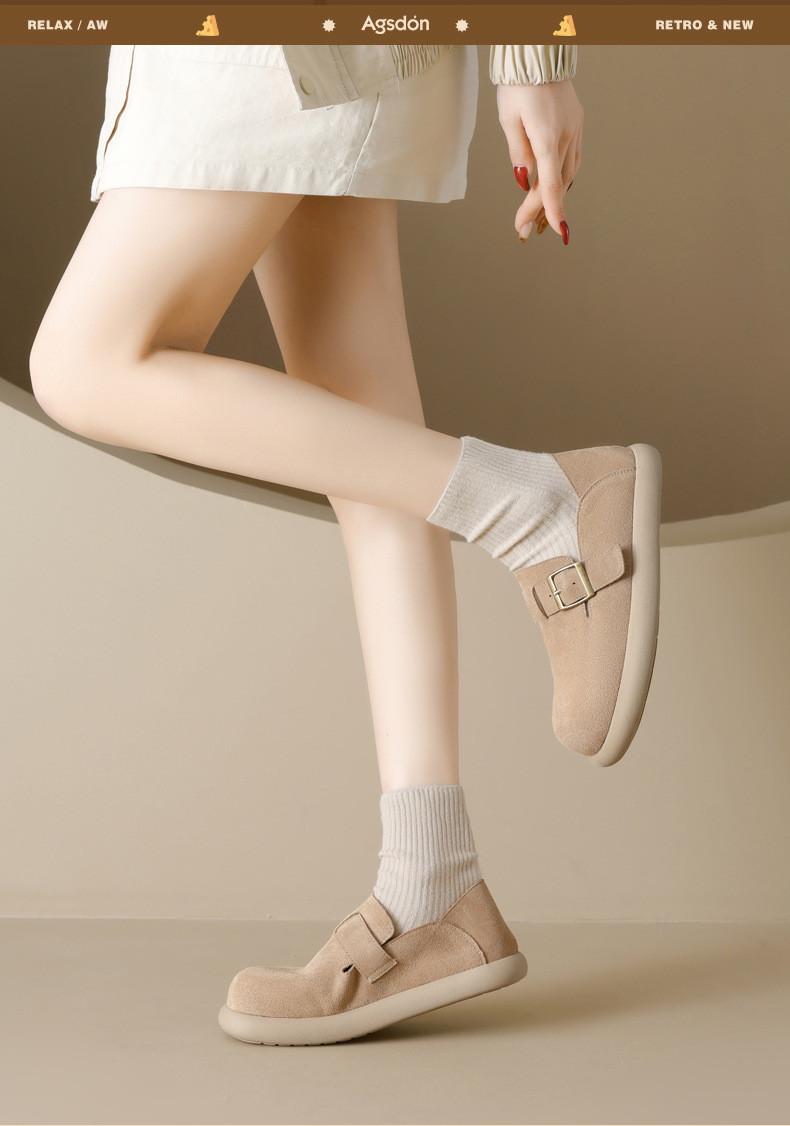 Zapatos de Dengbocken de Augu Lion para mujeres 2025 otoño y invierno nuevo todo incluido un zapato suave zapatos retrógrados zapatos de tostada plana