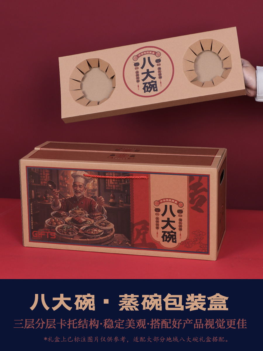 Cartón kraft hualli, cartón de vaca de ocho botones, caja de regalo de carne marinada, frutas secas, sopa de flores, sopa de flores, cartón de especialidades locales