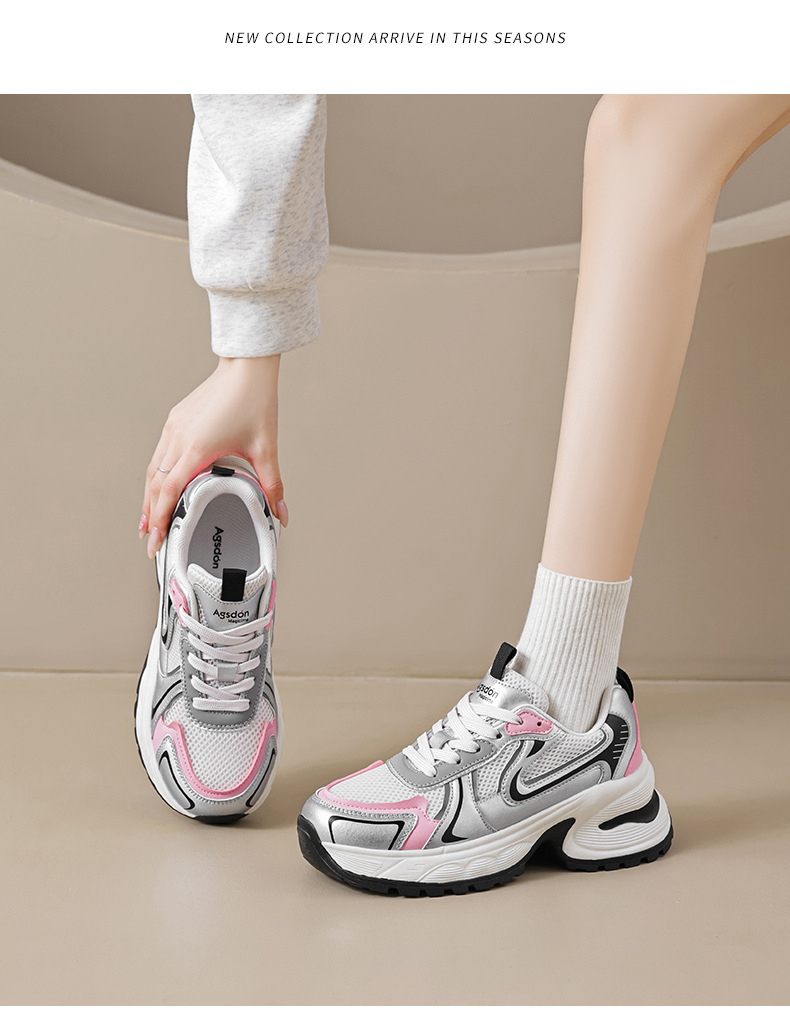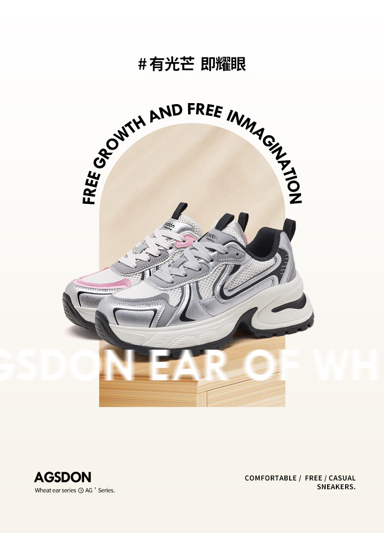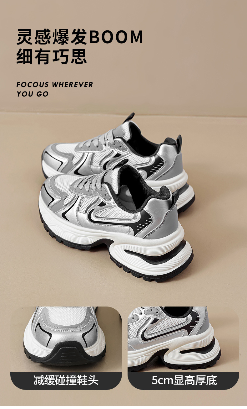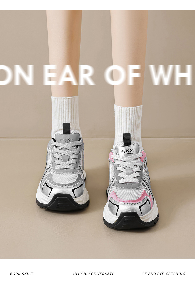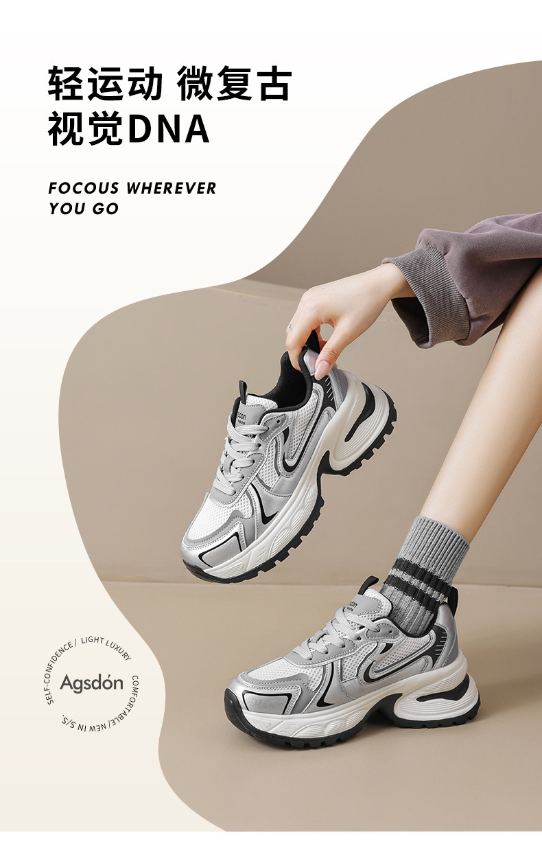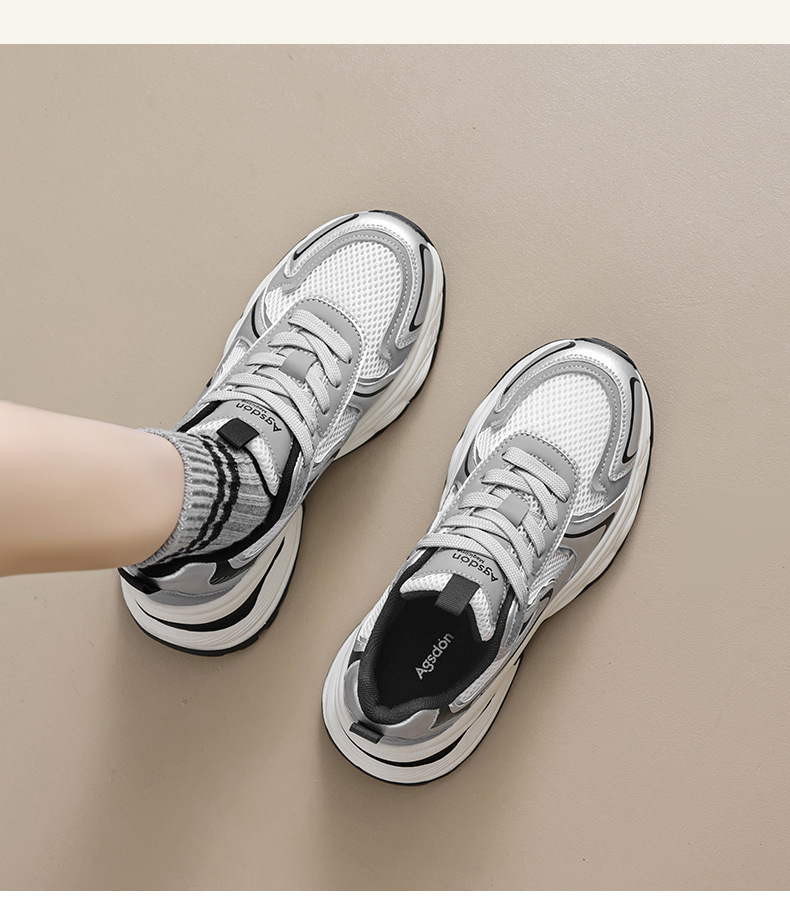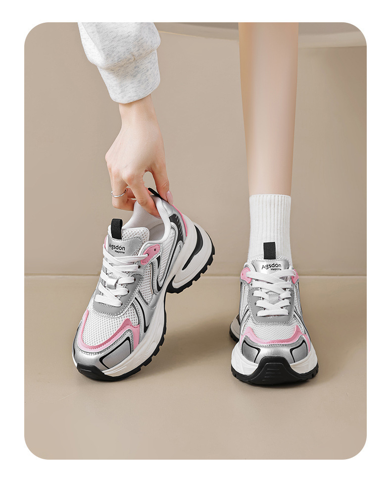 Augu Shi Deng plata zapatos padres mujeres 2024 nuevo verano retro escuela de viento de malla de fondo grueso zapatillas deportivas casuales