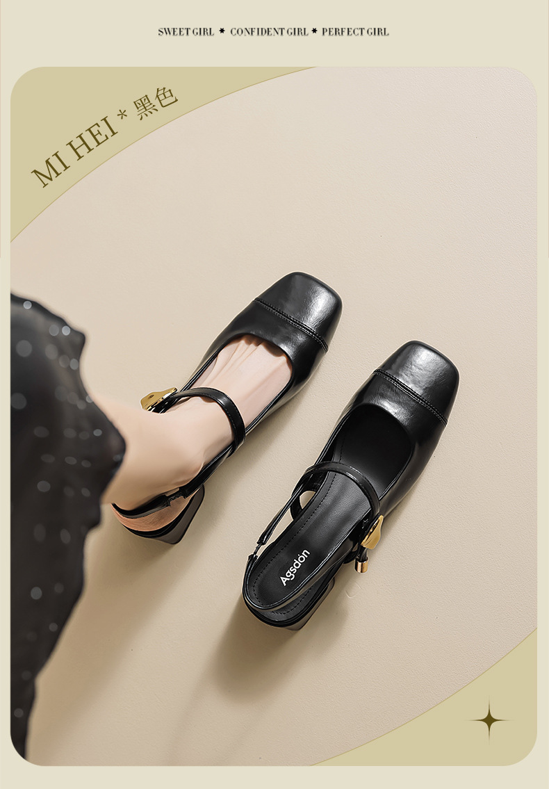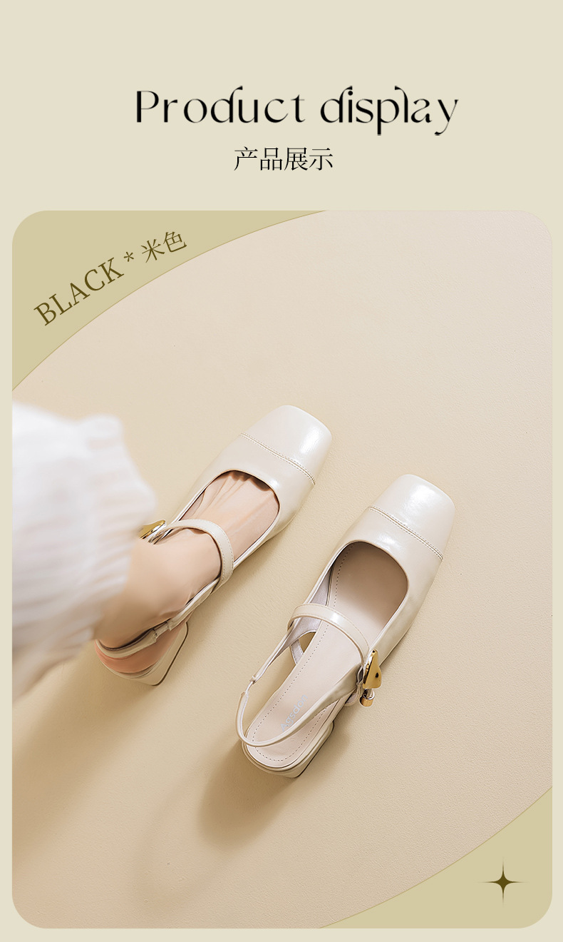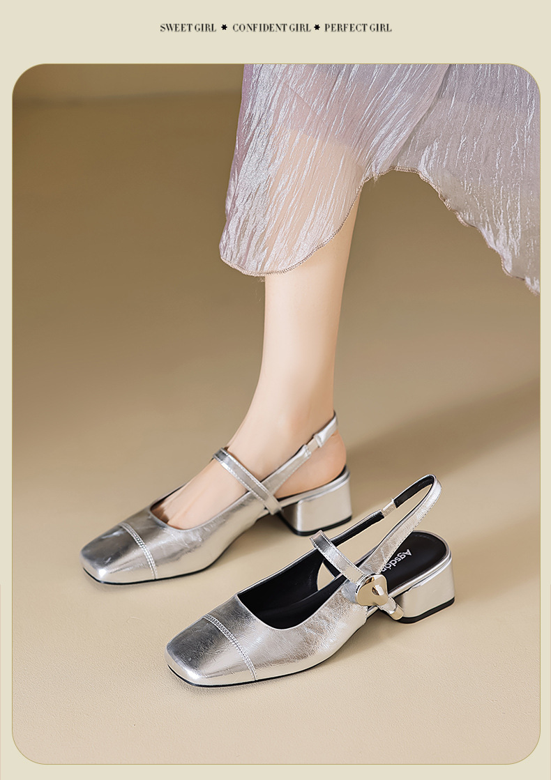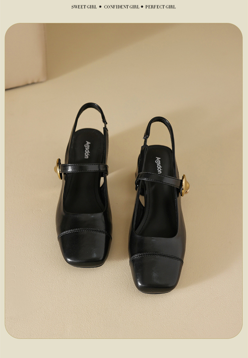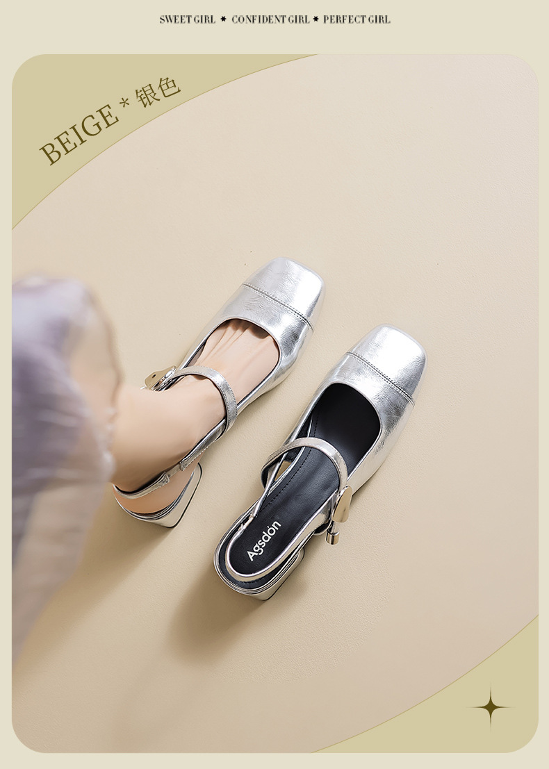 Augu Shi Deng Marizhen Baotou sandalias para mujeres 2026 nueva primavera con cabeza cuadrada con zapatos de cuero franceses con aire trasero