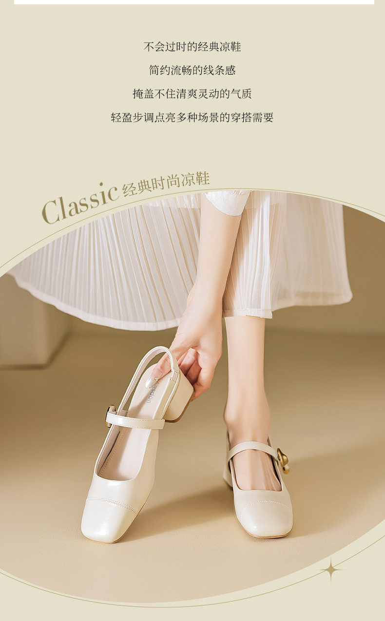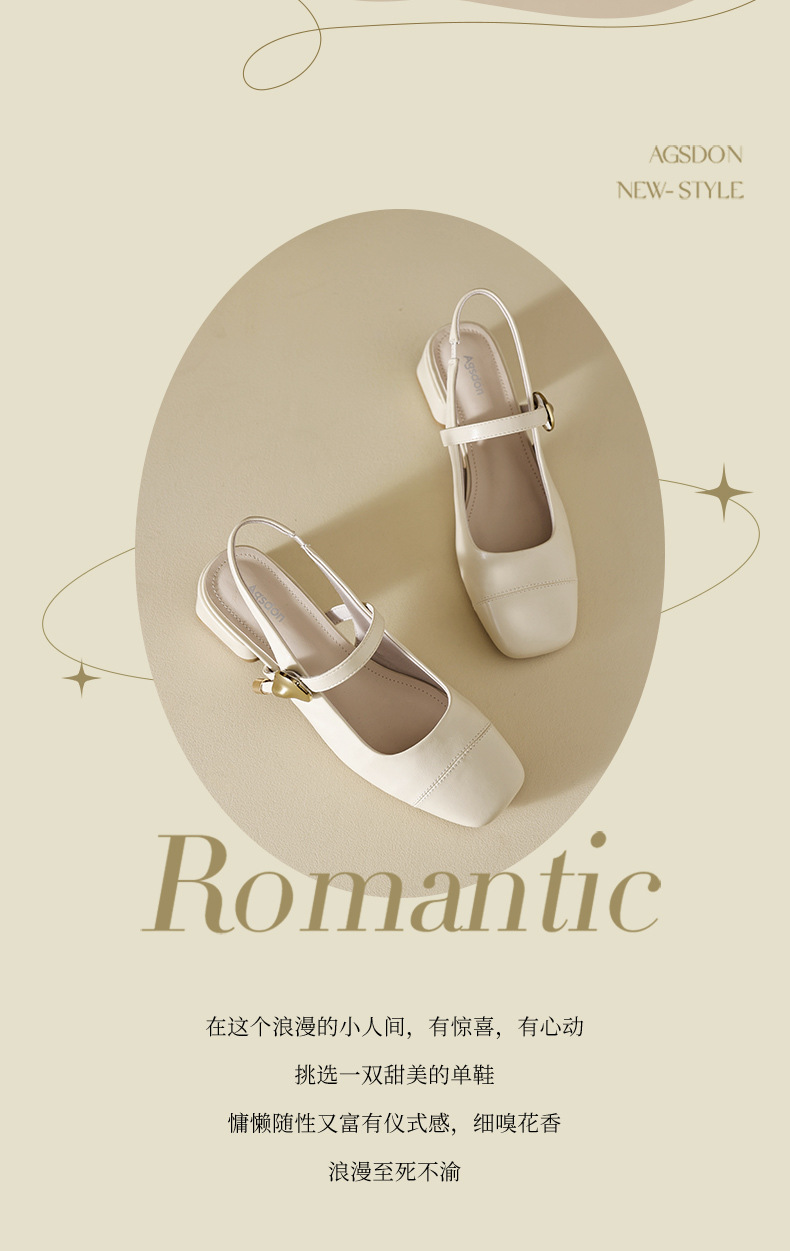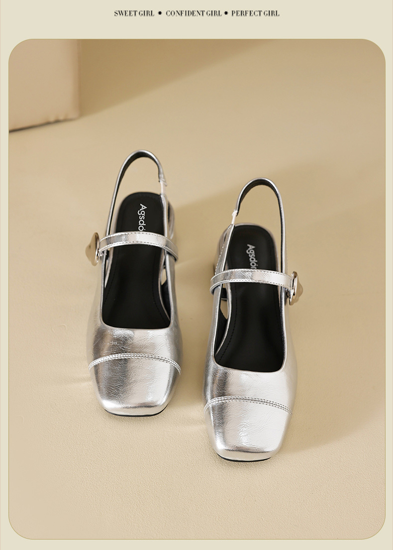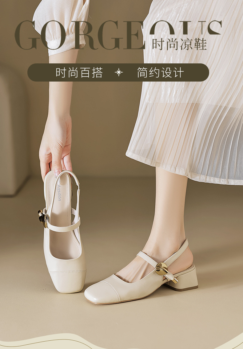 Augu Shi Deng Marizhen Baotou sandalias para mujeres 2026 nueva primavera con cabeza cuadrada con zapatos de cuero franceses con aire trasero