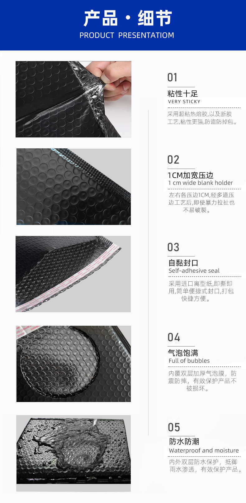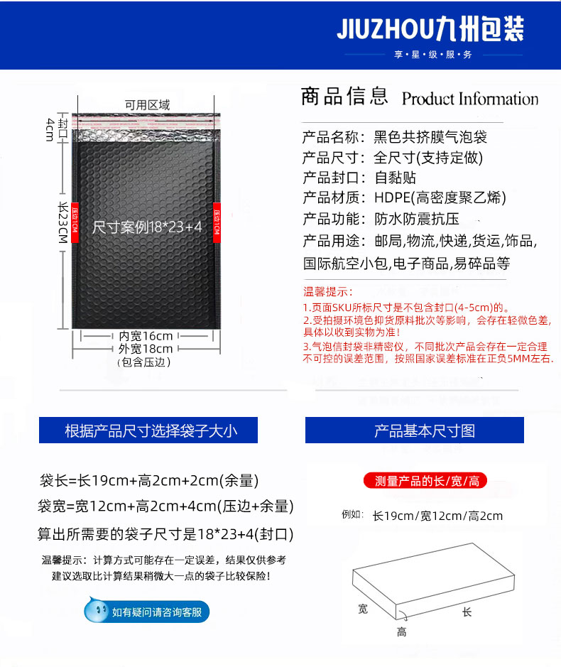 Bolsa de burbuja de película coextrudida negra, bolsa de entrega a prueba de choque, bolsa de embalaje de burbuja, bolsa de embalaje autoadhesiva, bolsa de sobres