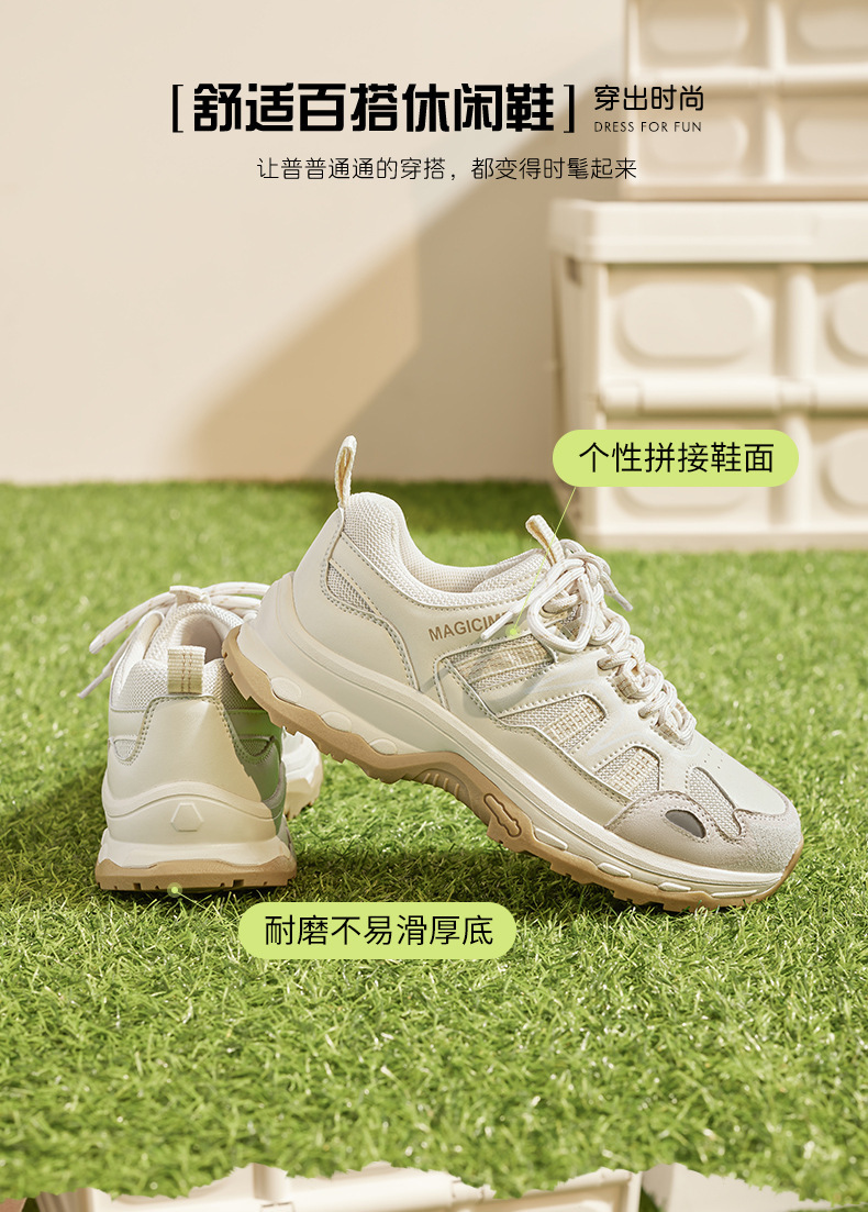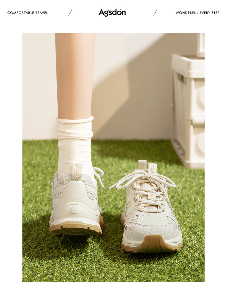 Augu Shi Deng zapatos de base gruesa para padres y mujeres 2026 nuevos zapatos deportivos ligeros casuales de primavera zapatos de corrida de malla para estudiantes