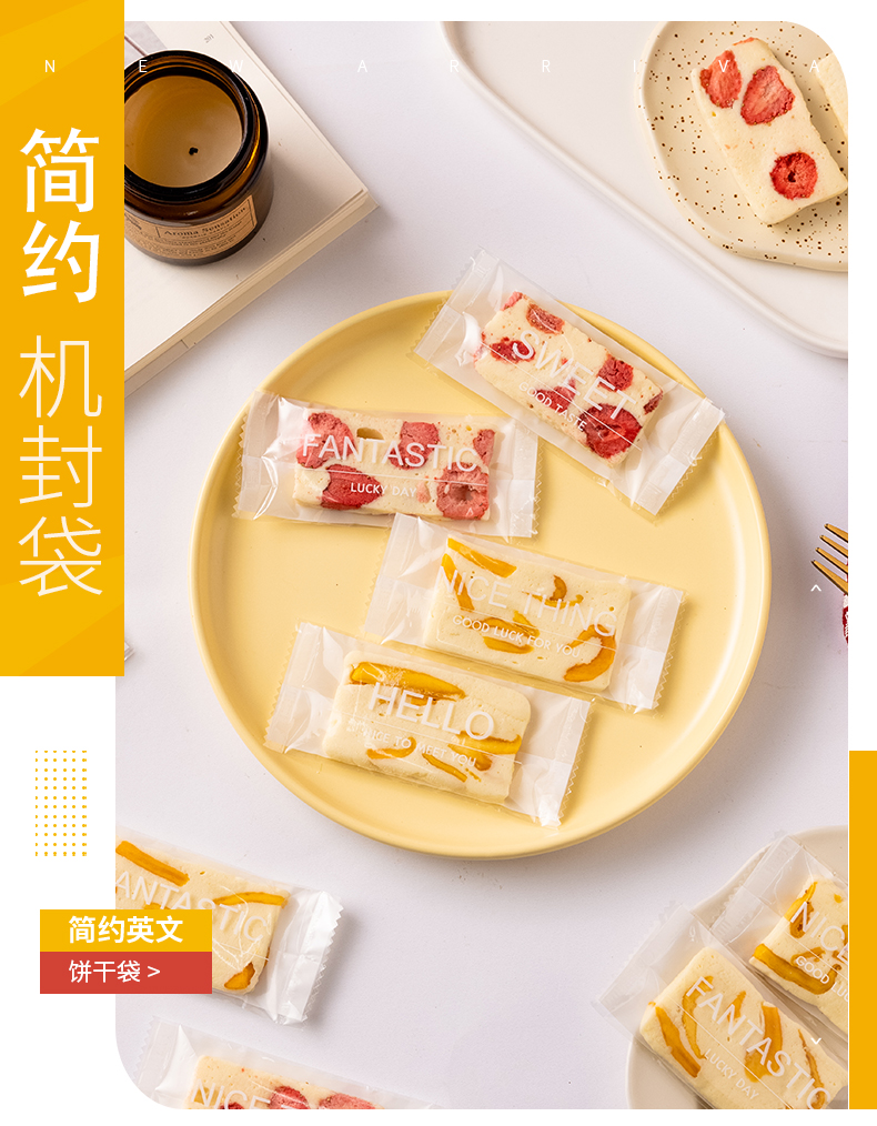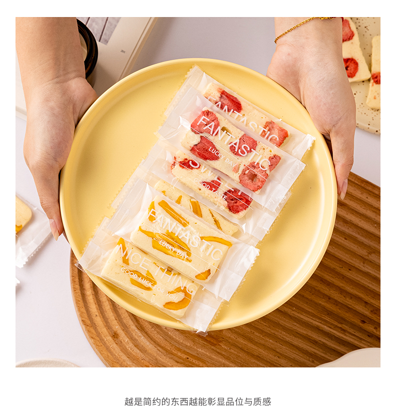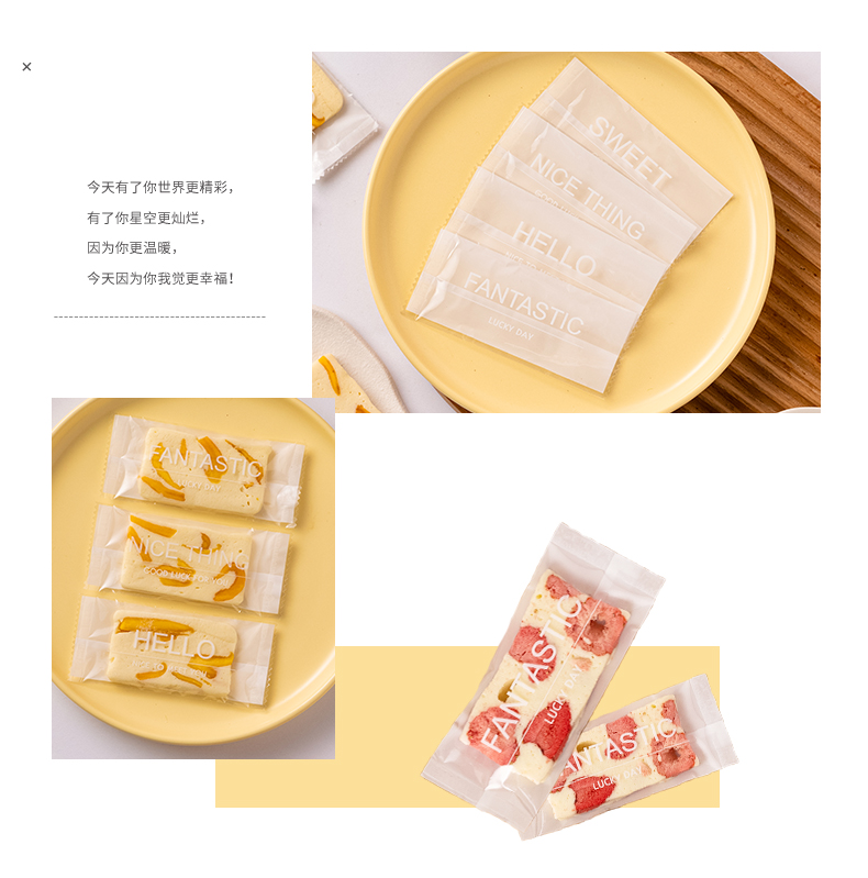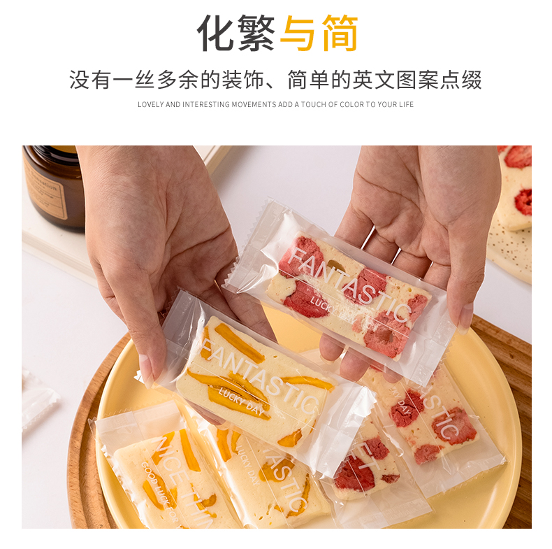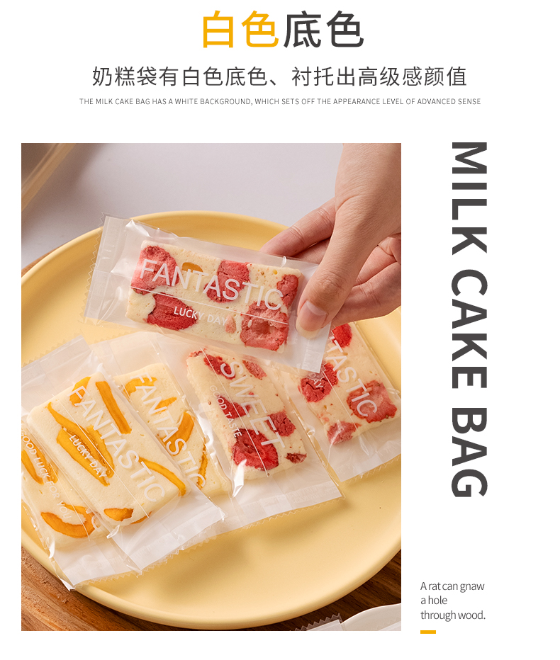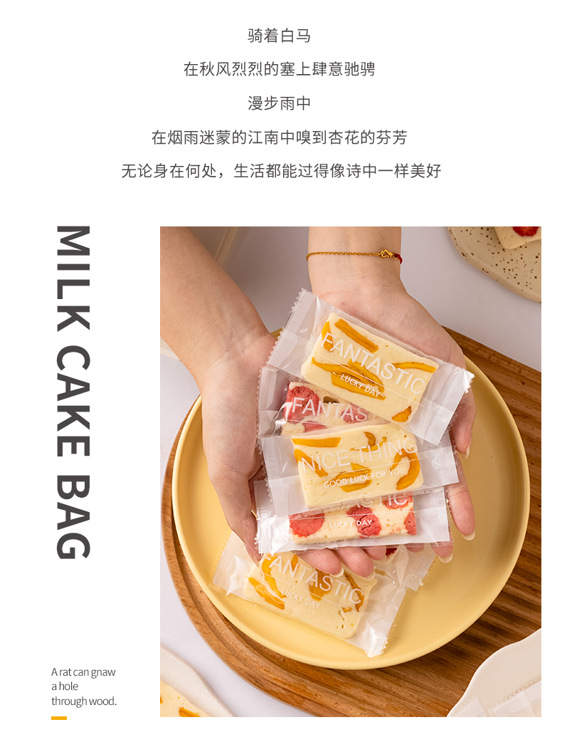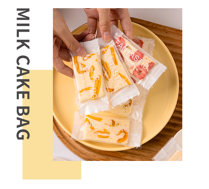 Bolsa de embalaje de pastel de leche, bolsa de sellado de máquina, paquete exterior simple en inglés, almendras, caramelo, nougat, bolsa de sellado de horneado doméstico