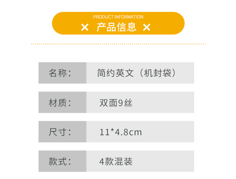 | Especificaciones y modelos | 【简约英文】机封袋 4款混装-100枚,【简约英文】机封袋 4款混装-200枚,【简约英文】机封袋 4款混装-400枚,【简约英文】机封袋 4款混装-600枚,【简约英文】机封袋 4款混装-1000枚入,【简约英文】机封袋 4款混装-5只,【红色格子 英文混装】 2款混装-100枚,【红色格子 英文混装】 2款混装-200枚,【红色格子 英文混装】 2款混装-400枚,【红色格子 英文混装】 2款混装-600枚,【红色格子 英文混装】 2款混装-1000枚入,【红色格子 英文混装】 2款混装-5只,【咖色格子 英文混装】 2款混装-100枚,【咖色格子 英文混装】 2款混装-200枚,【咖色格子 英文混装】 2款混装-400枚,【咖色格子 英文混装】 2款混装-600枚,【咖色格子 英文混装】 2款混装-1000枚入,【咖色格子 英文混装】 2款混装-5只,【可爱小兔】机封袋-100枚,【可爱小兔】机封袋-200枚,【可爱小兔】机封袋-400枚,【可爱小兔】机封袋-600枚,【可爱小兔】机封袋-1000枚入,【可爱小兔】机封袋-5只,【淘气小熊】机封袋-100枚,【淘气小熊】机封袋-200枚,【淘气小熊】机封袋-400枚,【淘气小熊】机封袋-600枚,【淘气小熊】机封袋-1000枚入,【淘气小熊】机封袋-5只,【金色英文】亮面 如图-100枚,【金色英文】亮面 如图-200枚,【金色英文】亮面 如图-400枚,【金色英文】亮面 如图-600枚,【金色英文】亮面 如图-1000枚入,【金色英文】亮面 如图-5只,【缤纷世界】机封袋 2款混装-100枚,【缤纷世界】机封袋 2款混装-200枚,【缤纷世界】机封袋 2款混装-400枚,【缤纷世界】机封袋 2款混装-600枚,【缤纷世界】机封袋 2款混装-1000枚入,【缤纷世界】机封袋 2款混装-5只,【小熊软糖】机封袋 四款混装-100枚,【小熊软糖】机封袋 四款混装-200枚,【小熊软糖】机封袋 四款混装-400枚,【小熊软糖】机封袋 四款混装-600枚,【小熊软糖】机封袋 四款混装-1000枚入,【小熊软糖】机封袋 四款混装-5只,【兔子和小熊】机封袋 两款混装-100枚,【兔子和小熊】机封袋 两款混装-200枚,【兔子和小熊】机封袋 两款混装-400枚,【兔子和小熊】机封袋 两款混装-600枚,【兔子和小熊】机封袋 两款混装-1000枚入,【兔子和小熊】机封袋 两款混装-5只,【花和橙子】机封袋 两款混装-100枚,【花和橙子】机封袋 两款混装-200枚,【花和橙子】机封袋 两款混装-400枚,【花和橙子】机封袋 两款混装-600枚,【花和橙子】机封袋 两款混装-1000枚入,【花和橙子】机封袋 两款混装-5只,【快乐动物】机封袋 混装-100枚,【快乐动物】机封袋 混装-200枚,【快乐动物】机封袋 混装-400枚,【快乐动物】机封袋 混装-600枚,【快乐动物】机封袋 混装-1000枚入,【快乐动物】机封袋 混装-5只,【缤纷圣诞】 四款混装-100枚,【缤纷圣诞】 四款混装-200枚,【缤纷圣诞】 四款混装-400枚,【缤纷圣诞】 四款混装-600枚,【缤纷圣诞】 四款混装-1000枚入,【缤纷圣诞】 四款混装-5只,【圣诞派对】 四款混装-100枚,【圣诞派对】 四款混装-200枚,【圣诞派对】 四款混装-400枚,【圣诞派对】 四款混装-600枚,【圣诞派对】 四款混装-1000枚入,【圣诞派对】 四款混装-5只,【哑光英文大号】 机封袋 三款混装-100枚,【哑光英文大号】 机封袋 三款混装-200枚,【哑光英文大号】 机封袋 三款混装-400枚,【哑光英文大号】 机封袋 三款混装-600枚,【哑光英文大号】 机封袋 三款混装-1000枚入,【哑光英文大号】 机封袋 三款混装-5只,【幸福生活】机封袋 混装-100枚,【幸福生活】机封袋 混装-200枚,【幸福生活】机封袋 混装-400枚,【幸福生活】机封袋 混装-600枚,【幸福生活】机封袋 混装-1000枚入,【幸福生活】机封袋 混装-5只,【透明】机封袋-100枚,【透明】机封袋-200枚,【透明】机封袋-400枚,【透明】机封袋-600枚,【透明】机封袋-1000枚入,【透明】机封袋-5只,【咖啡混装】 机封袋-100枚,【咖啡混装】 机封袋-200枚,【咖啡混装】 机封袋-400枚,【咖啡混装】 机封袋-600枚,【咖啡混装】 机封袋-1000枚入,【咖啡混装】 机封袋-5只,【金色英文】 机封袋-100枚,【金色英文】 机封袋-200枚,【金色英文】 机封袋-400枚,【金色英文】 机封袋-600枚,【金色英文】 机封袋-1000枚入,【金色英文】 机封袋-5只,【金边透明】手提盒-100枚,【金边透明】手提盒-200枚,【金边透明】手提盒-400枚,【金边透明】手提盒-600枚,【金边透明】手提盒-1000枚入,【金边透明】手提盒-5只,【多喜乐】手提盒-100枚,【多喜乐】手提盒-200枚,【多喜乐】手提盒-400枚,【多喜乐】手提盒-600枚,【多喜乐】手提盒-1000枚入,【多喜乐】手提盒-5只,【淘气小熊】手提盒-100枚,【淘气小熊】手提盒-200枚,【淘气小熊】手提盒-400枚,【淘气小熊】手提盒-600枚,【淘气小熊】手提盒-1000枚入,【淘气小熊】手提盒-5只,【可爱小兔】手提盒-100枚,【可爱小兔】手提盒-200枚,【可爱小兔】手提盒-400枚,【可爱小兔】手提盒-600枚,【可爱小兔】手提盒-1000枚入,【可爱小兔】手提盒-5只 |