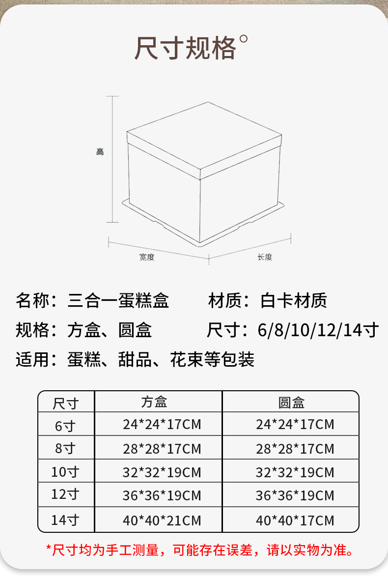 Tres en uno 6 pulgadas 8 pulgadas 10 pulgadas 12 pulgadas 14 pulgadas seis pulgadas redondeadas caja de pastel de cumpleaños caja de embalaje de pastel