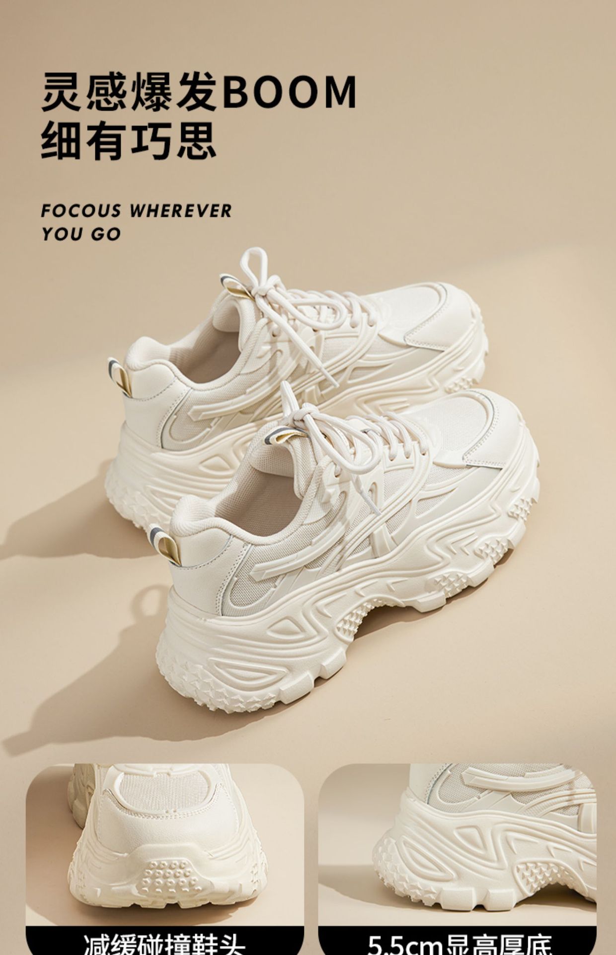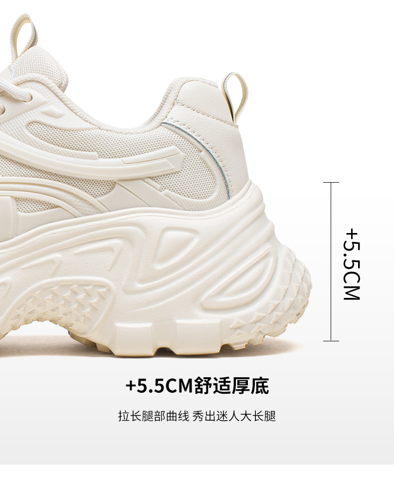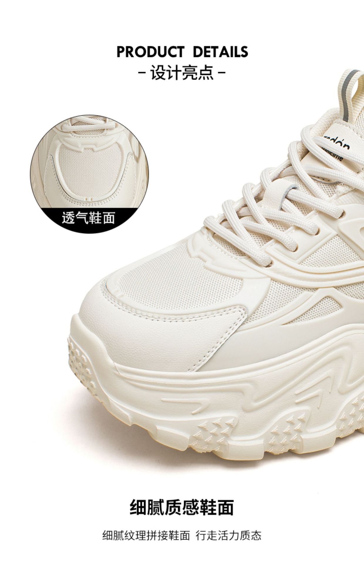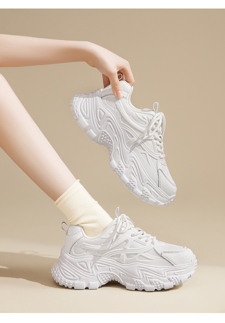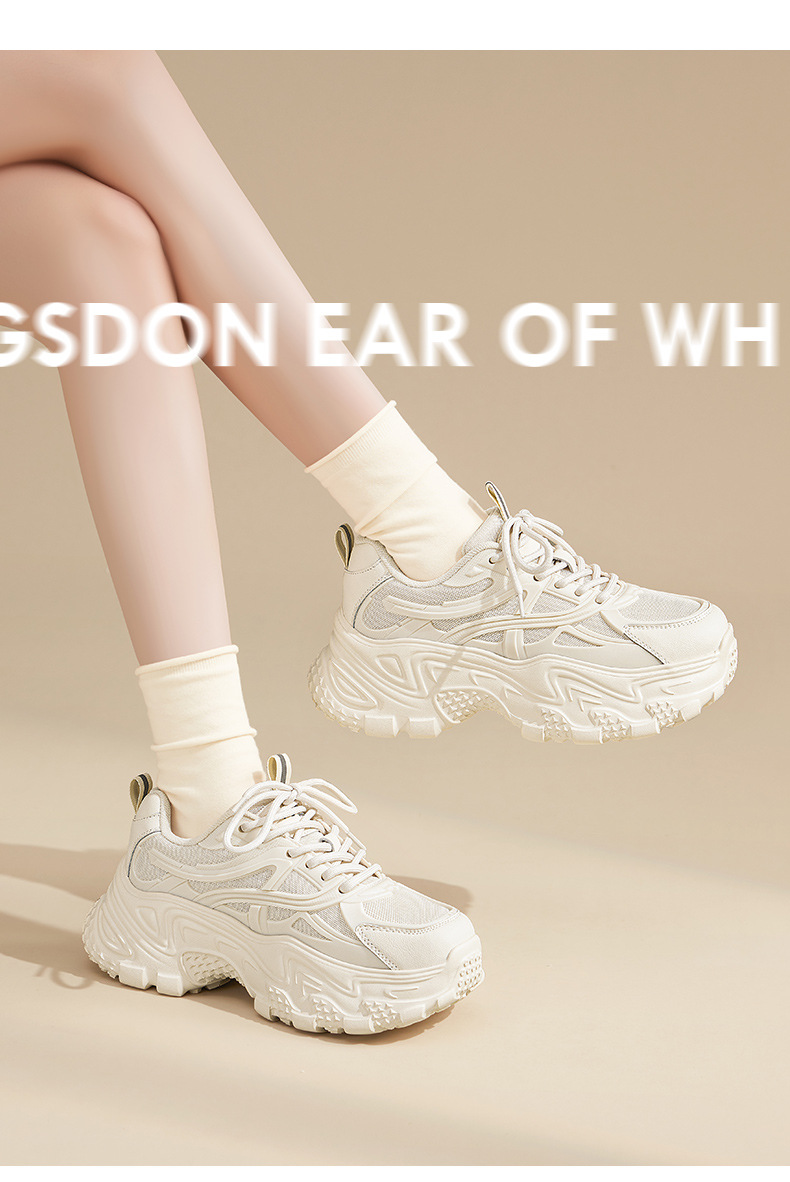 Augu Shi Deng zapatos de papá y mujer 2025 nuevo invierno mallas casuales pequeñas zapatillas deportivas blancas con suela gruesa ligera para mostrar pies pequeños