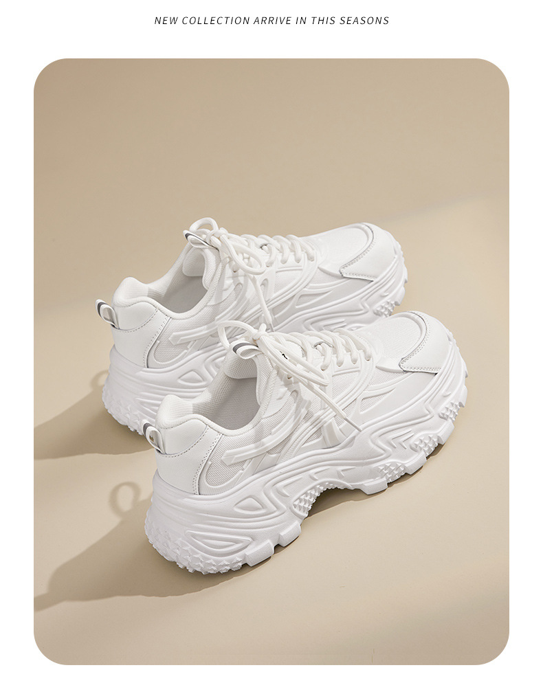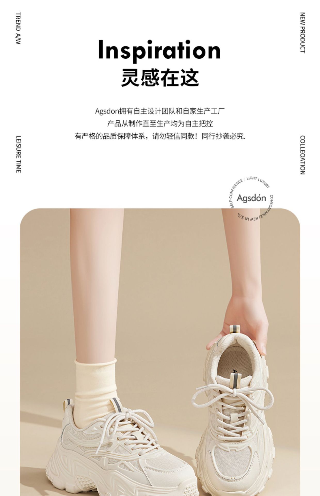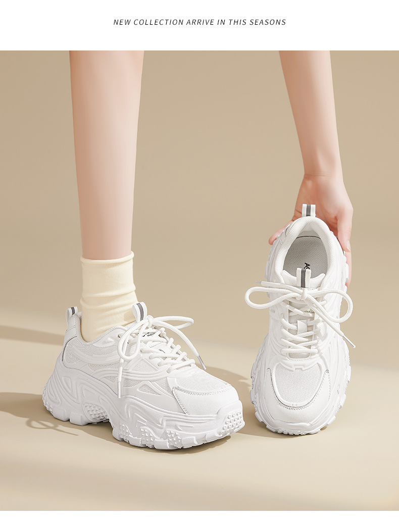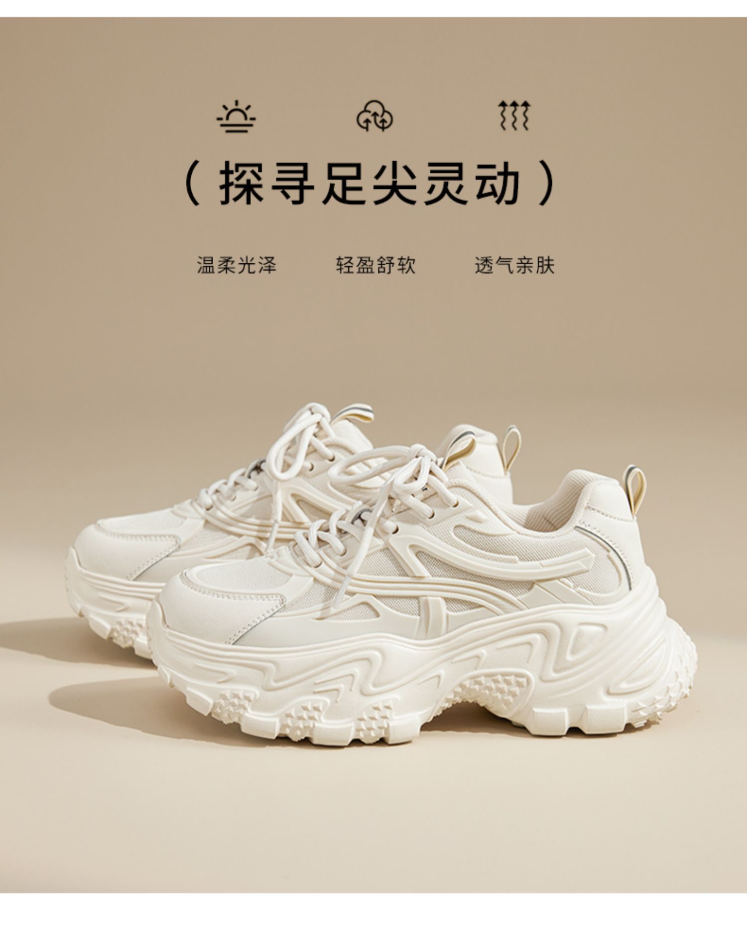 Augu Shi Deng zapatos de papá y mujer 2025 nuevo invierno mallas casuales pequeñas zapatillas deportivas blancas con suela gruesa ligera para mostrar pies pequeños