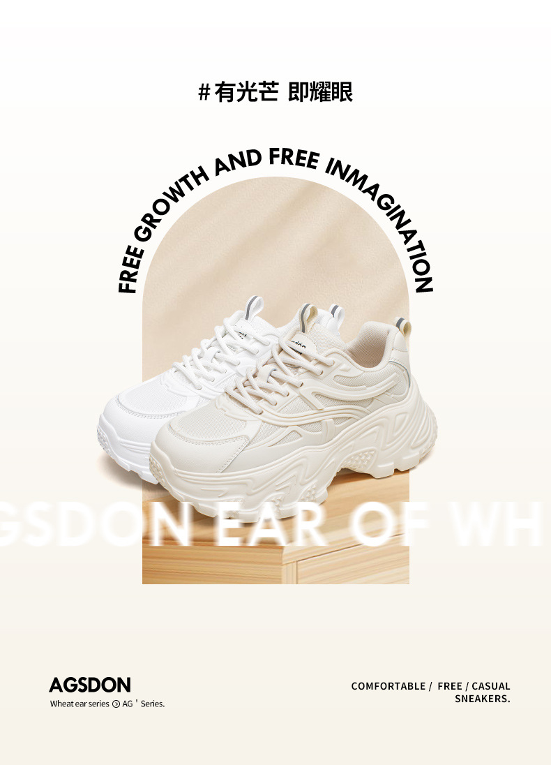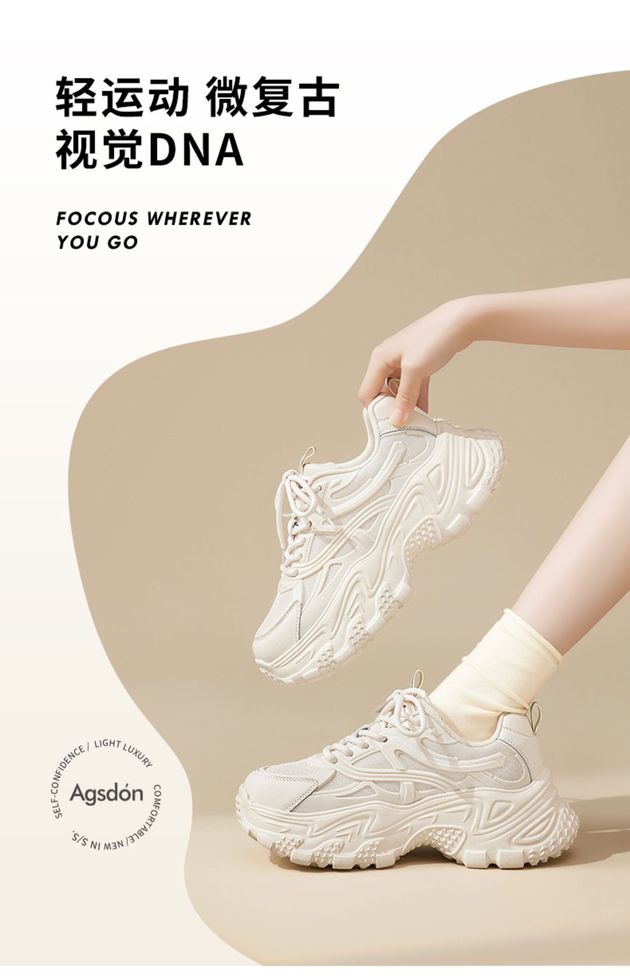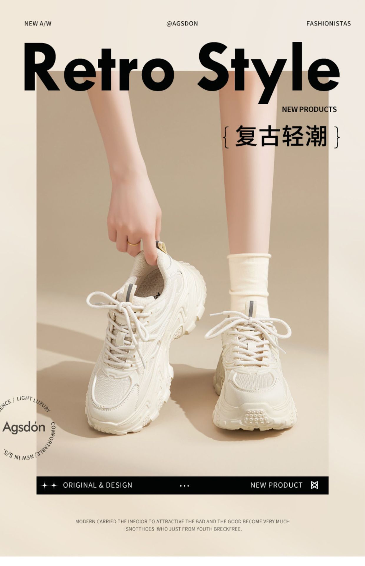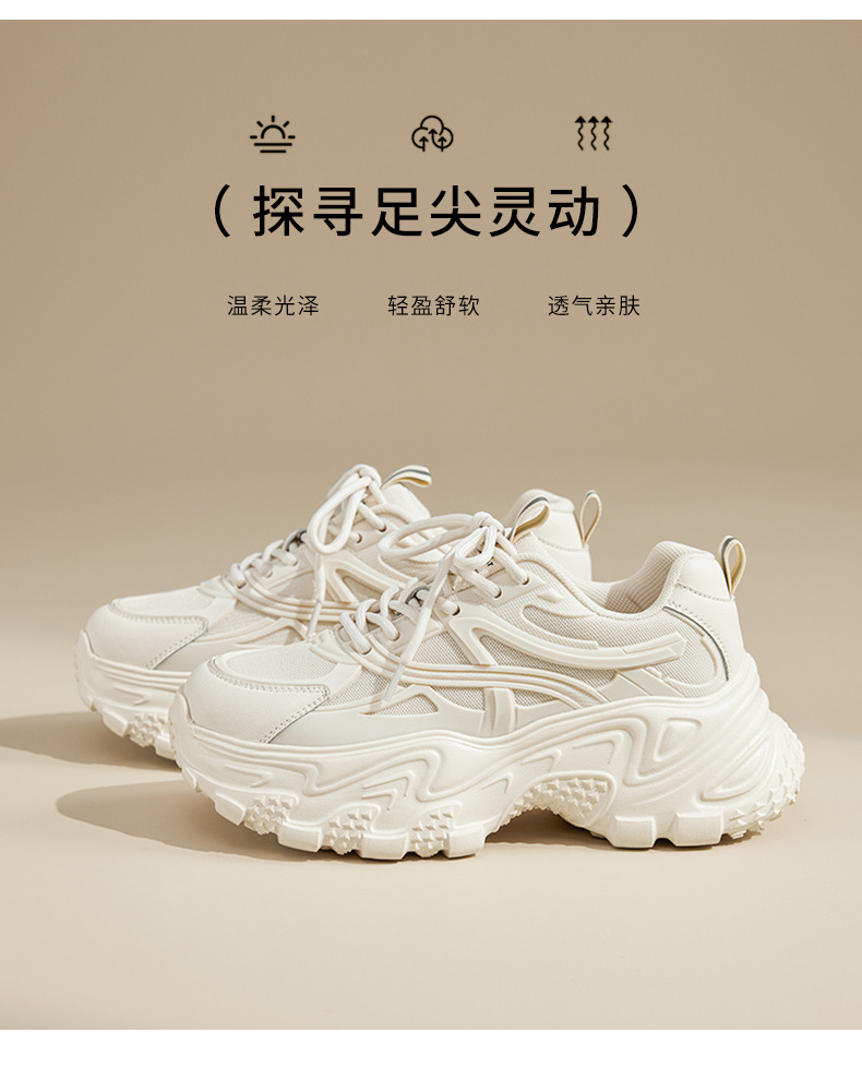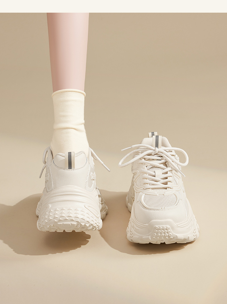 Augu Shi Deng zapatos de papá y mujer 2025 nuevo invierno mallas casuales pequeñas zapatillas deportivas blancas con suela gruesa ligera para mostrar pies pequeños