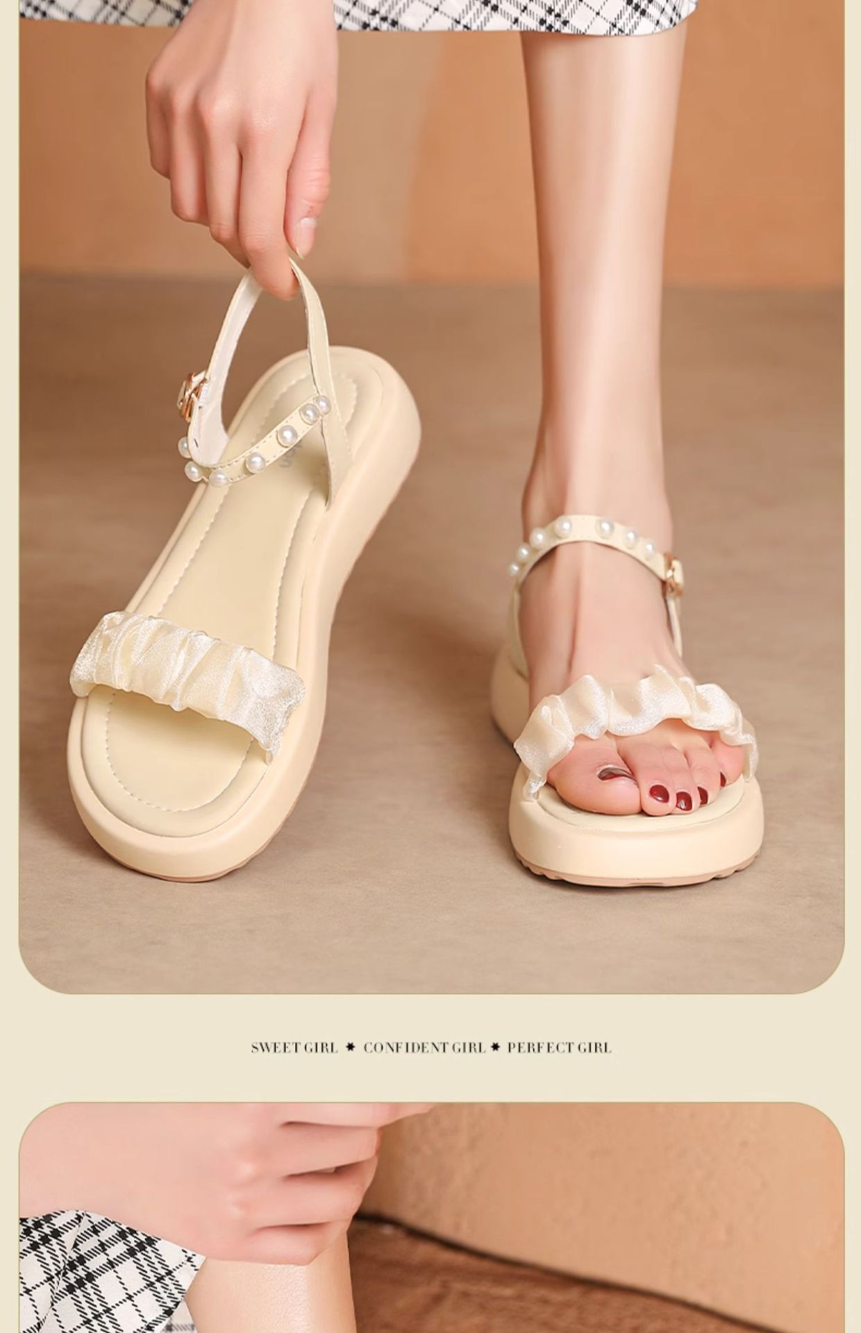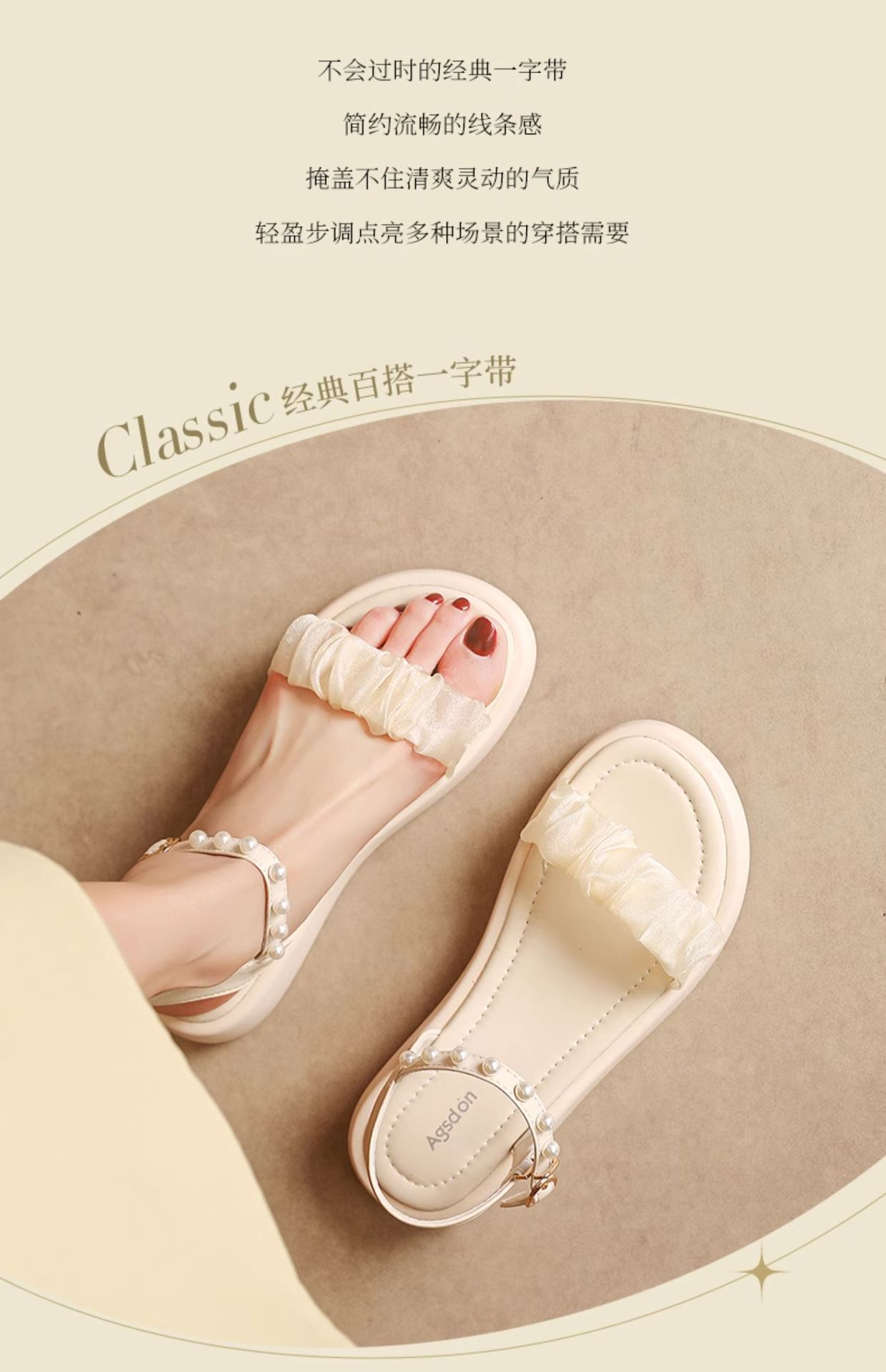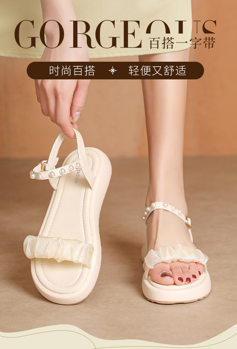 Sandalias antiguas para mujeres 2025, nuevo estilo de verano de fondo grueso de perlas de hadas con sandalias