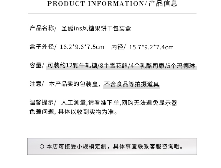 | Color | Un rollo de cuerdas de piel de veludo rojo oscuro, bolsas de nougat de rayas inclinadas de aproximadamente 100, bolsas de nougat de Navidad 95 - 100 / paquete (2 mezclas y combinaciones), bolsas de nougat de aluminio de Navidad de aproximadamente 100, bolsas de nougat de cuadrícula de oso de aproximadamente 100, cajas de dulces de galletas amarillas claras 5 precios no incluidos alimentos |