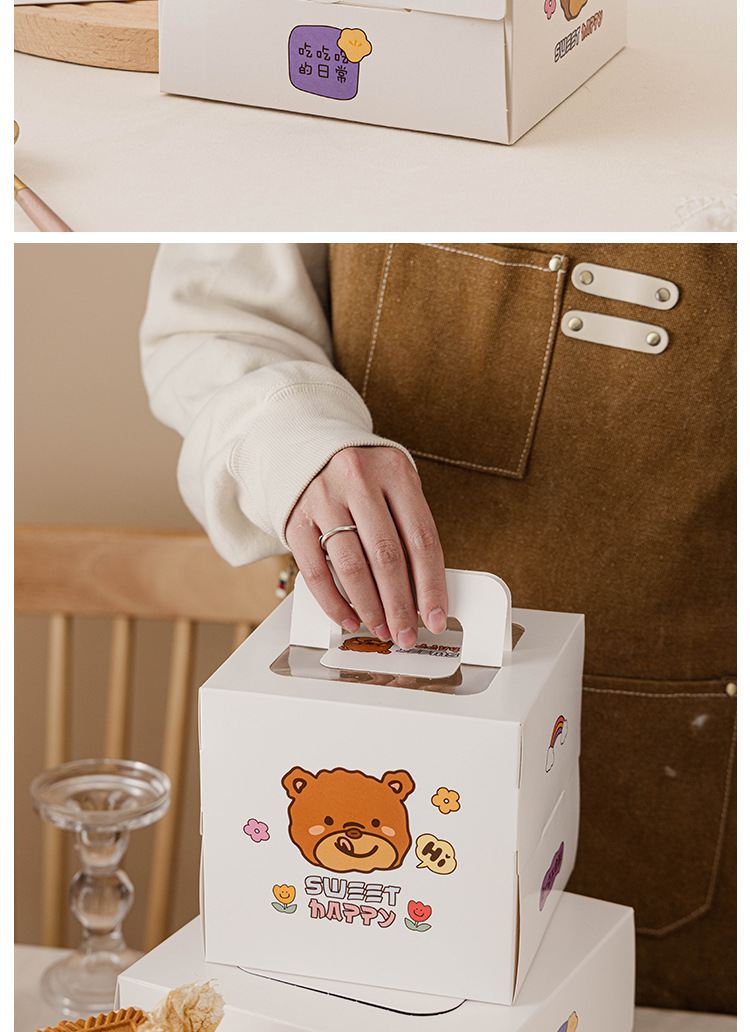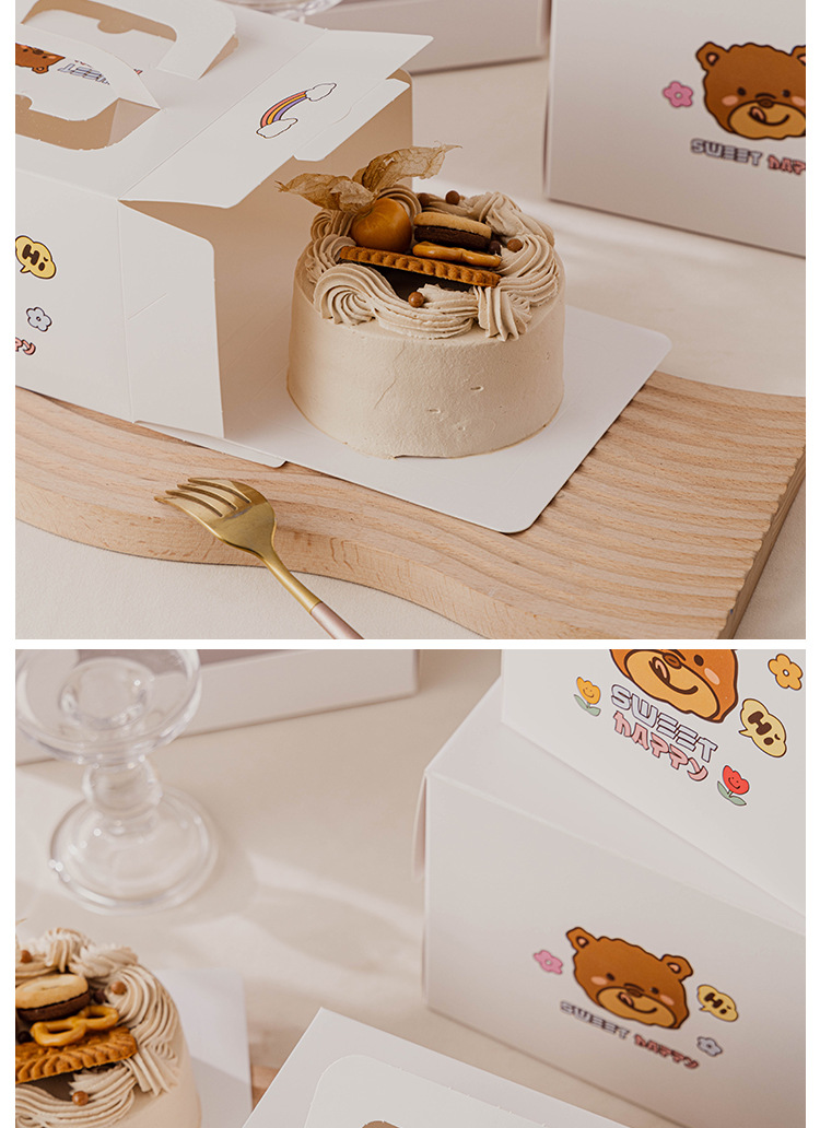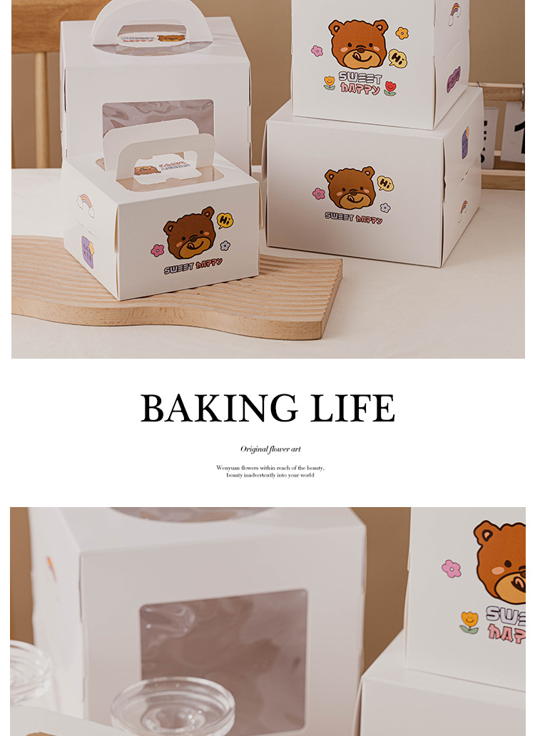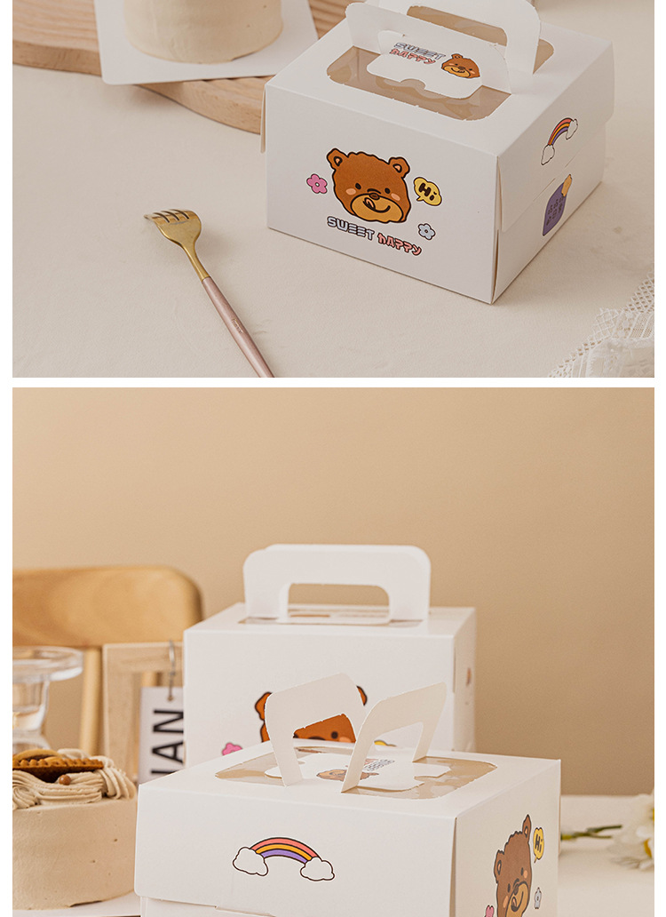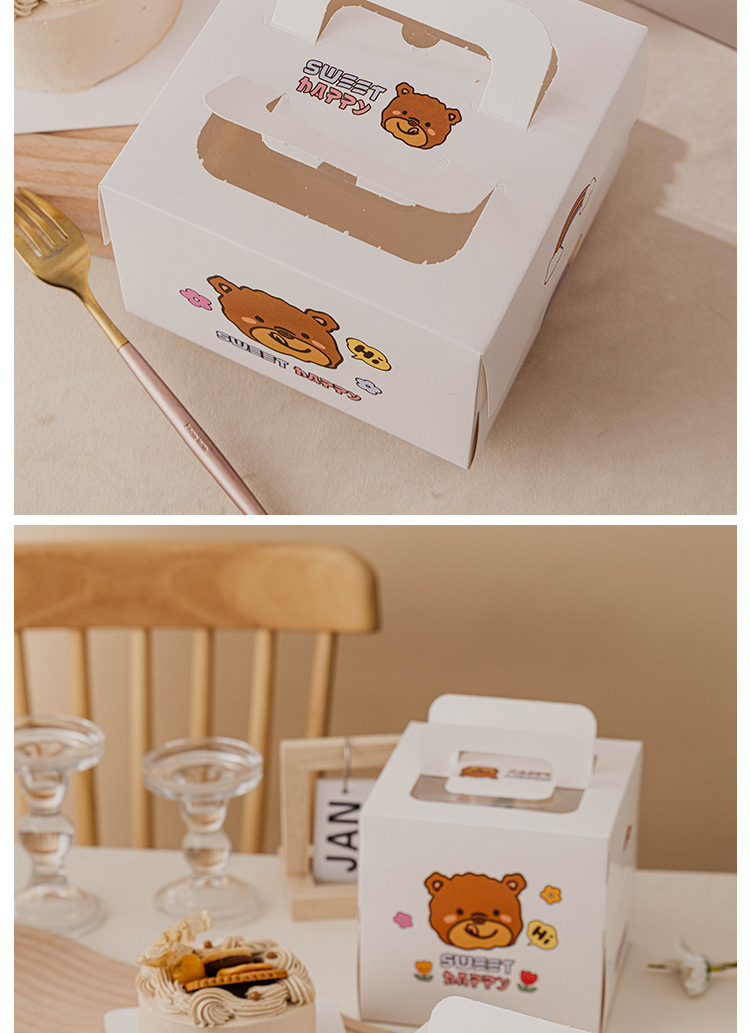 Ins Red Bear 4 / 6 pulgadas caja de pastel de cumpleaños ventana abierta más caja de cartón portátil alta horneado envasado musgo vasco