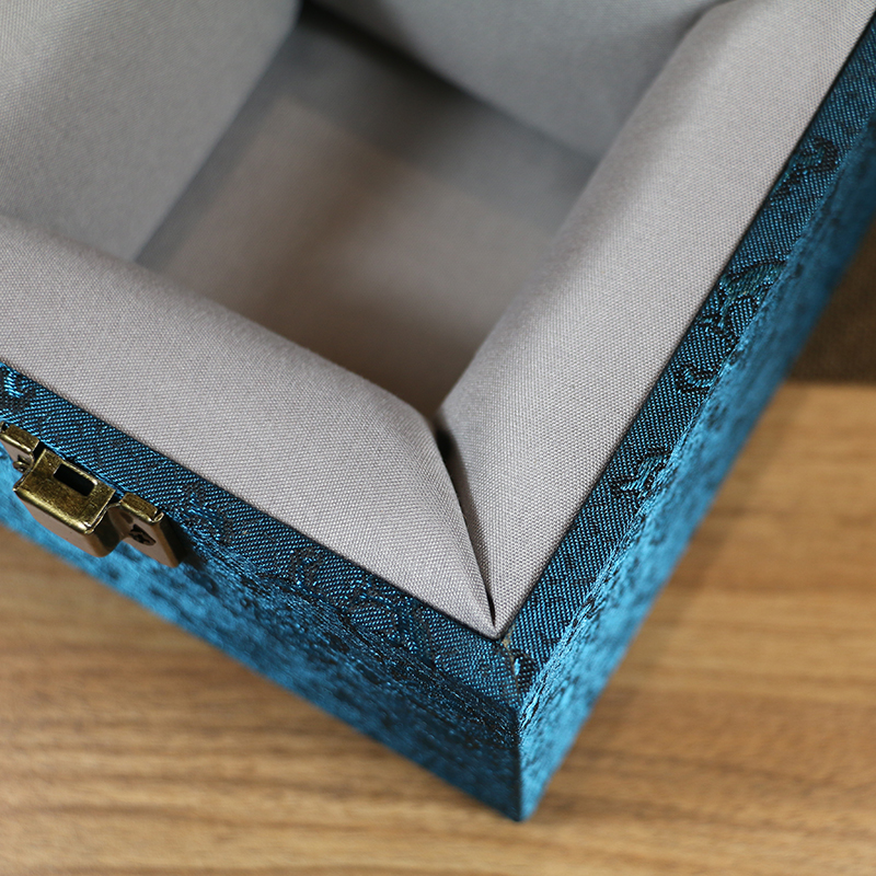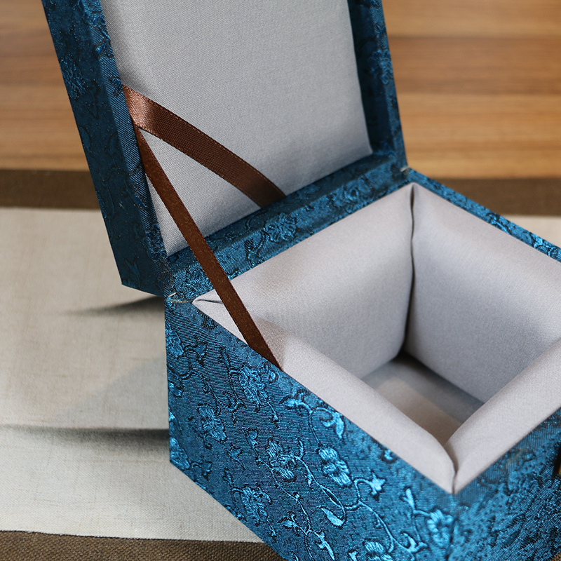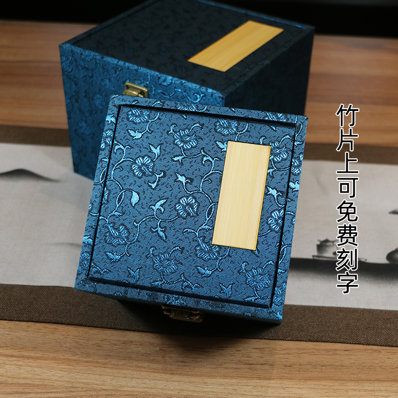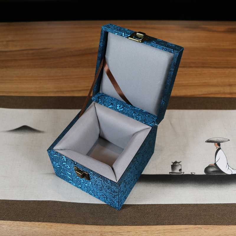 Retro botón cuadrado caja de embalaje jar de arena púrpura Jianzhang caja de regalo de lino flip brocade caja de porcelana incienso caja vacía inscripción