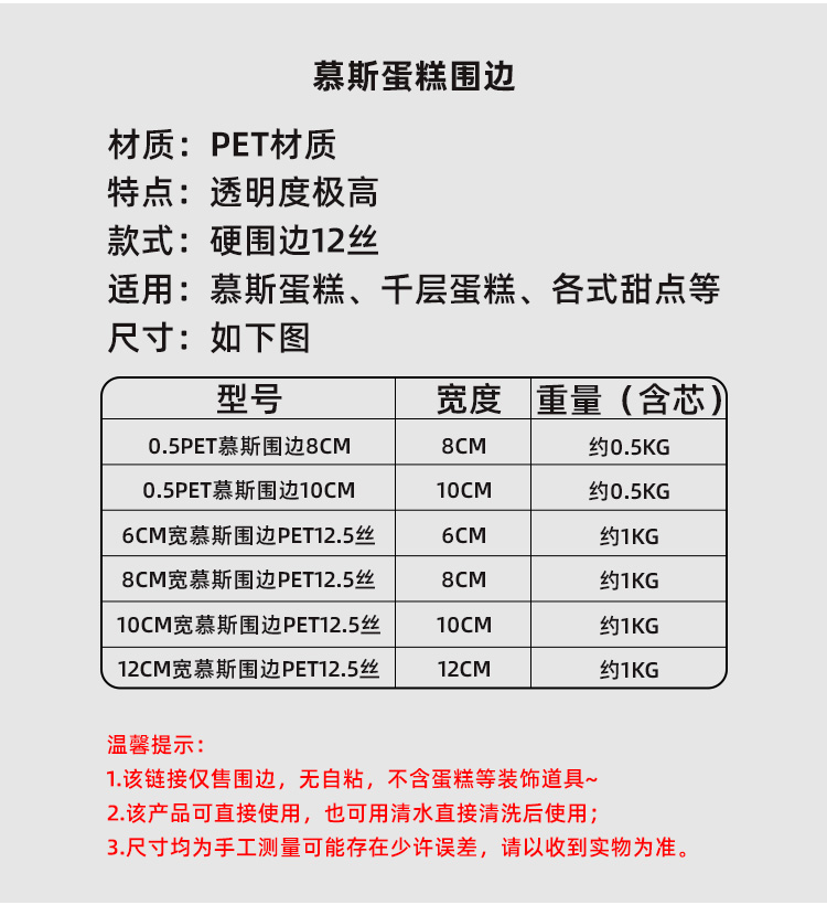 El borde del pastel grueso, el borde transparente, el borde blando, el borde 10 / 8cm de ancho, la decoración del pastel de cumpleaños.