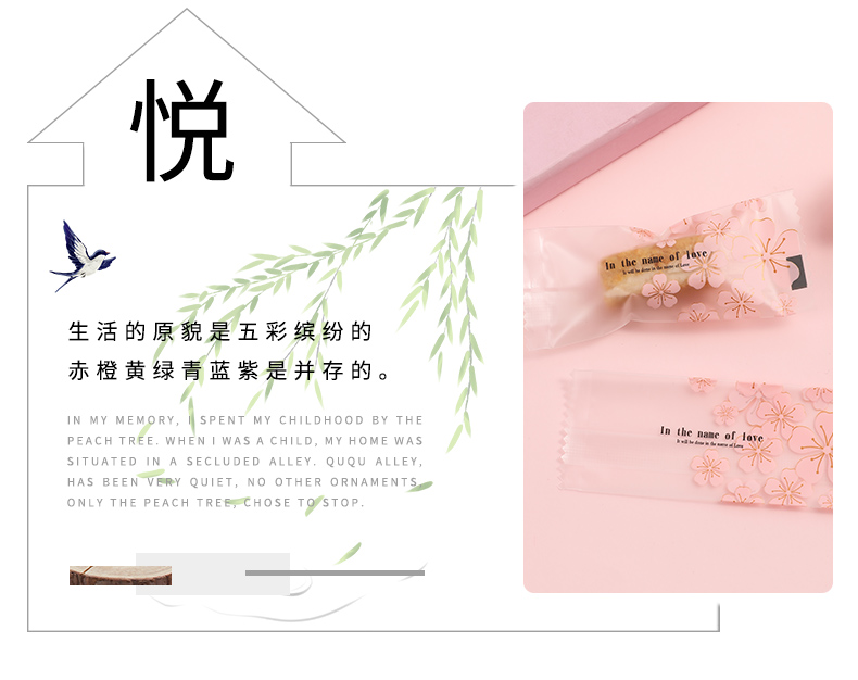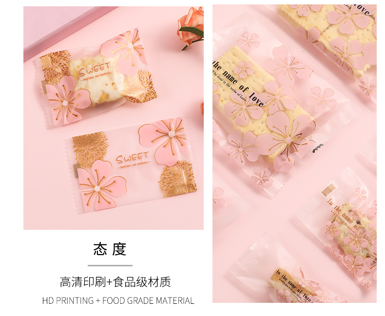 Bolsa de embalaje de cerezo, leche de fecha, bolsa de embalaje de nieve, botón de nougat encantador, galletas de vaca horneadas, bolsa de embalaje de pasteles de luna