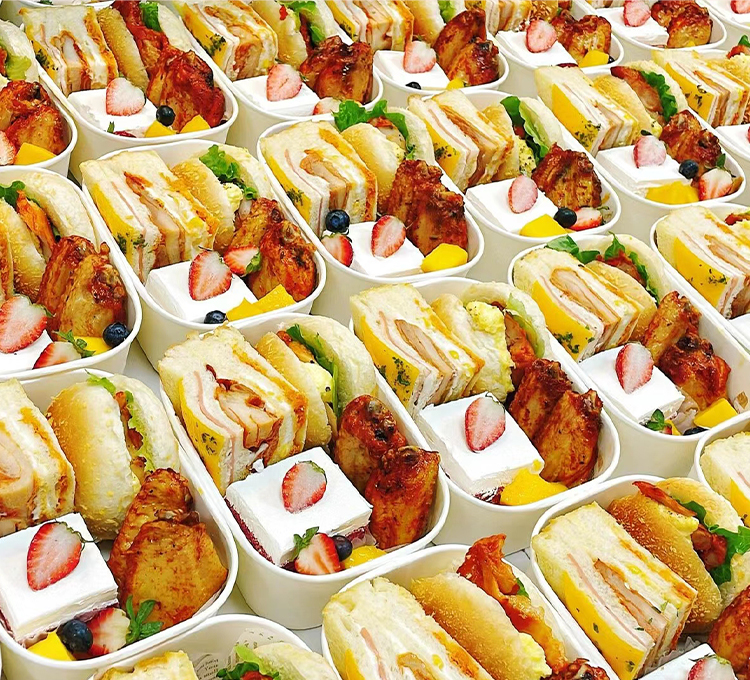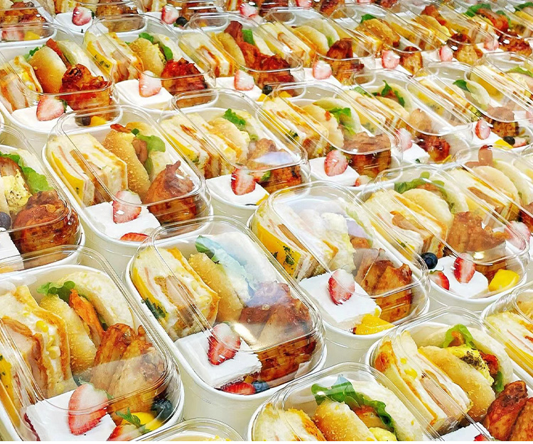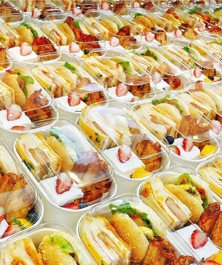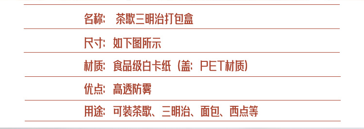 Caja de embalaje de sándwich de té de la tarde, caja de embalaje de postres, caja de picnic, cubierta de caja rectangular desechable