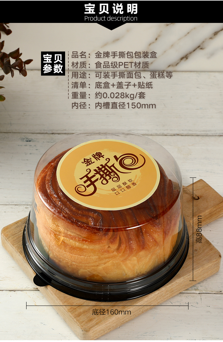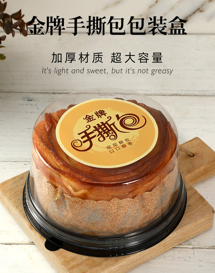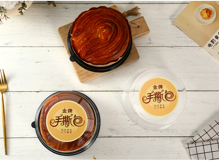 Caja de embalaje de pan desgarrado a mano 6 pulgadas caja de pastel de lazanas de durian caja de plástico transparente redonda horneado envasado