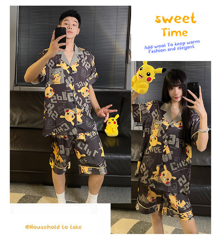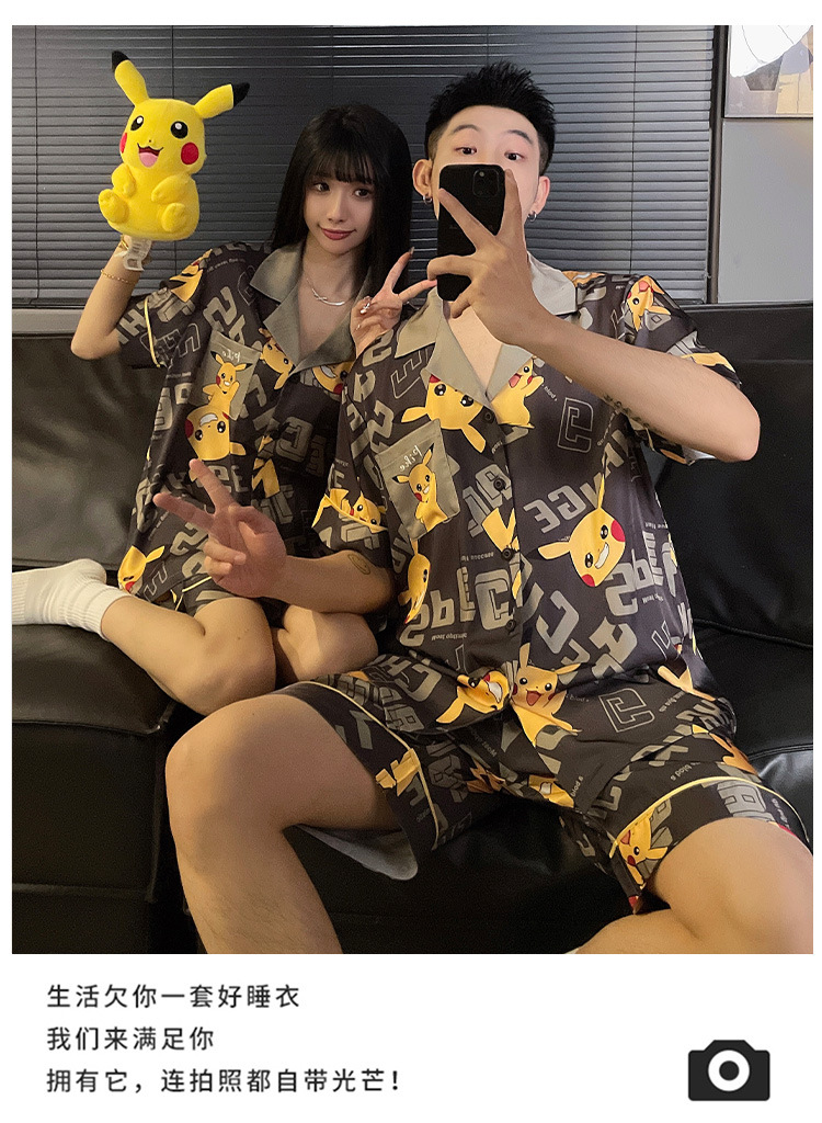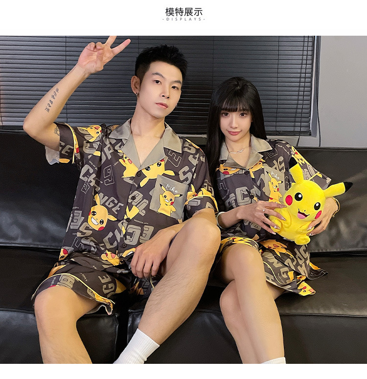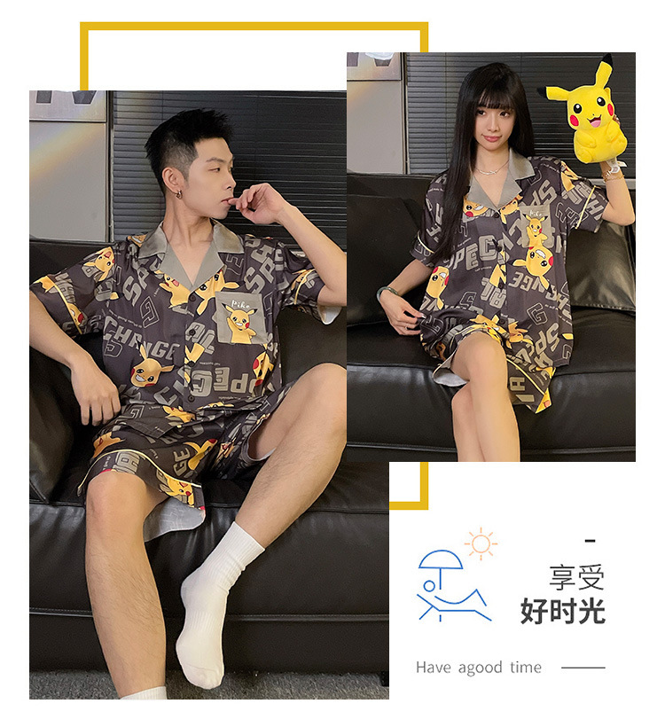 2025 nuevo pijama de pareja de verano de seda de hielo de manga corta para estudiantes lindos ropa de casa de hombre de seda