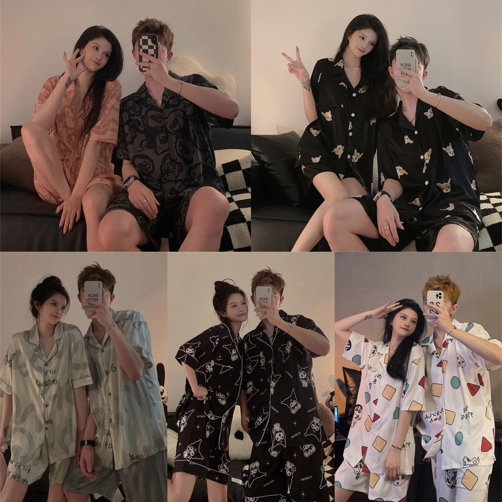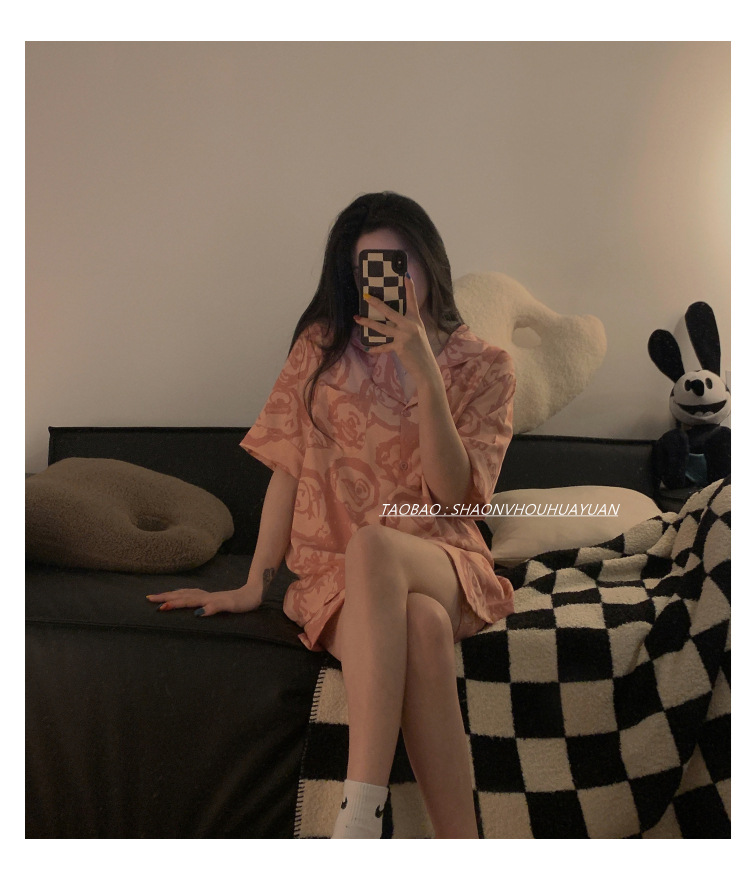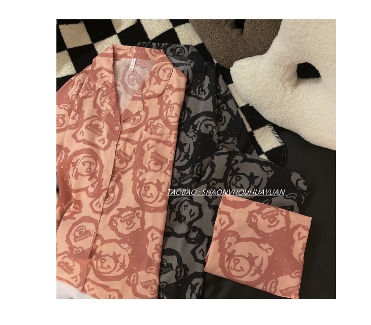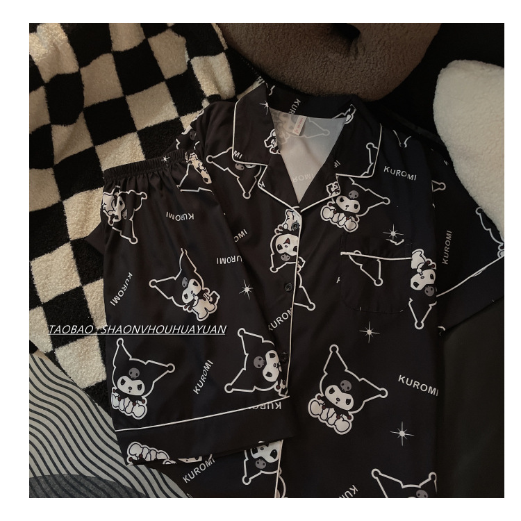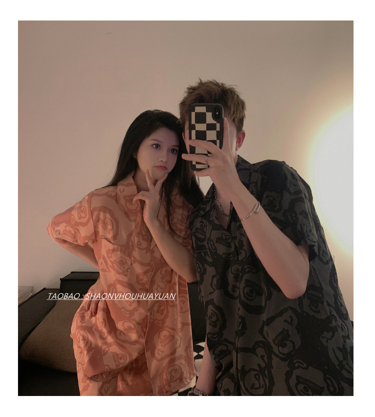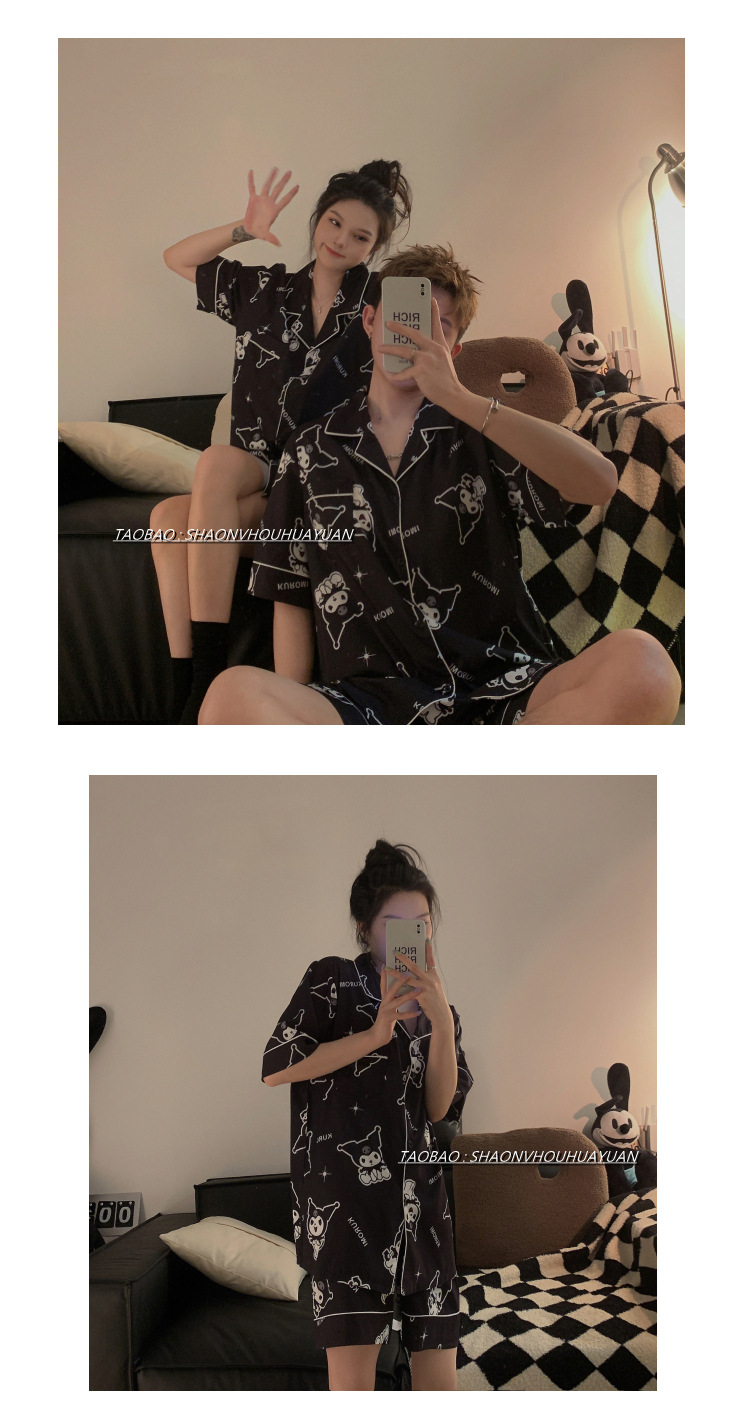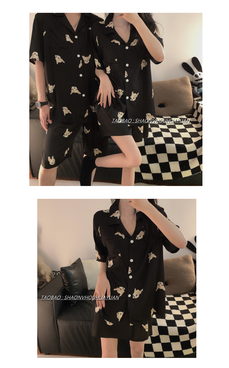 Pajamas de pareja de mangas cortas para mujeres de verano seda suave encantadora caricatura para hombres seda delgada alta sensación set de ropa para el hogar
