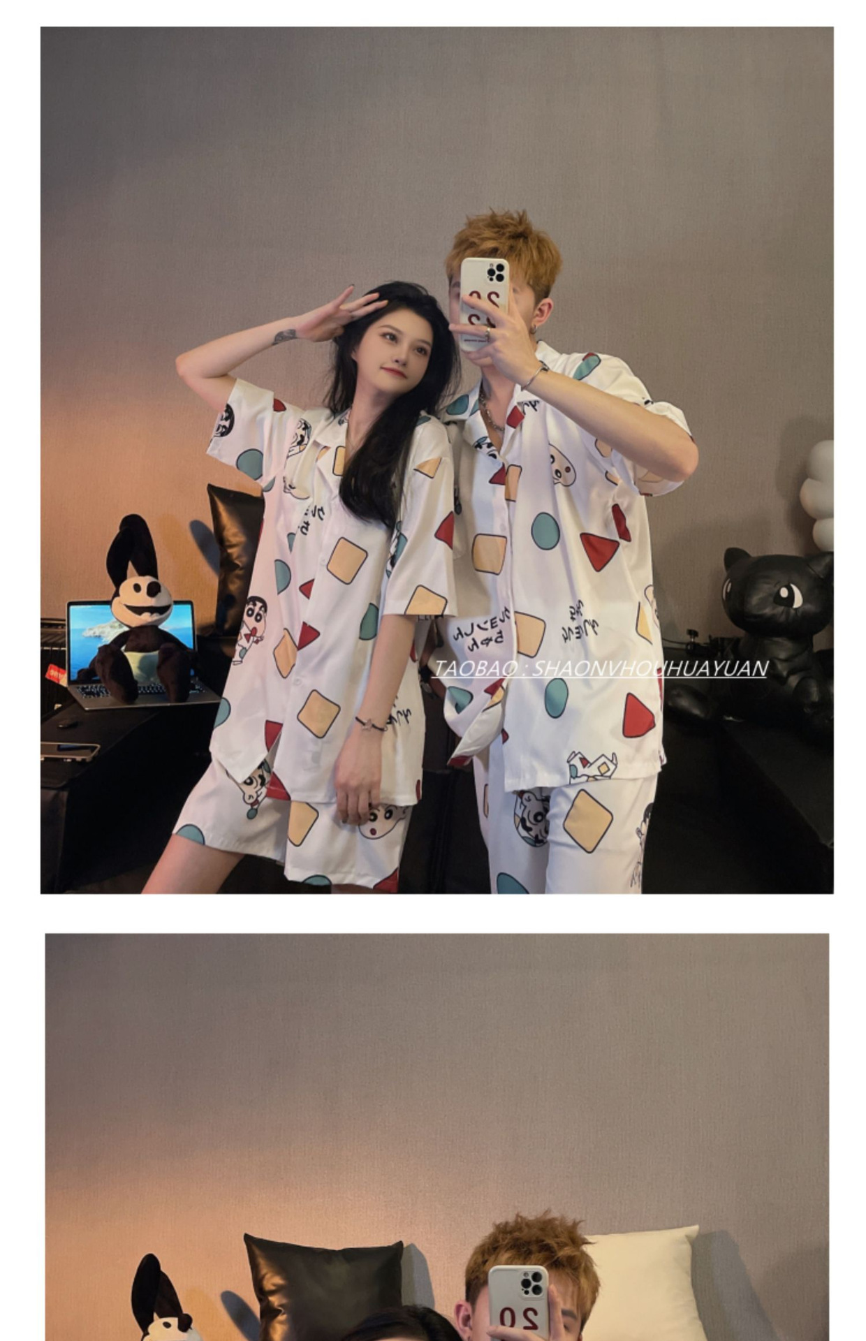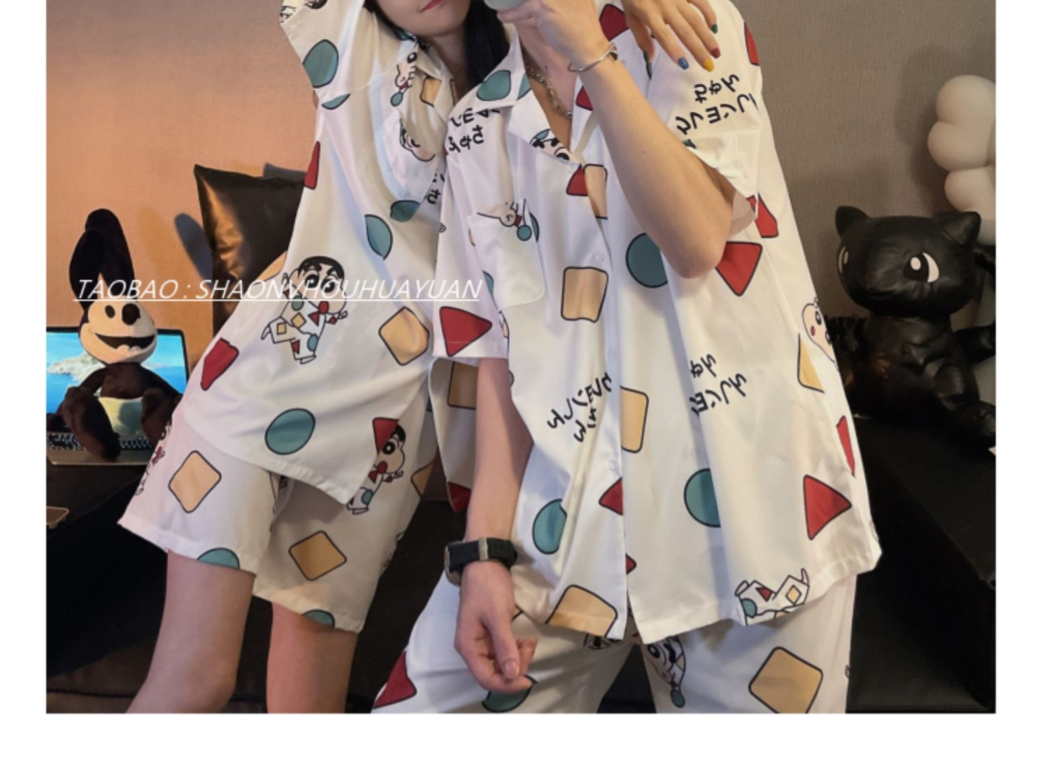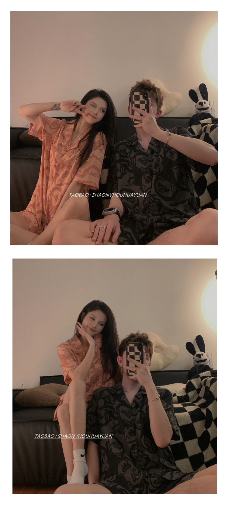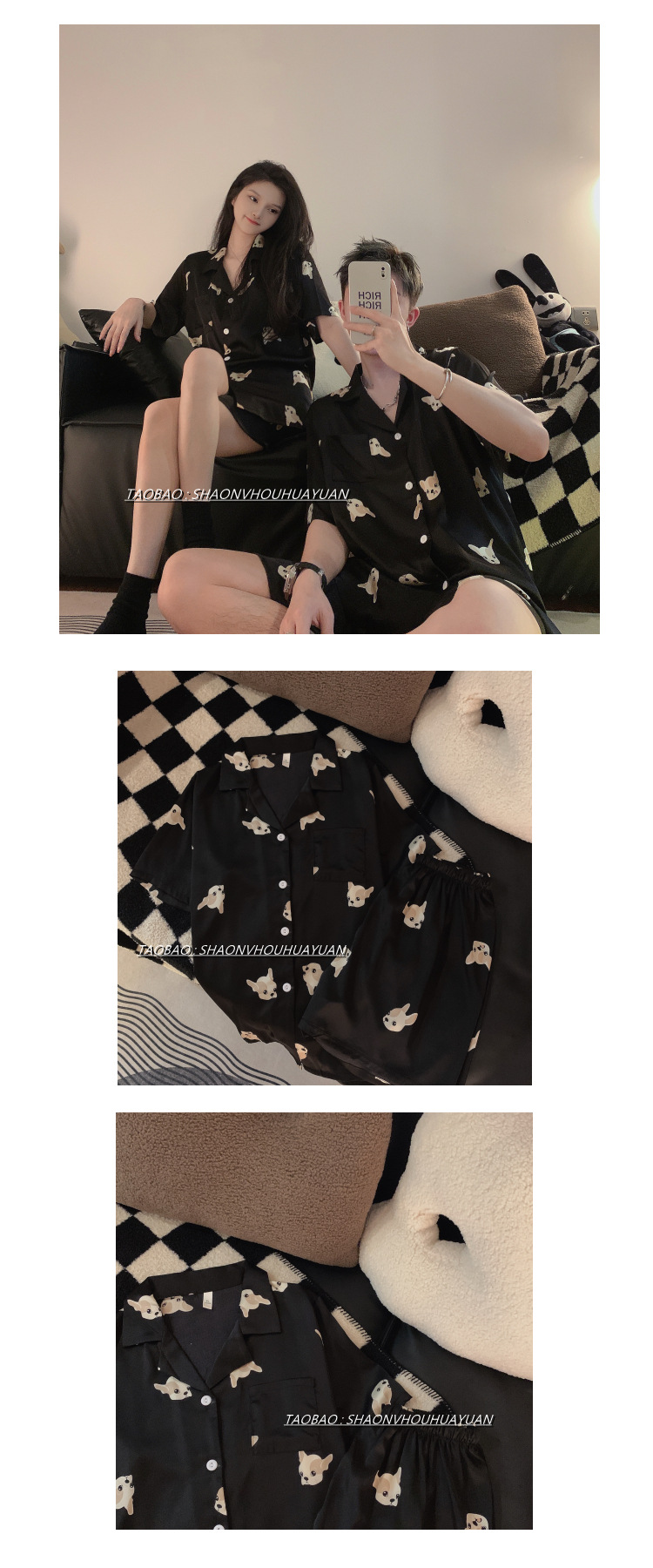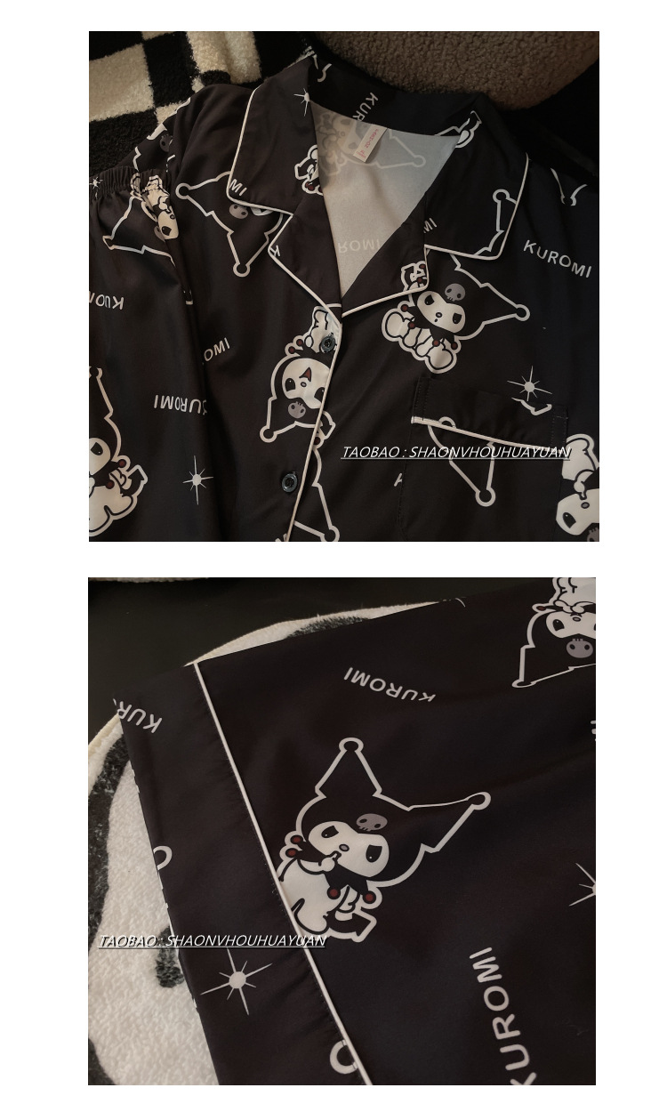 Pajamas de pareja de mangas cortas para mujeres de verano seda suave encantadora caricatura para hombres seda delgada alta sensación set de ropa para el hogar