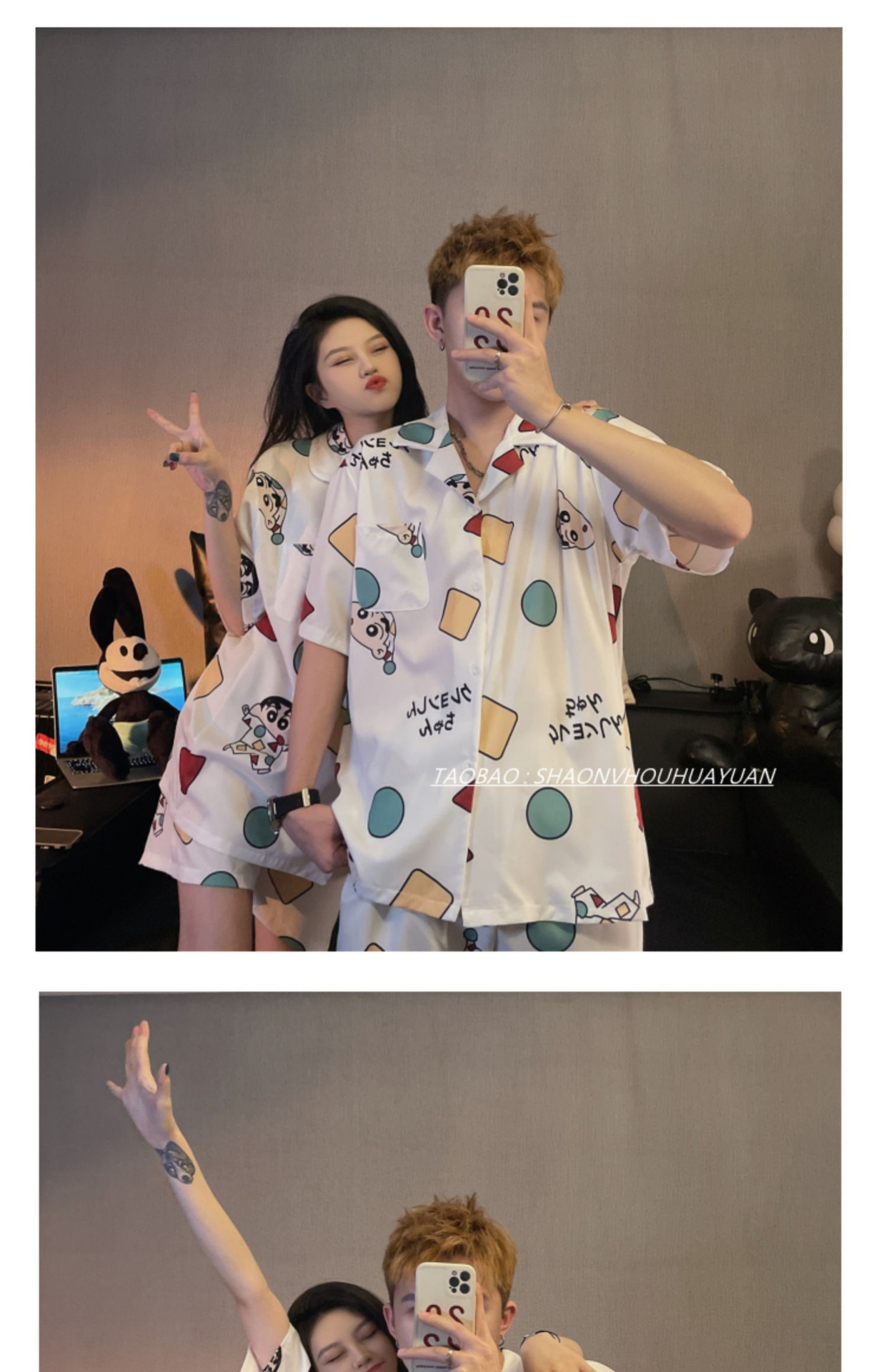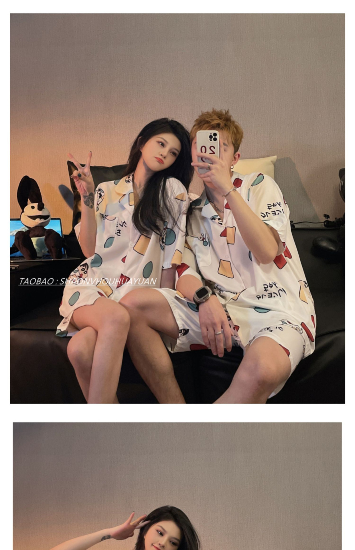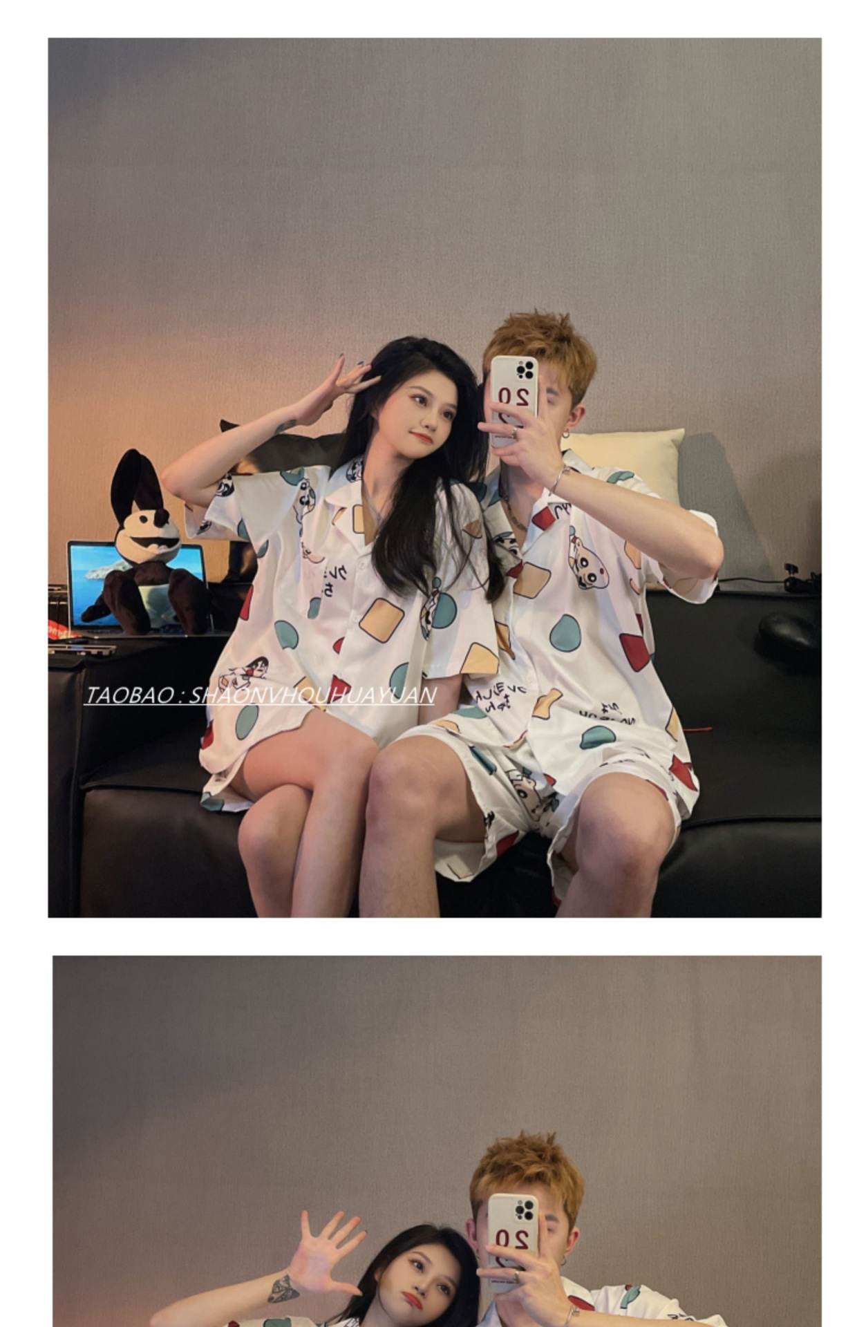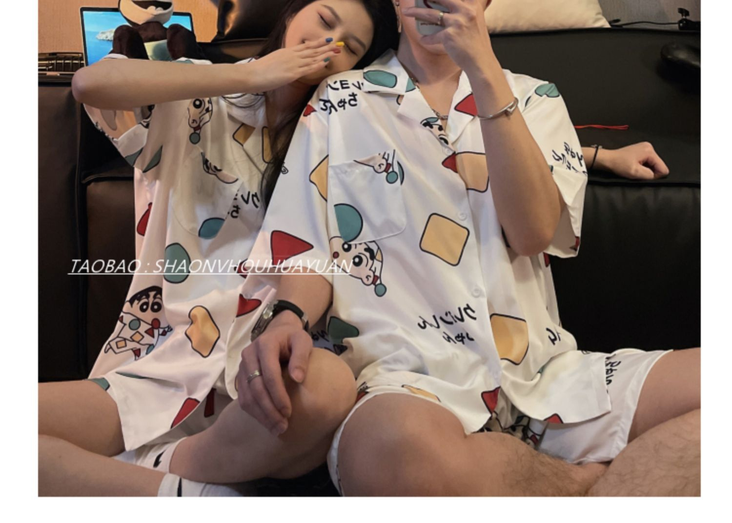 Pajamas de pareja de mangas cortas para mujeres de verano seda suave encantadora caricatura para hombres seda delgada alta sensación set de ropa para el hogar