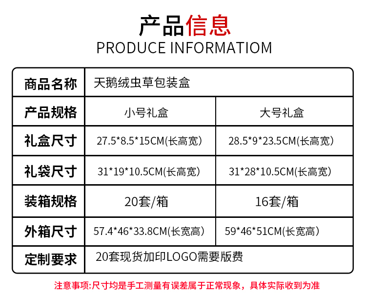 Caja de embalaje de Cordyceps 6 10 20 tubos Caja de regalo Caja de cartón Cordyceps Caja de regalo Embalaje vacío