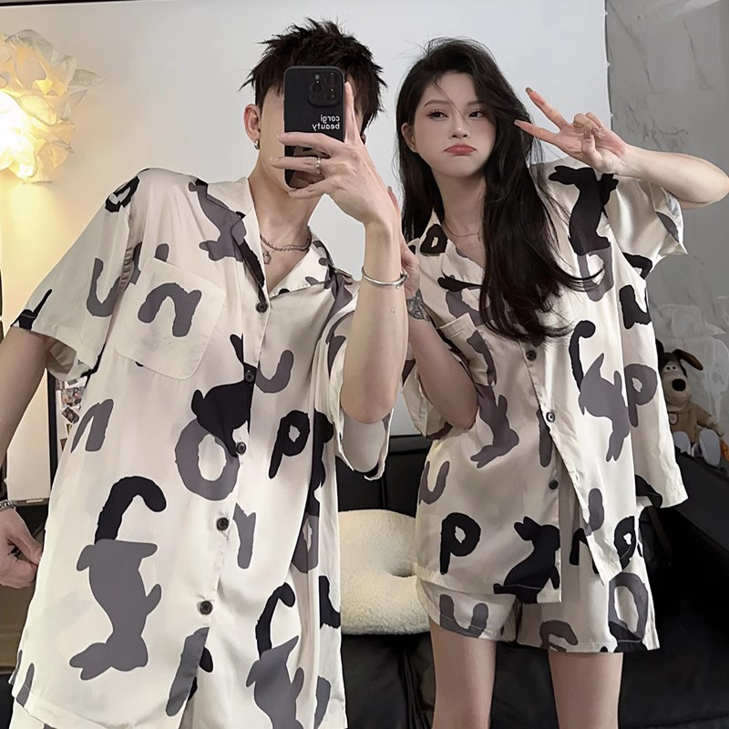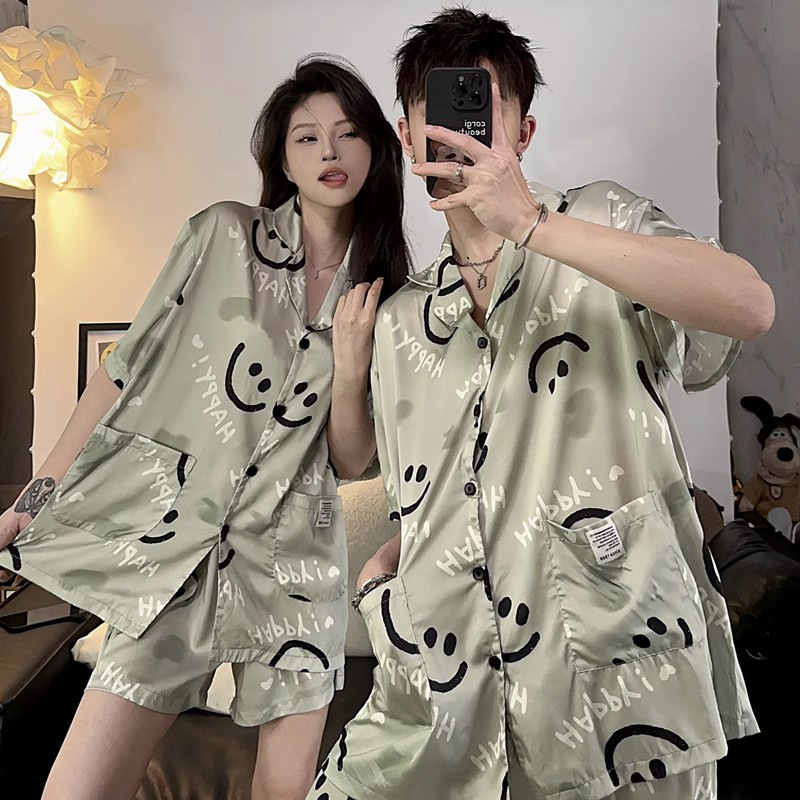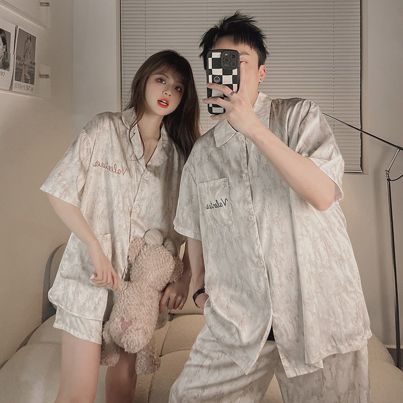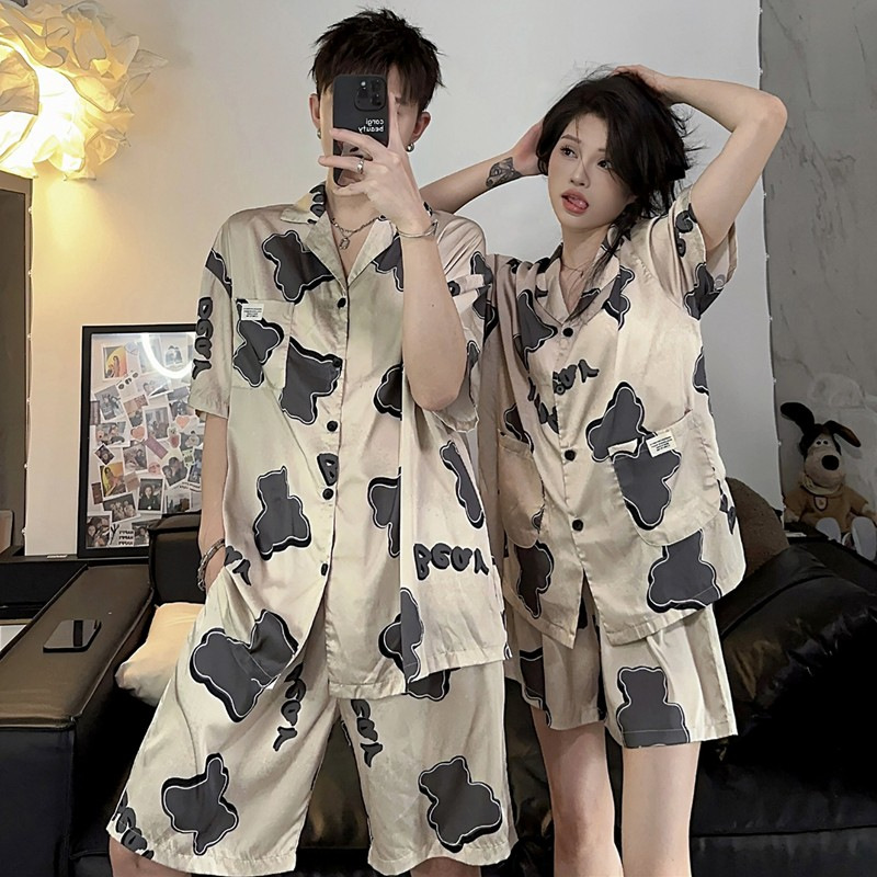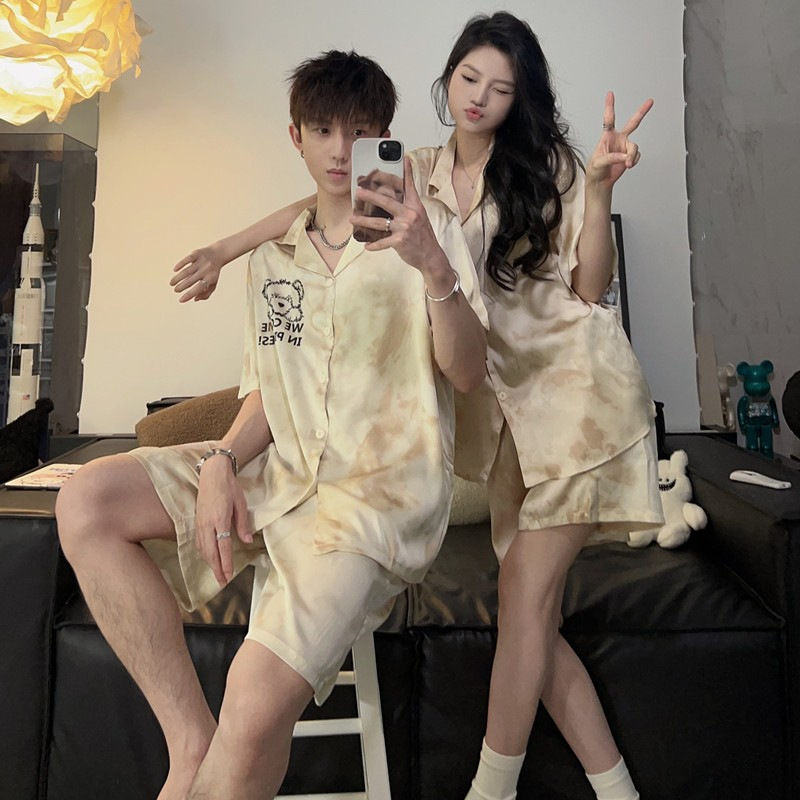 2025 nuevo pijama de pareja de verano de seda de hielo de mangas cortas para vestir con ropa de casa de hombre de seda delgada de verano