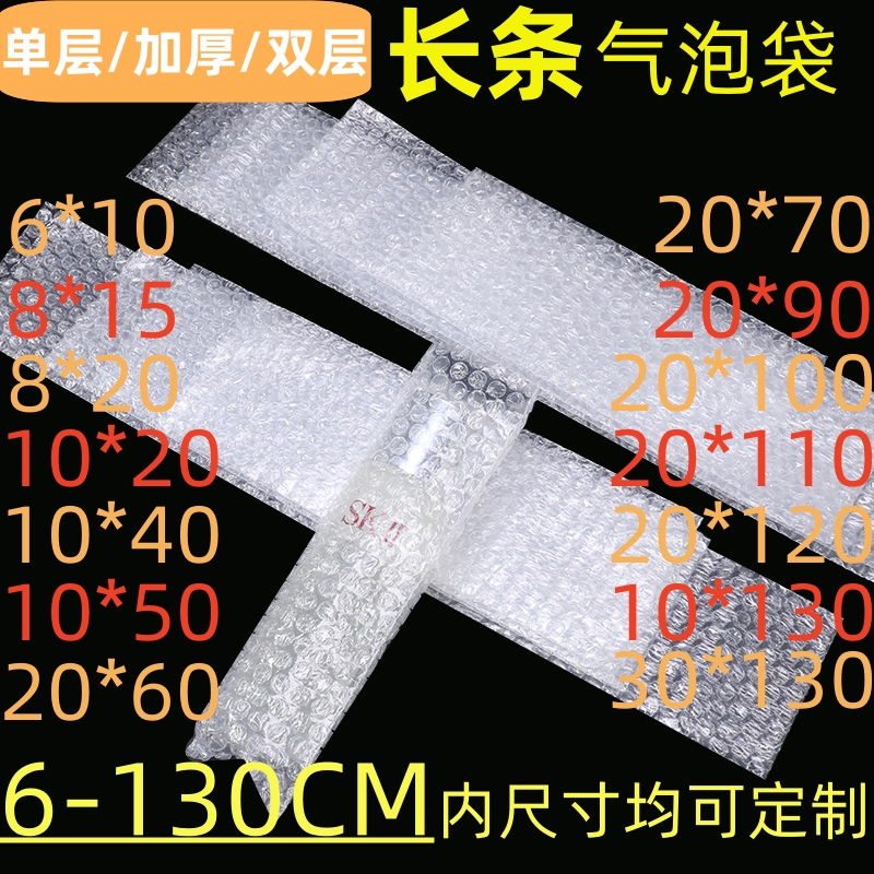 Bolsa de burbujas de tira larga grosada a prueba de choque tamaño pequeño personalizado bolsa de burbujas al por mayor expreso espuma de película de burbujas a prueba de choque