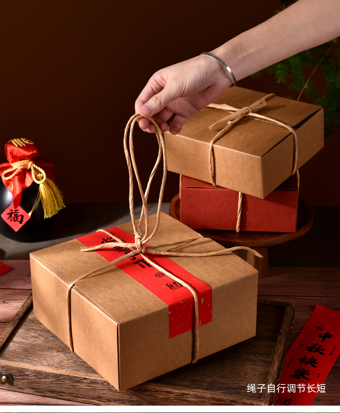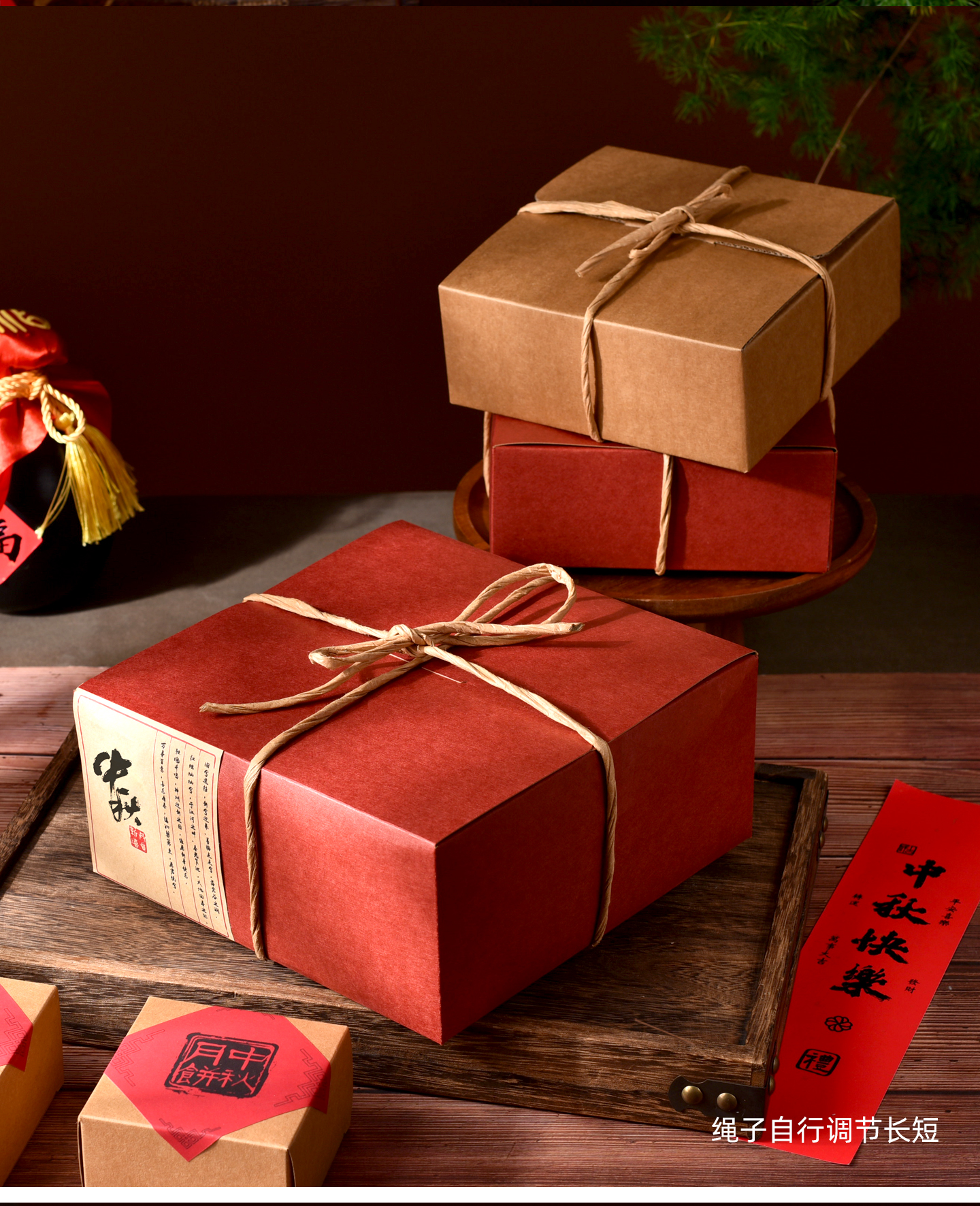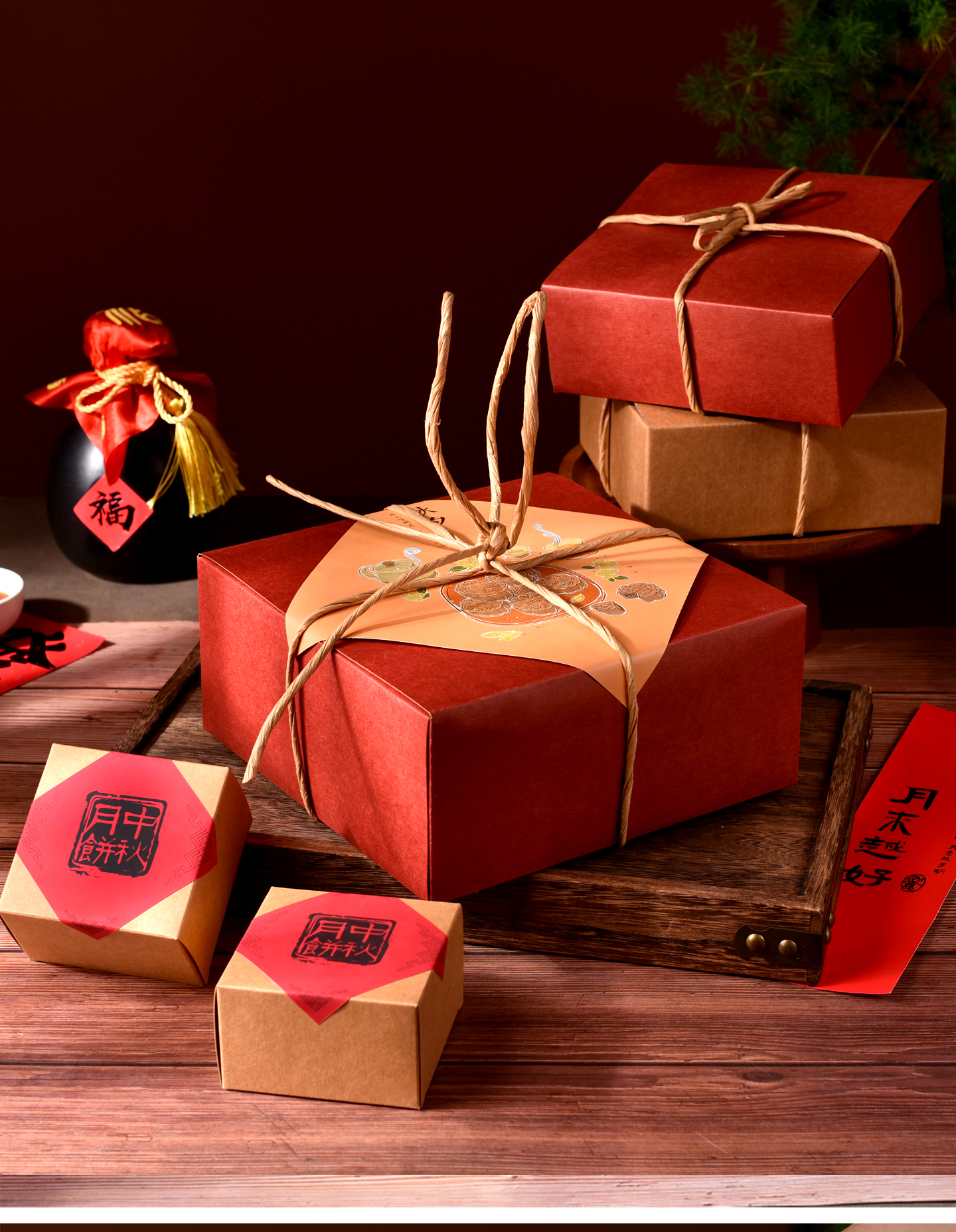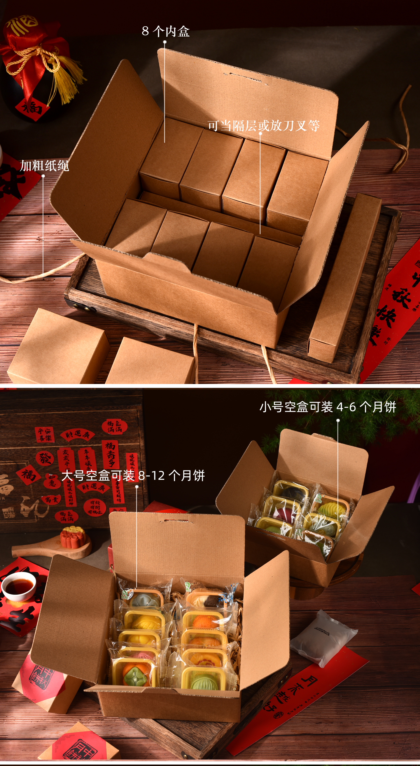 Caja de papel kraft tradicional china retro, caja de embalaje de pasteles de luna de mediados de otoño, pasteles a granel, 8 gránulos, caja de regalo vacía