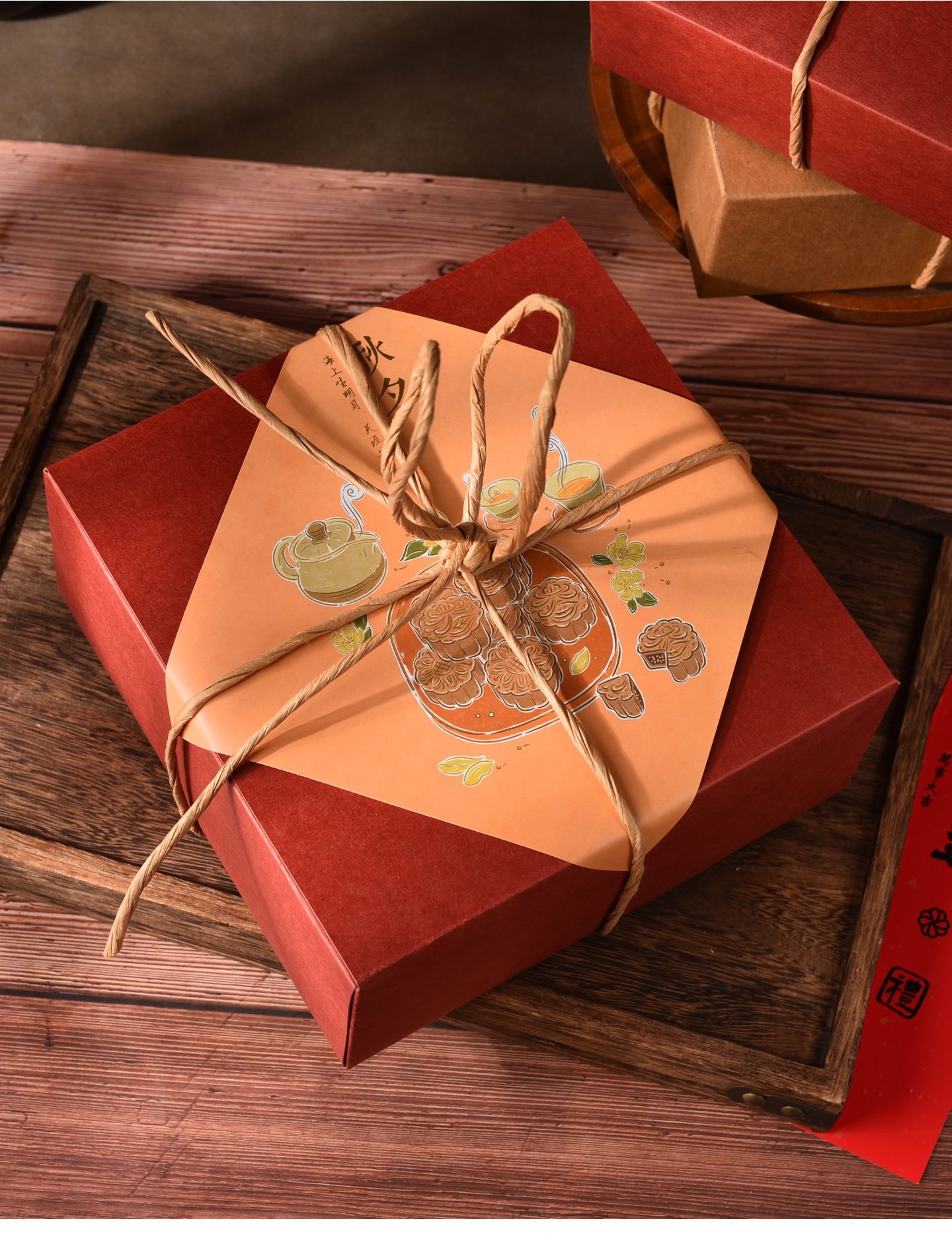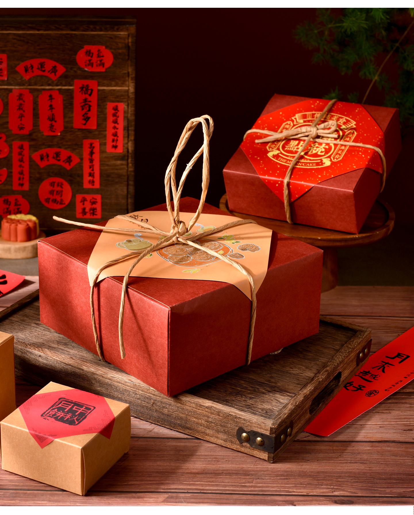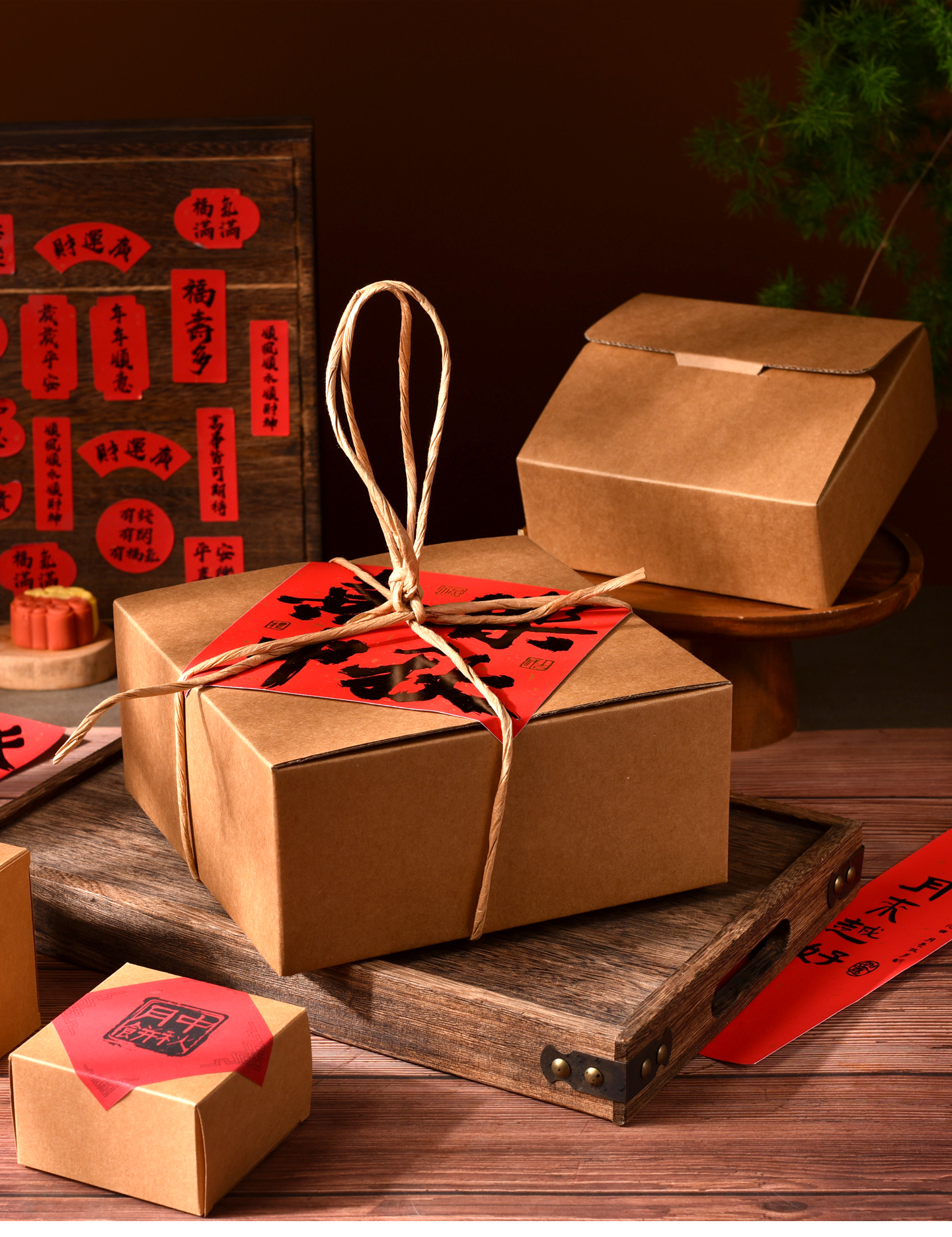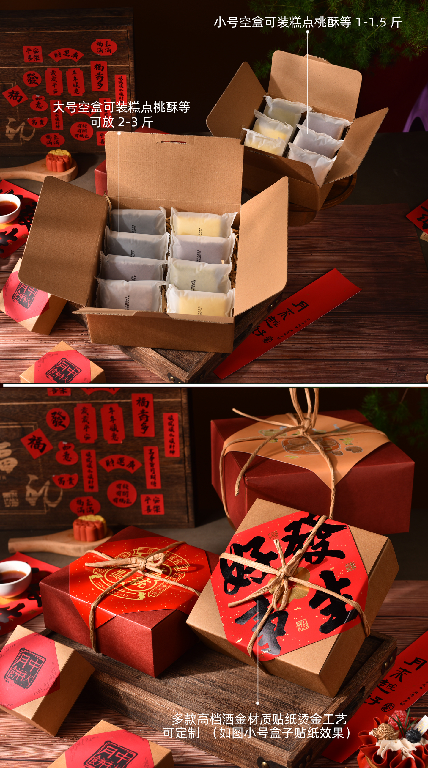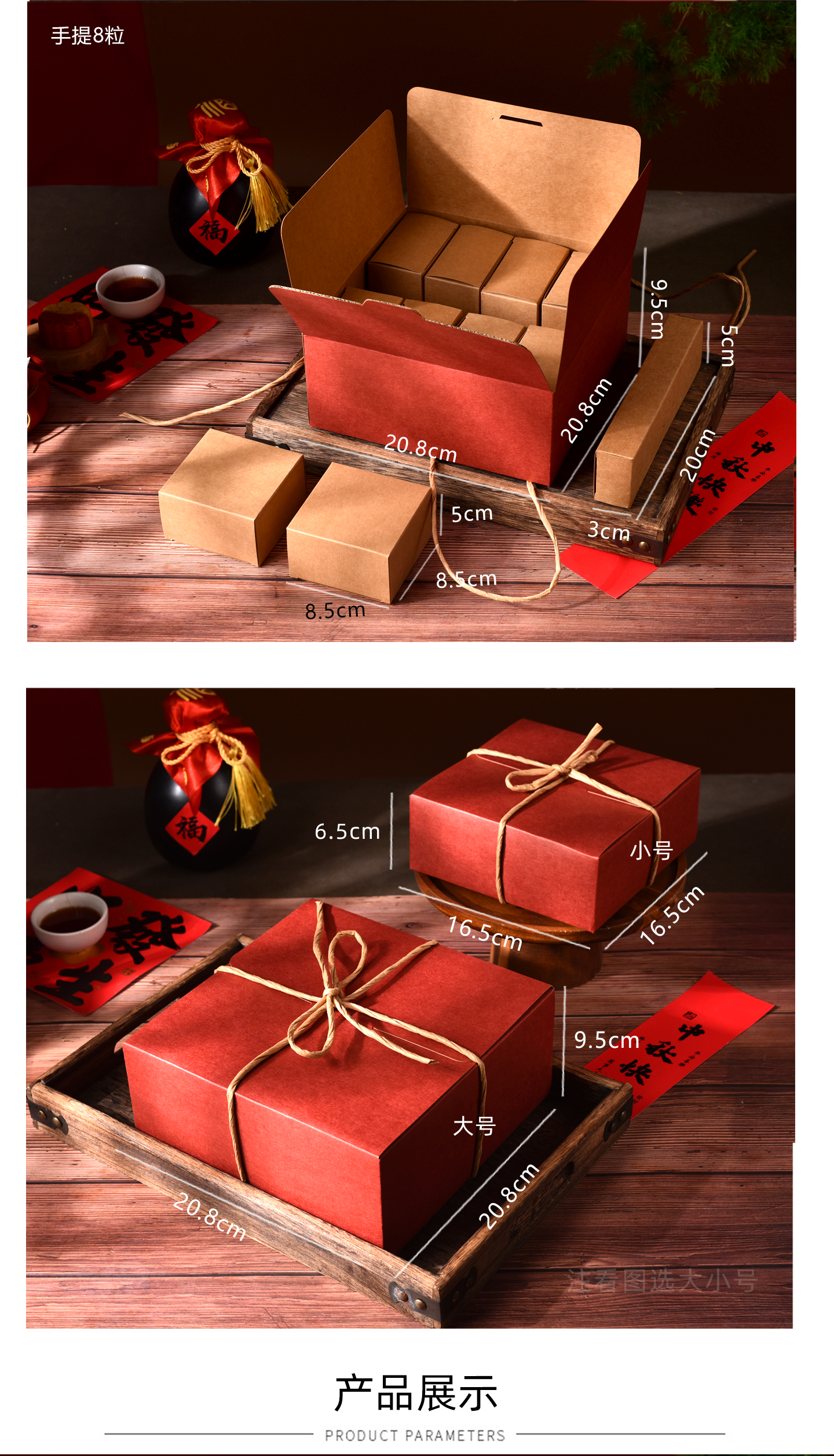 Caja de papel kraft tradicional china retro, caja de embalaje de pasteles de luna de mediados de otoño, pasteles a granel, 8 gránulos, caja de regalo vacía