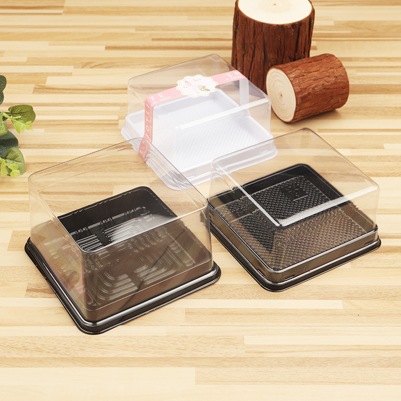 Caja de embalaje cuadrada horneado queso queso punto oeste mousse lasagna corte de pastel 4 pulgadas caja de embalaje transparente