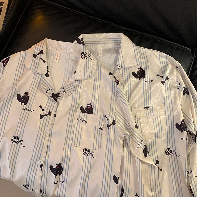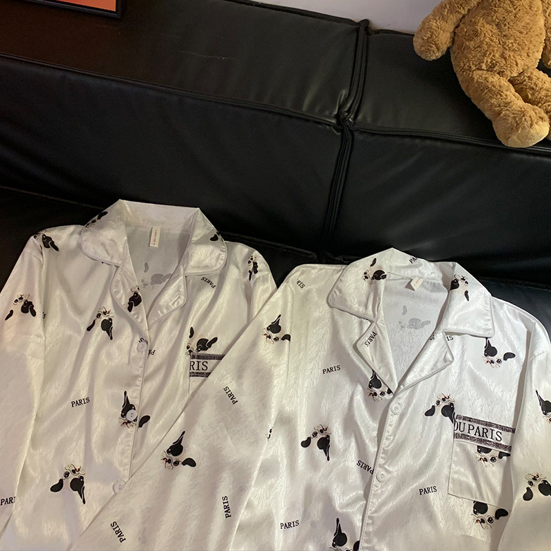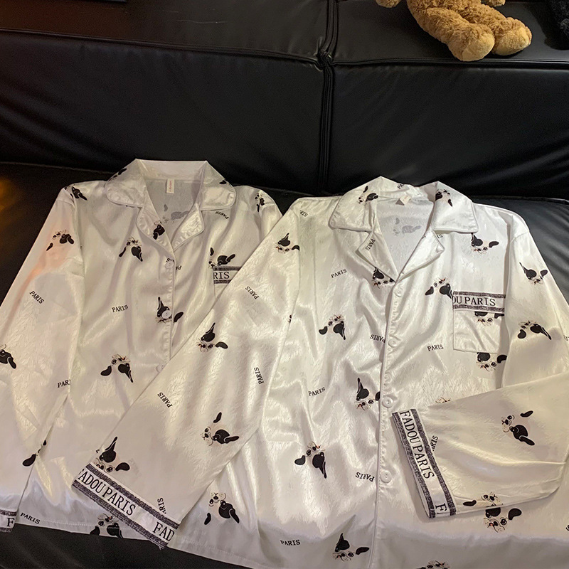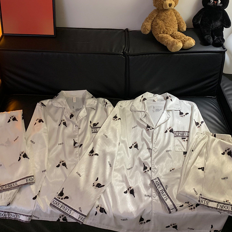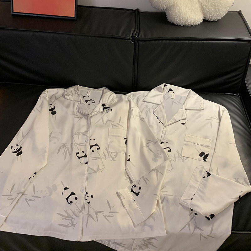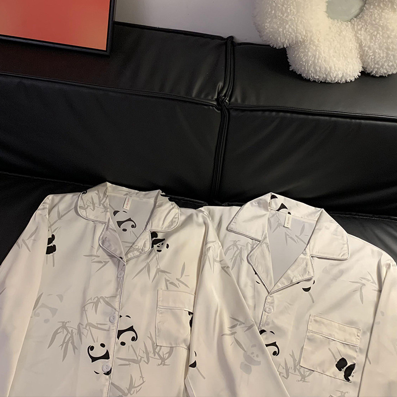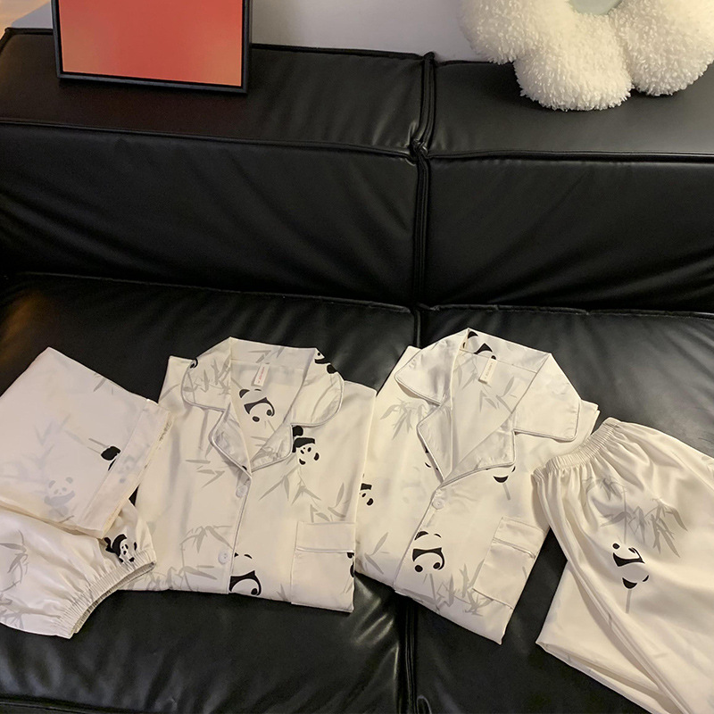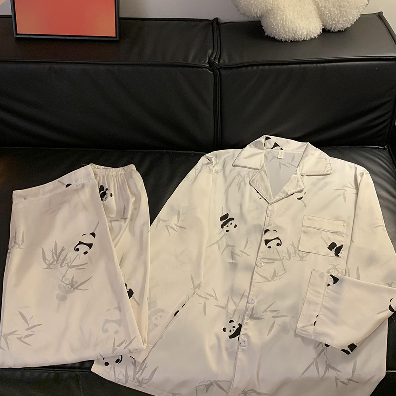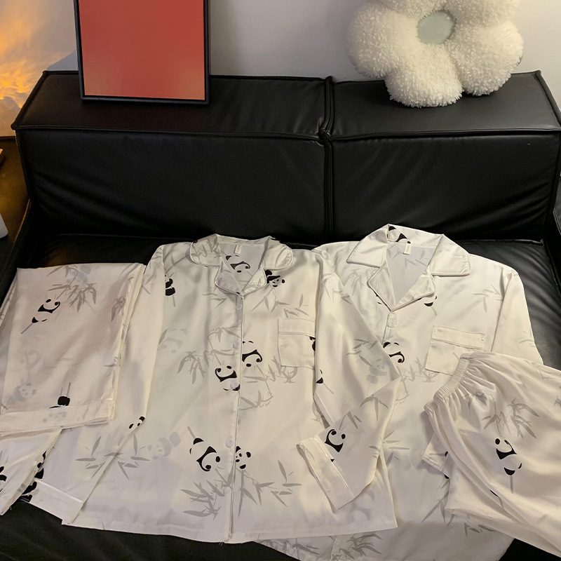 Panda japonés helado pareja pijama mujer primavera y otoño pantalones de mangas largas 2025 nueva ropa de casa de hombre de seda verano