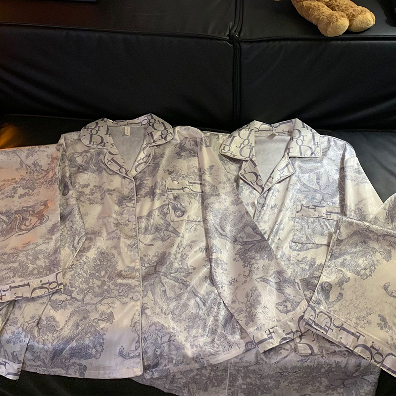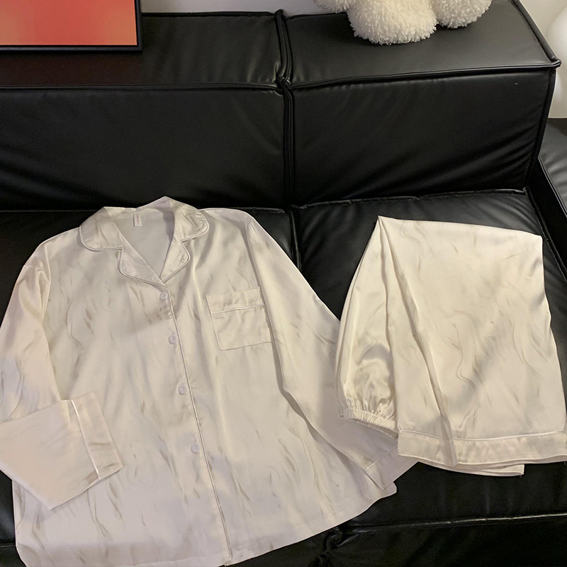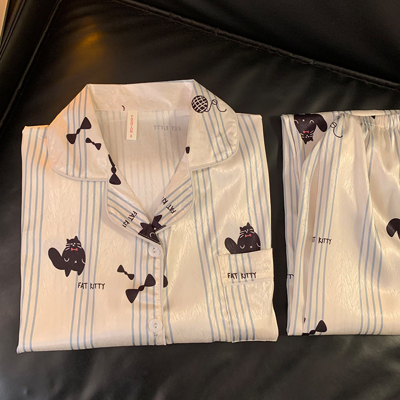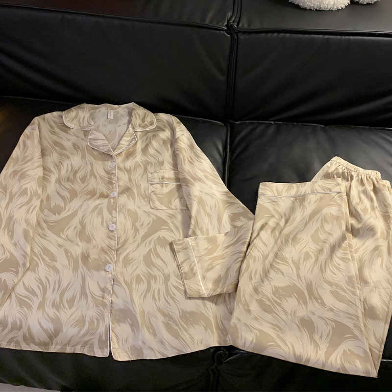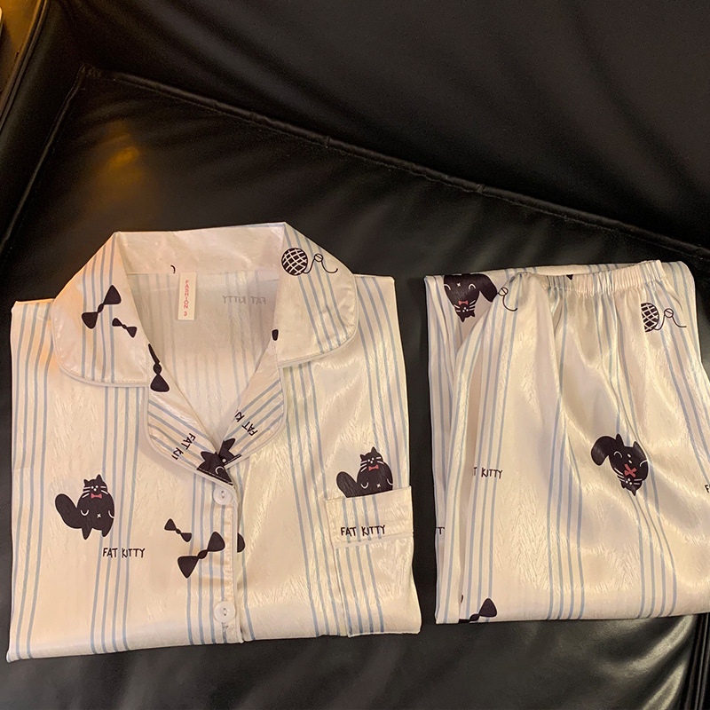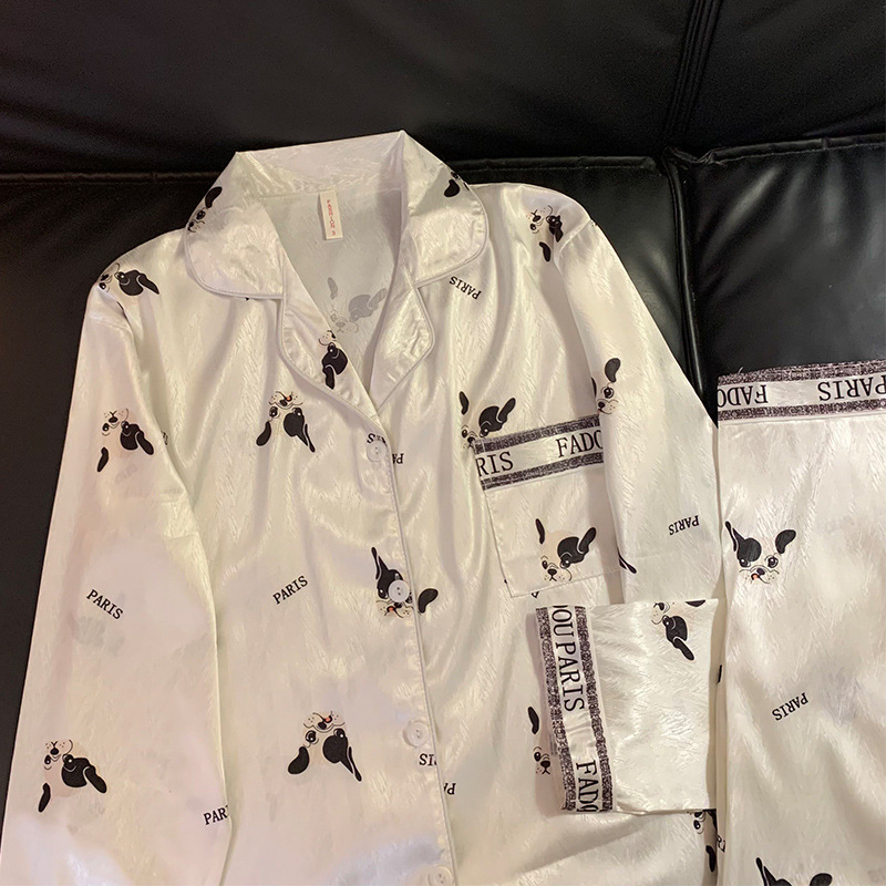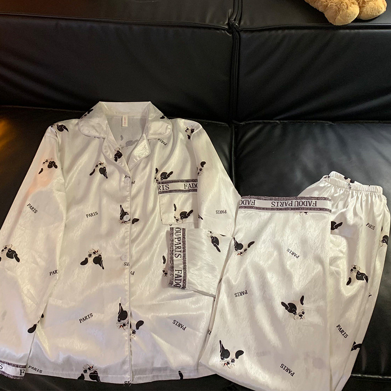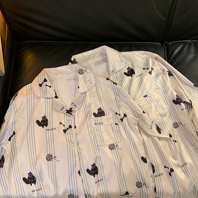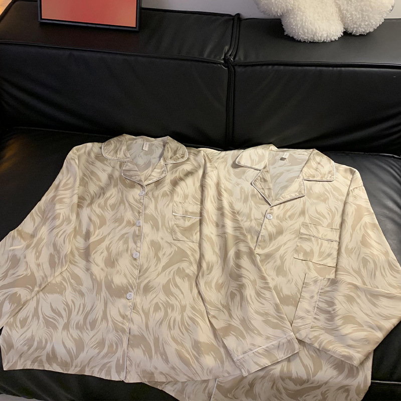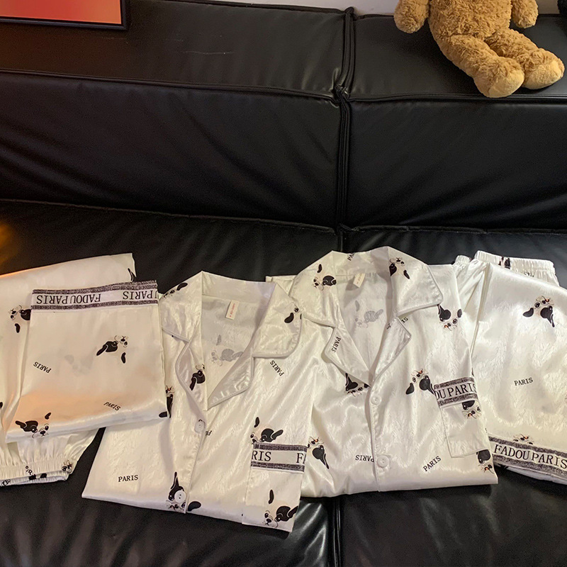 Panda japonés helado pareja pijama mujer primavera y otoño pantalones de mangas largas 2025 nueva ropa de casa de hombre de seda verano