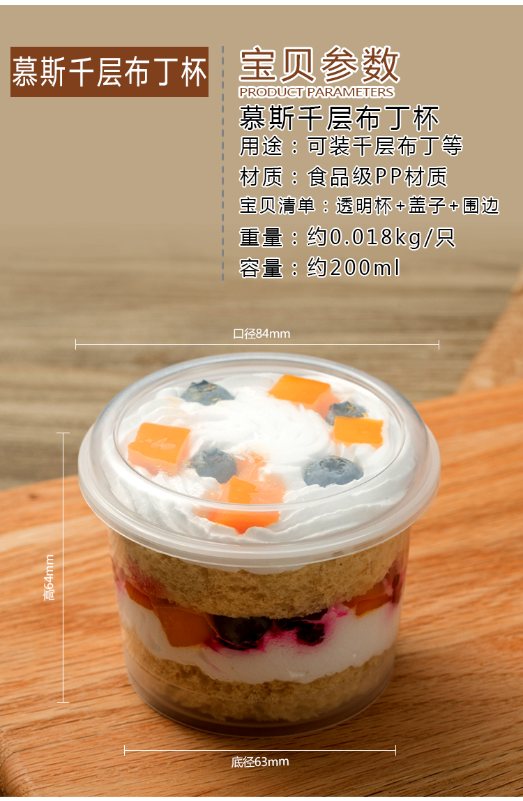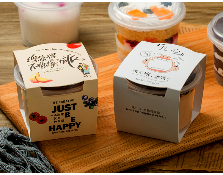 Caja de embalaje de pastel de West Point, taza de mousse cuadrada de leche de soja, taza de helado de pudín de frutas y yogur
