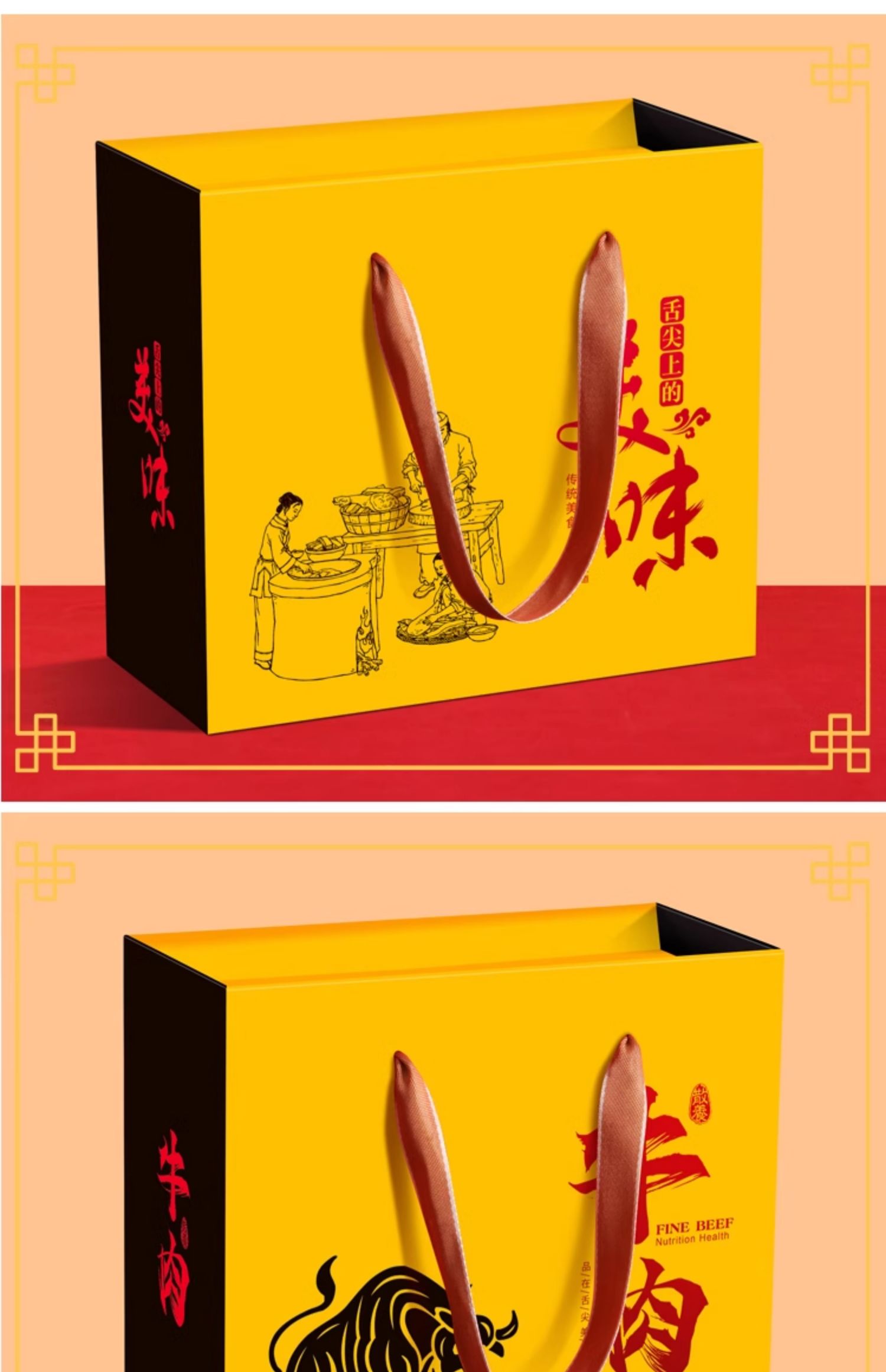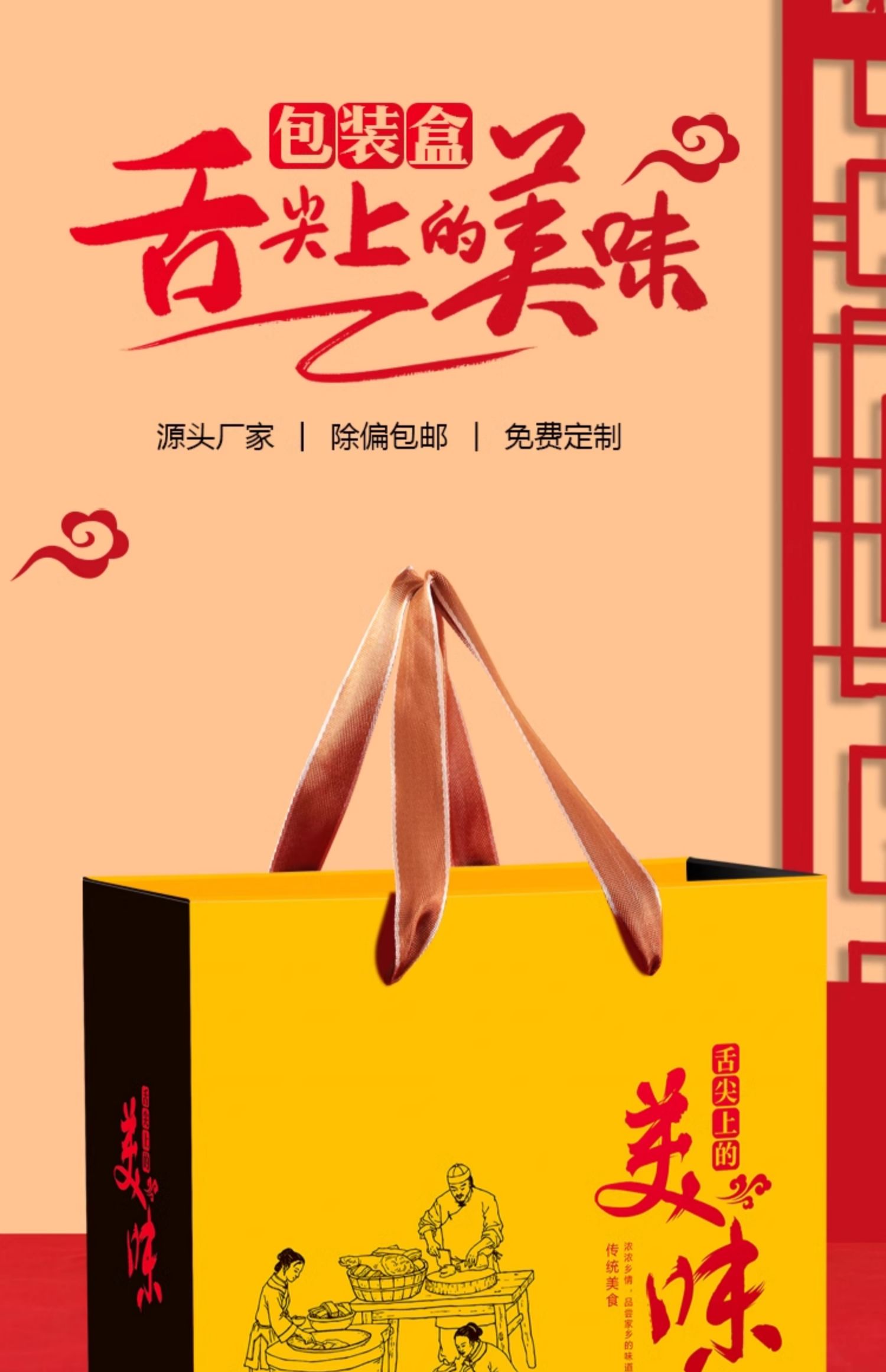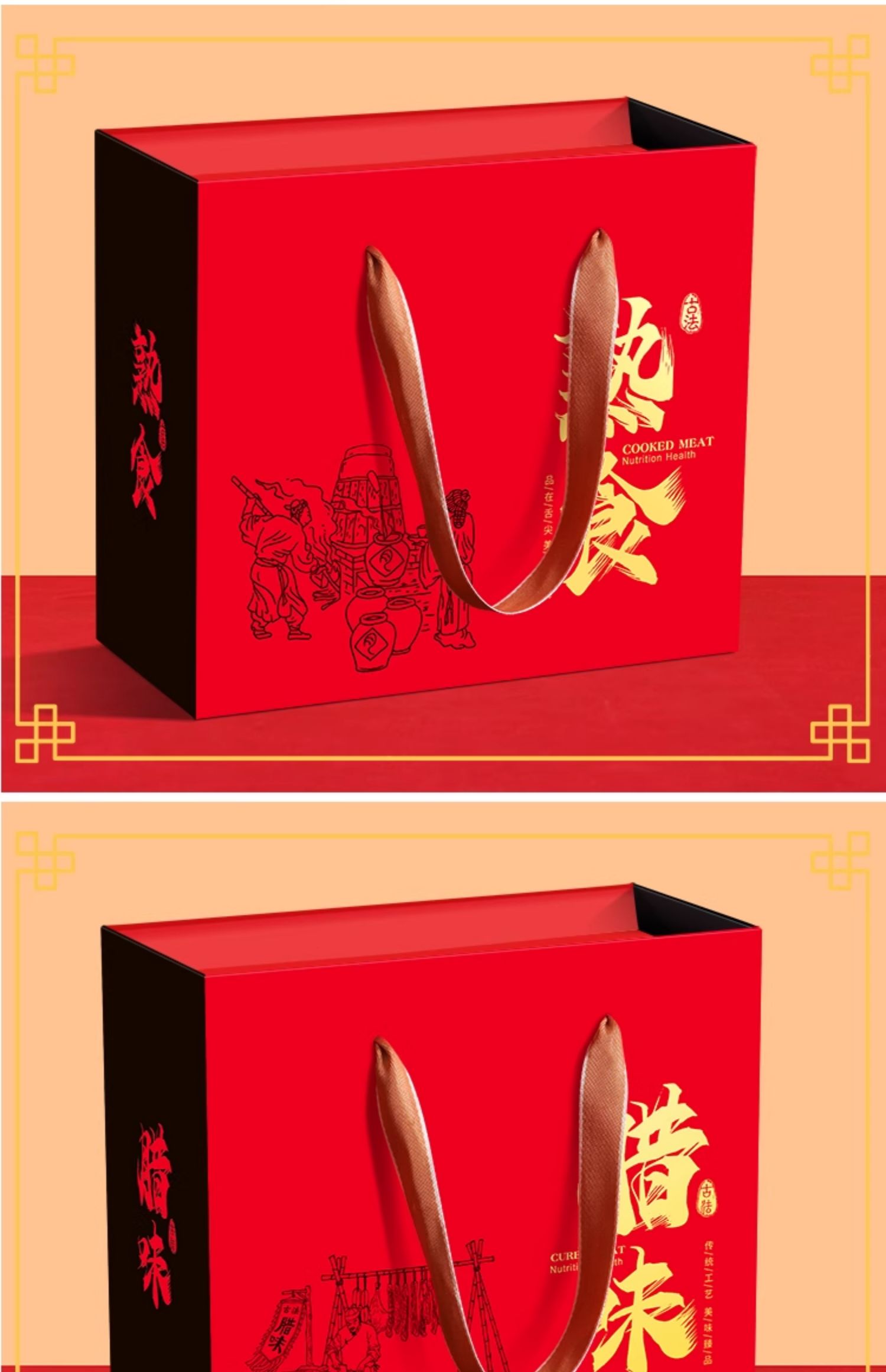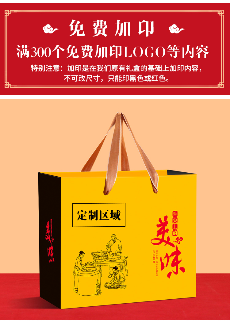 Caja de embalaje de alimentos cocinados, salchicha de carne de burro, caja de regalo vacía, caja de regalo general para el Festival de Primavera