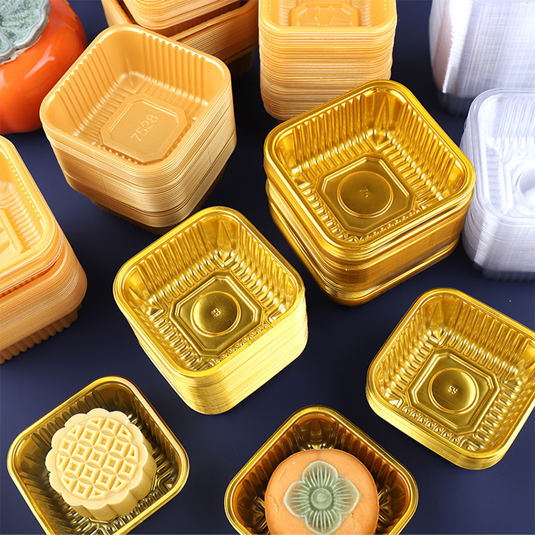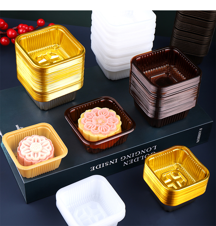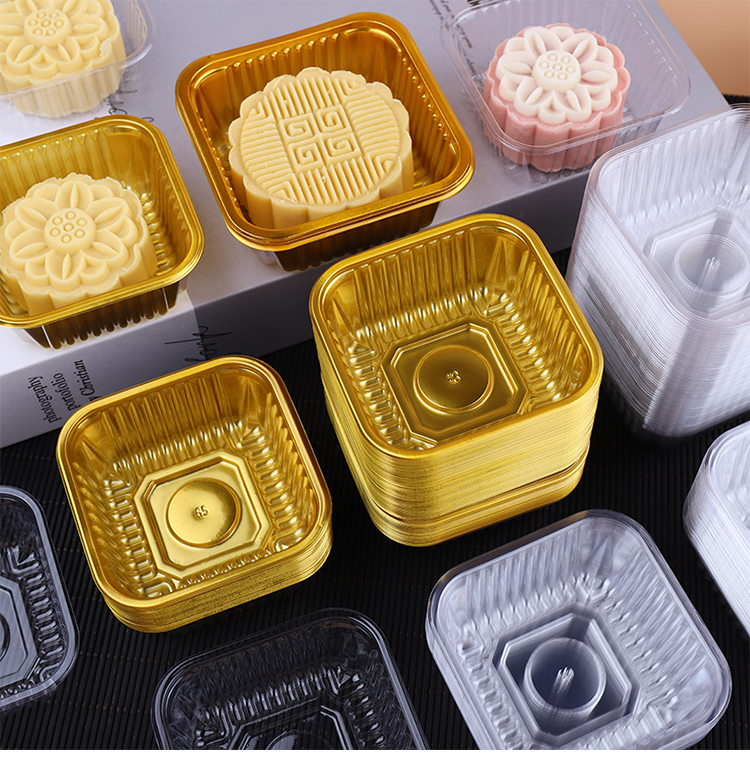 Fijación de pastel de luna de mediado otoño transparente 50g 75g 100g de huevo de plástico base de oro de plástico interno caja de embalaje de pastel de luna